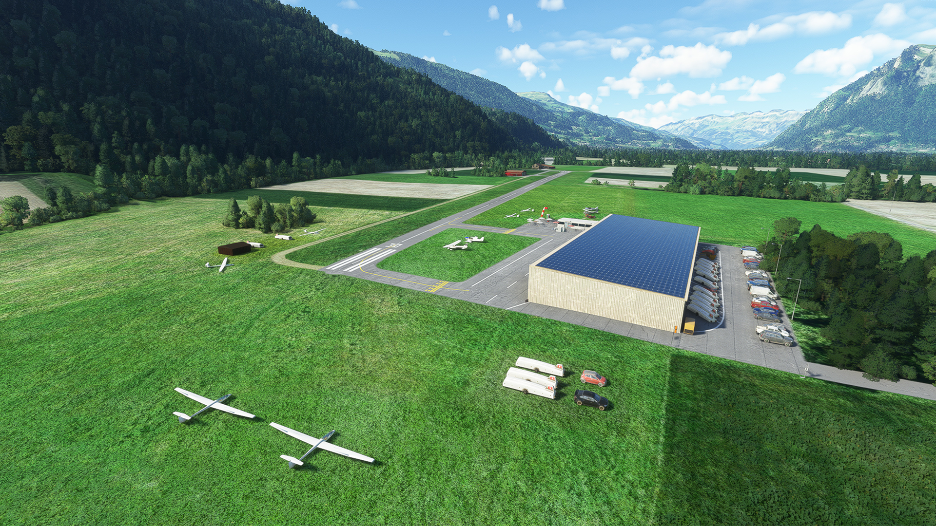 Bad Ragaz Airfield is located right in the middle of the Alps and in the Canton of St. Gallen. This quaint airfield is close to the Freudenberg Castle Ruins and has perfect landscapes. You will enjoy AG Sim’s surrounding models and Microsoft Flight Simulator's brilliant graphics. Their team have worked hard to provide you with the best flying experience and have created all models with PBR texturing technology.