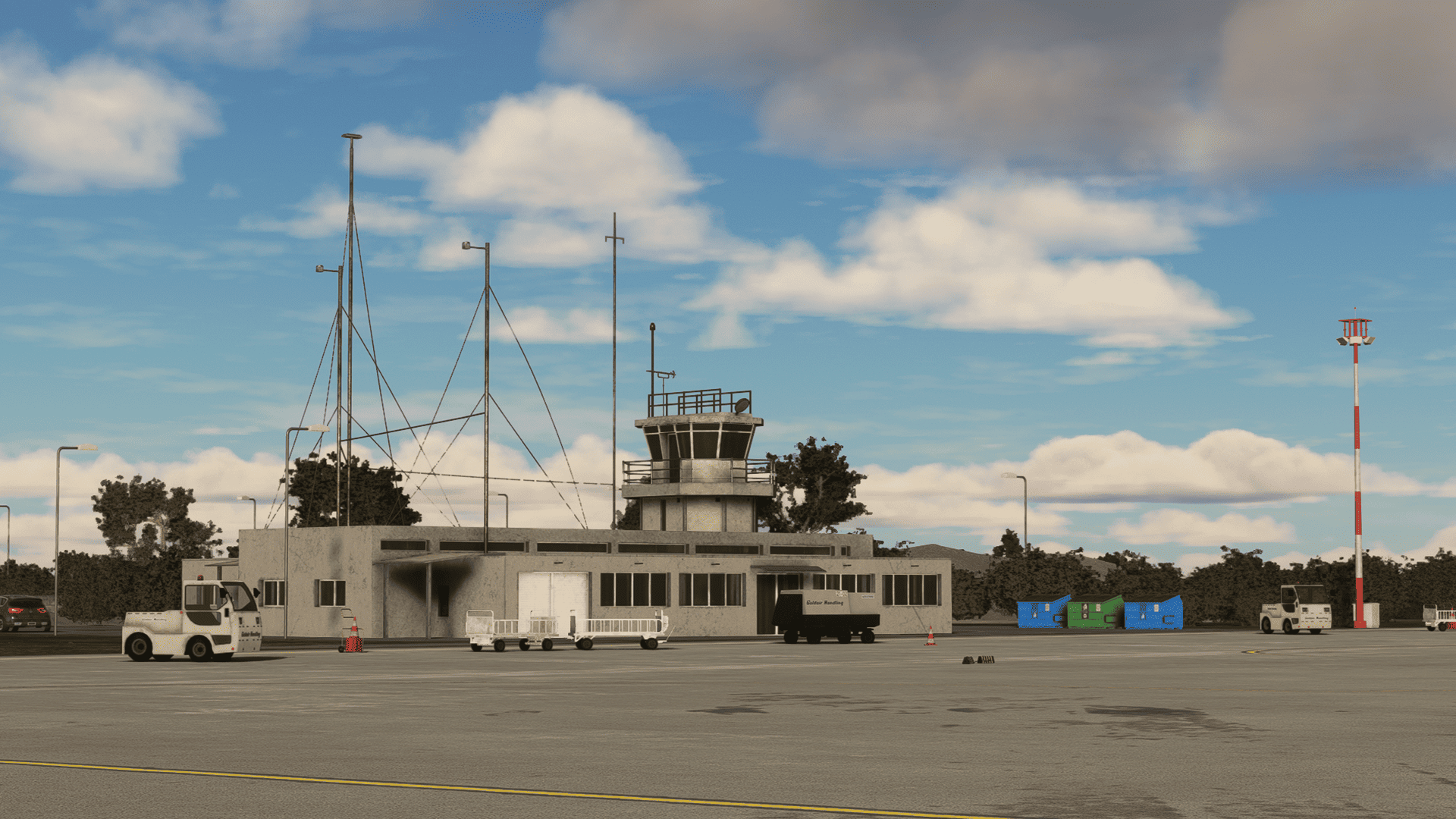 - Various buildings outside of the airport area (school, fuel station, etc.)