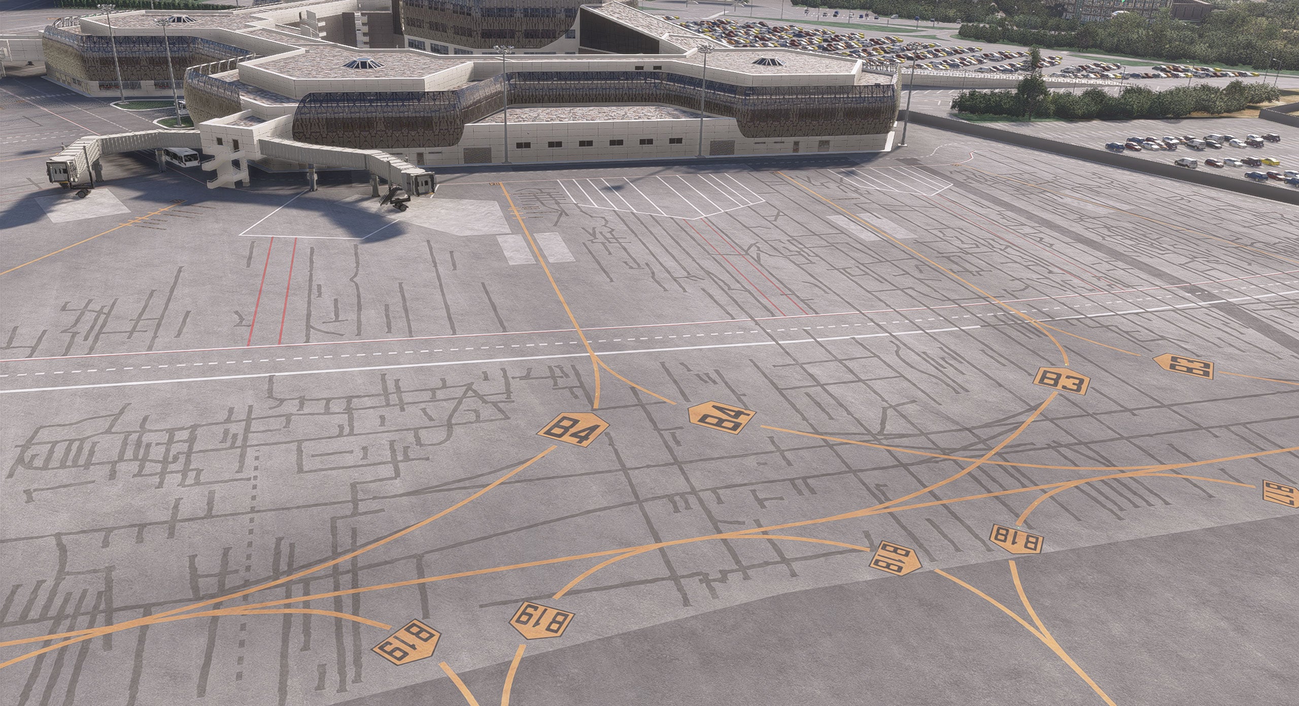 - High-resolution ground textures and realistic runway/taxiway markings, accurately replicating the airport layout