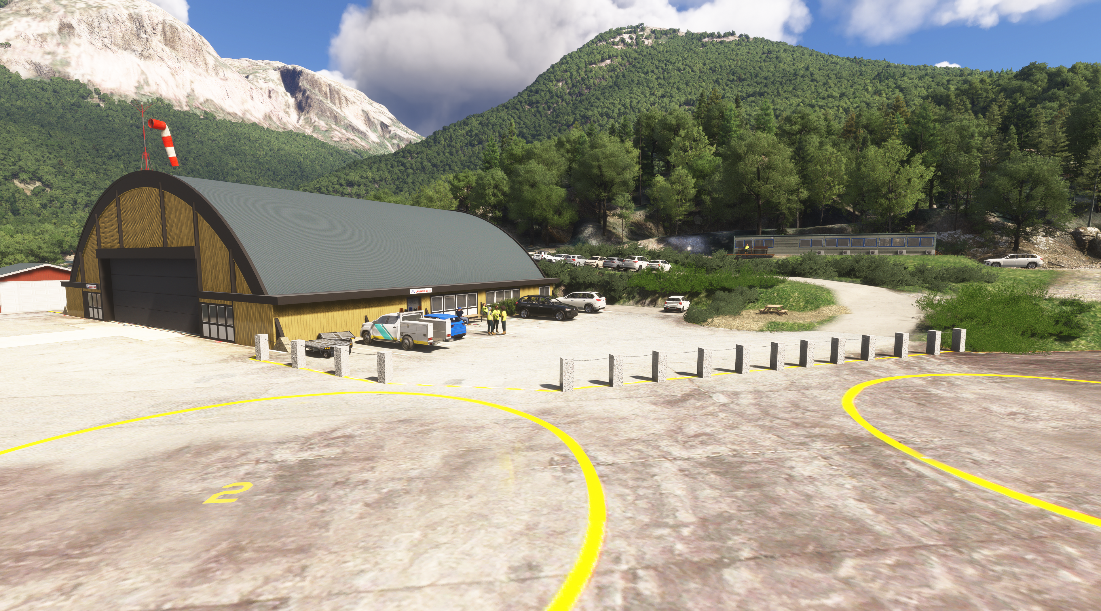 This scenery is based around Vetlemoen Heliport, Airlift AS' base in Kinsarvik, and