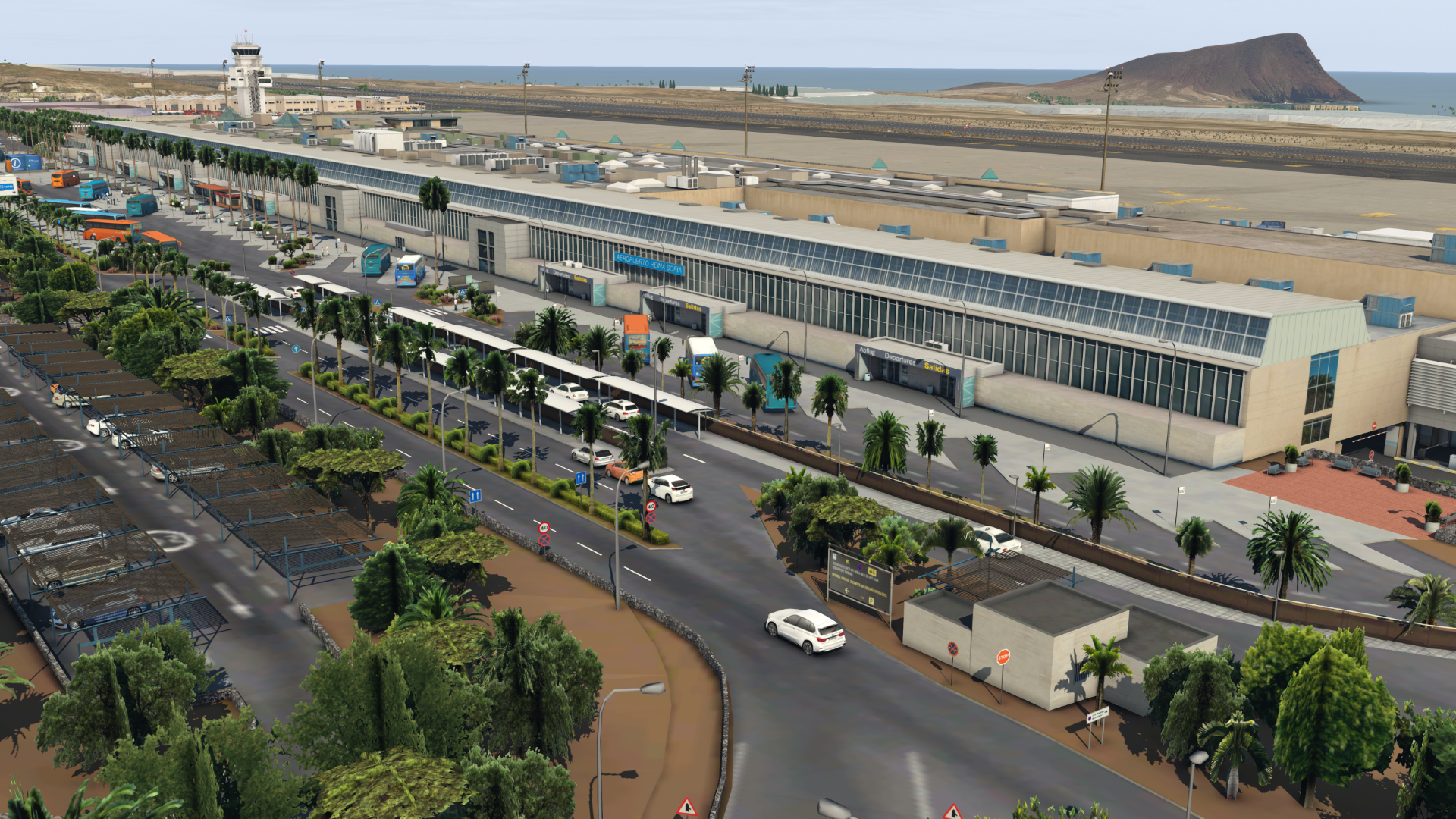 Tenerife South–Reina Sofia Airport (GCTS), is the larger of the two international airports located on the island of Tenerife. This detailed scenery recreated to the smallest details will allow you to immerse yourself in the atmosphere of Tenerife-South Airport. Welcome to the island of eternal spring!