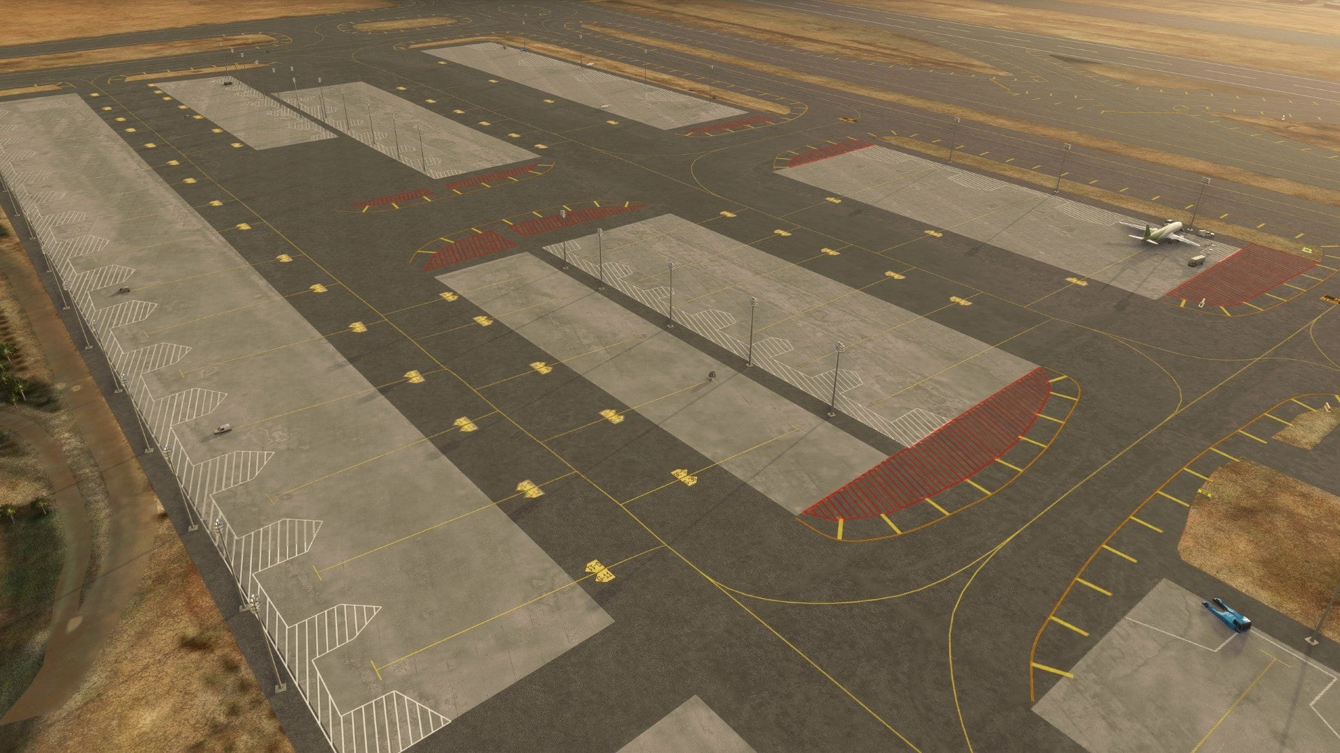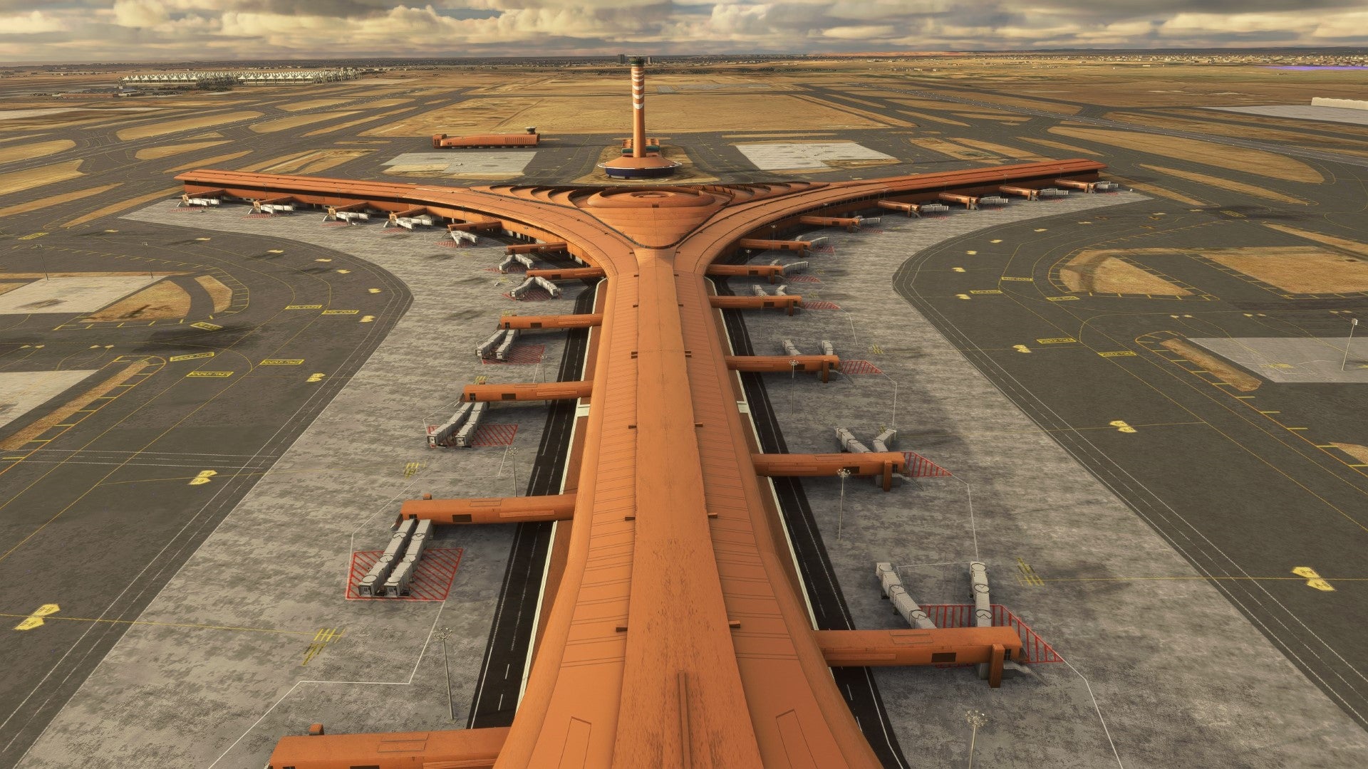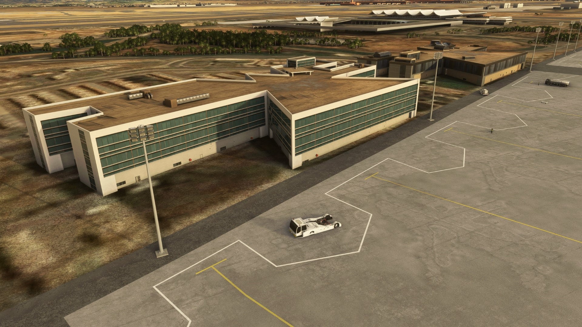 - Realistic terminals, cargo, and airport buildings using MSFS PBR materials