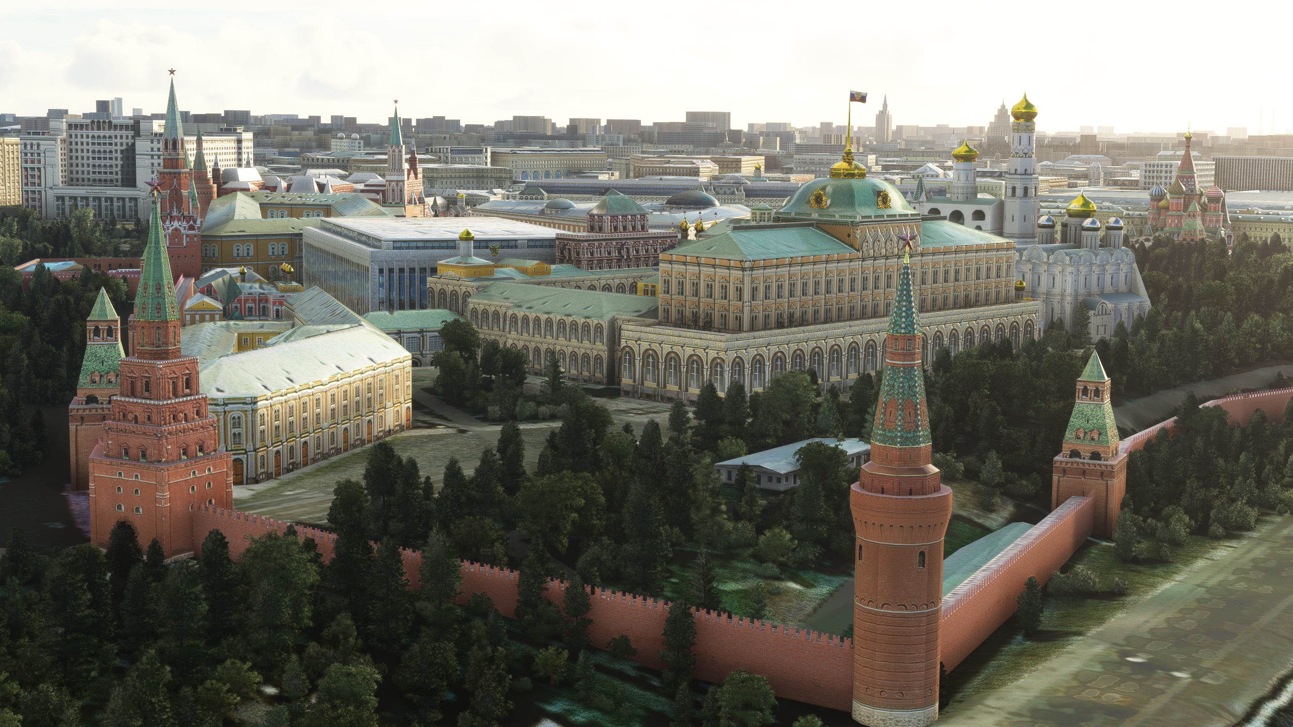 Moscow Landmarks MSFS is a package of Moscow, Russia landmarks, and points of interest. It includes roughly a thousand of custom-made buildings and numerous interesting areas of the city to explore. The whole central district around Kremlin has been custom-made as well as the amazing business district with towering highrises. You will find plenty of orthodox churches with beautiful golden domes, hotels, train stations, monuments, bridges, power plants, stadiums, towers (including Ostankino Tower, one of the tallest structures in the world) - all in full PBR and with epic night textures. Additionally, an enhancement pack for 7 airports around Moscow is provided as well as ~30 heliports.