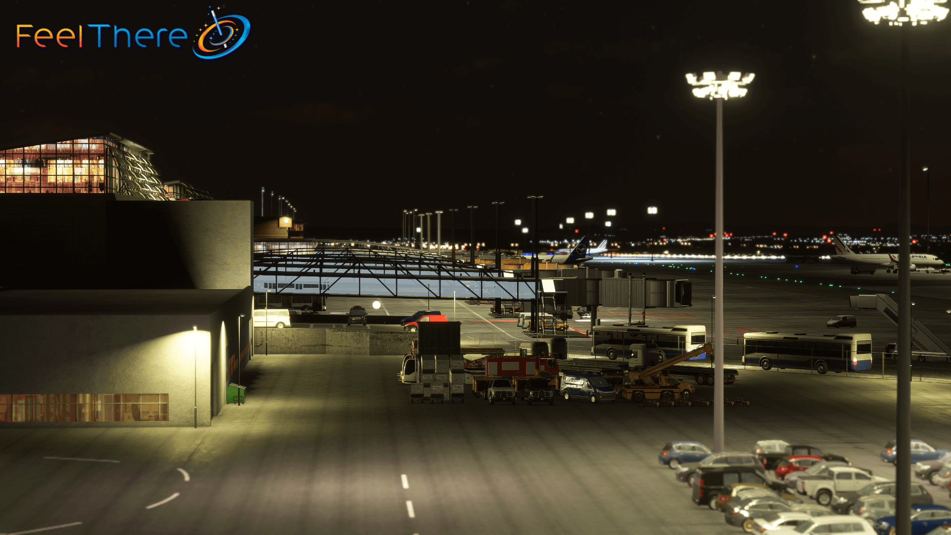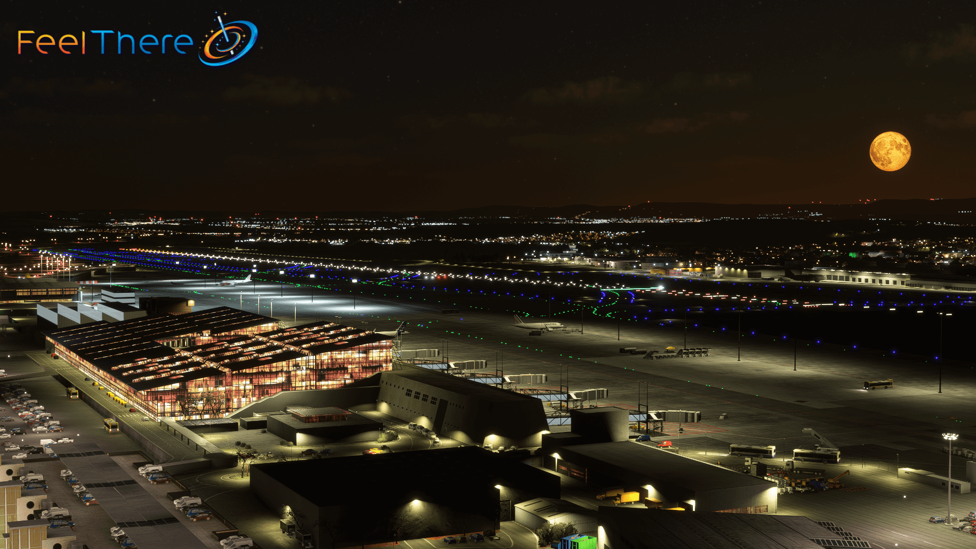 - Custom night lighting on the airport terminal
