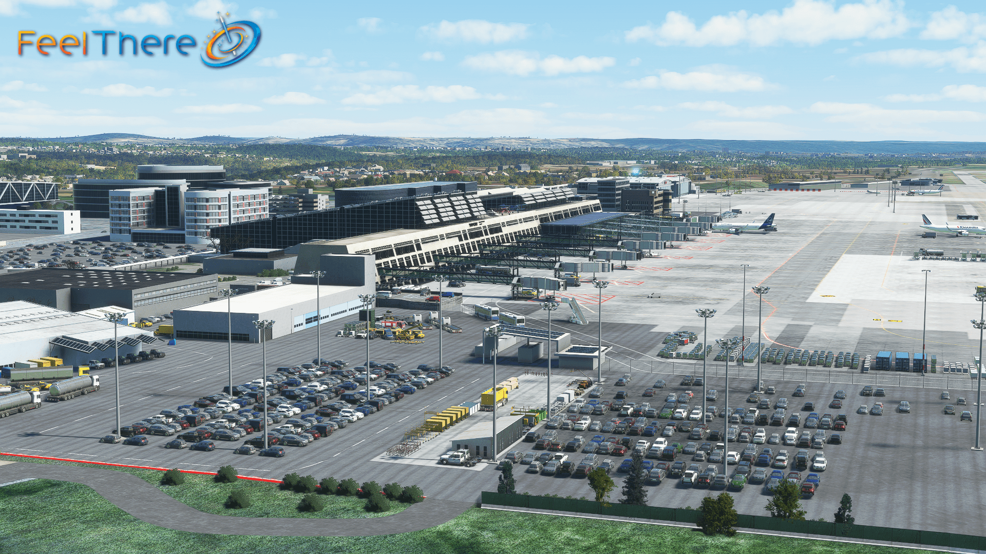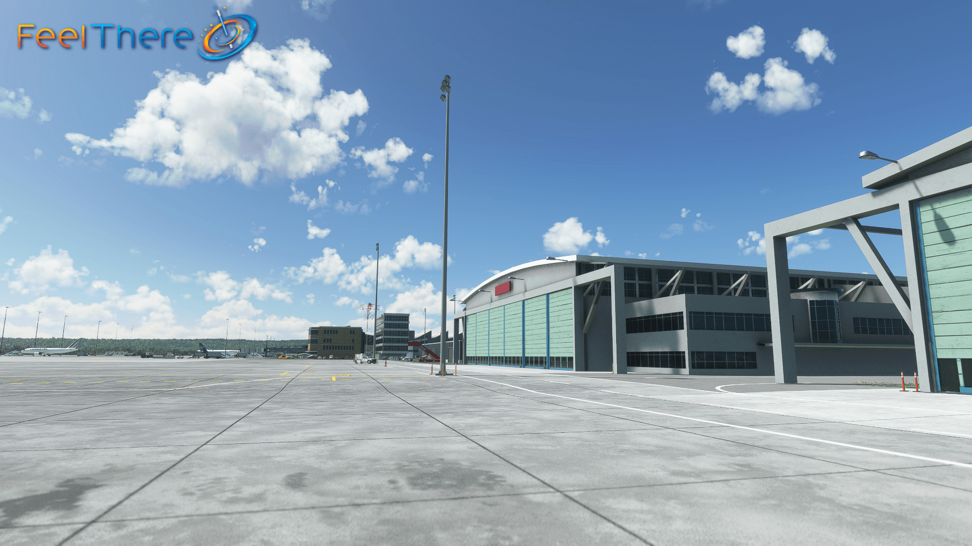 - Custom taxiway lines and decals throughout the airport