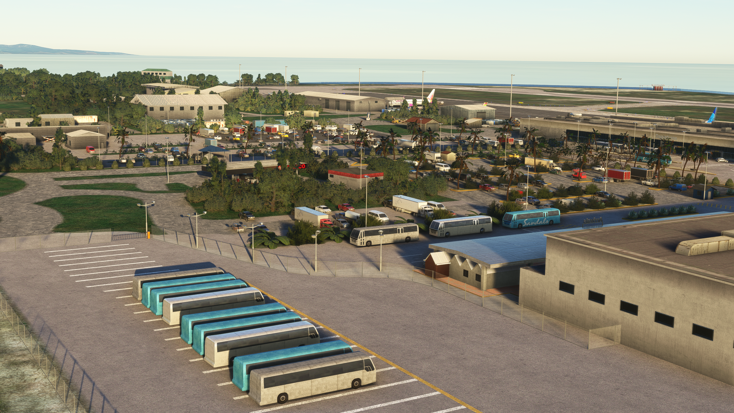 - Detailed airport terminal, hangars, and buildings, complete with 4K PBR textures and night lighting