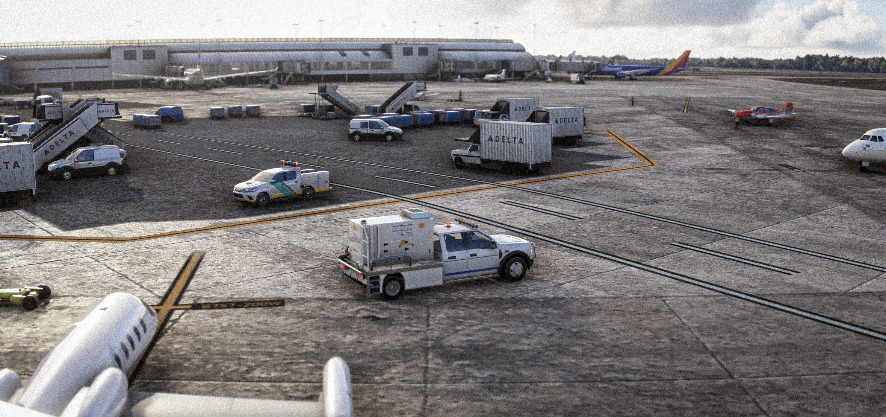 - Hand-made ground textures (Runways, aprons, paths, roads)