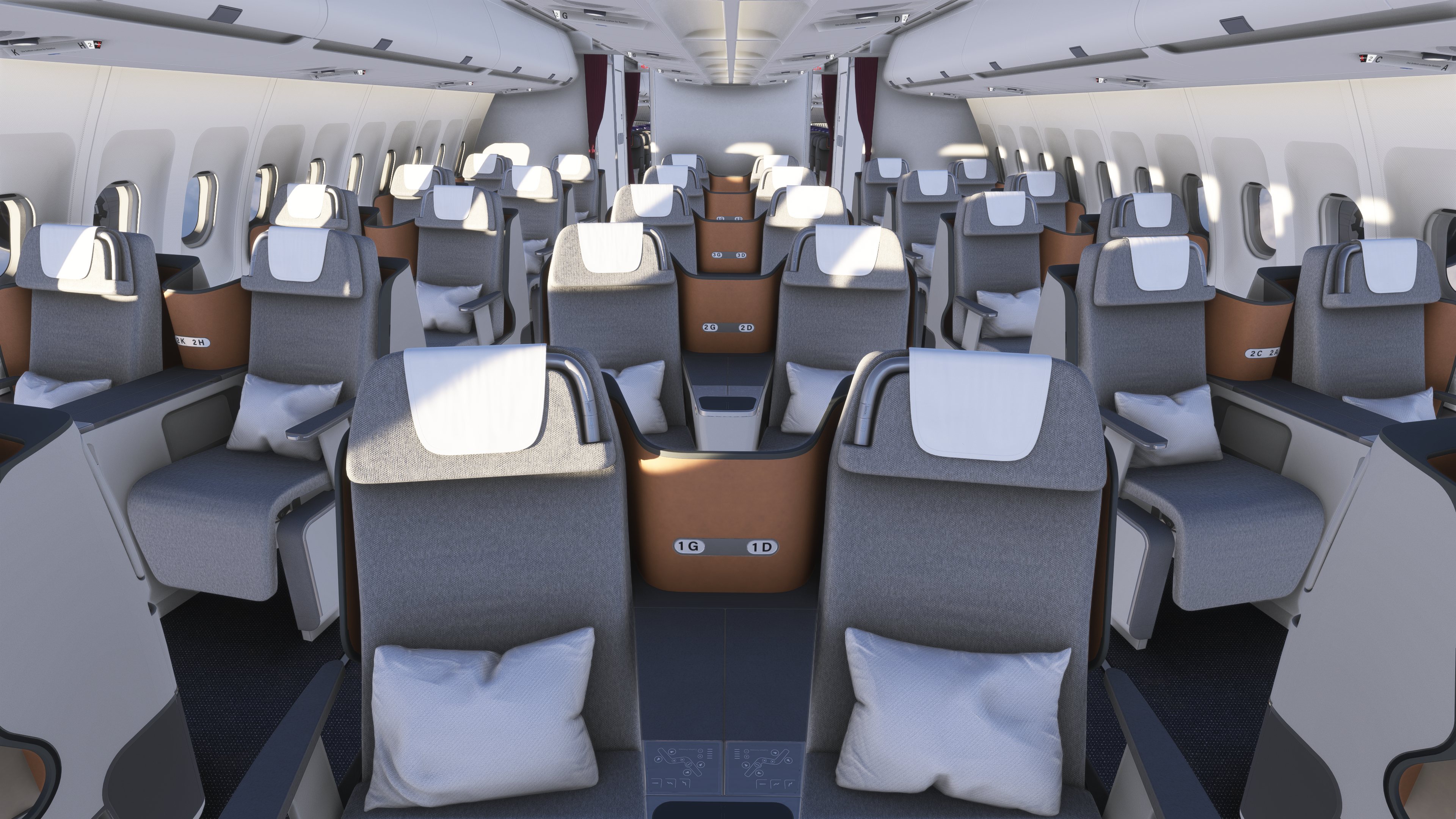 • A three-class layout inspired by a German airline, complete with functioning galleys and lavatories