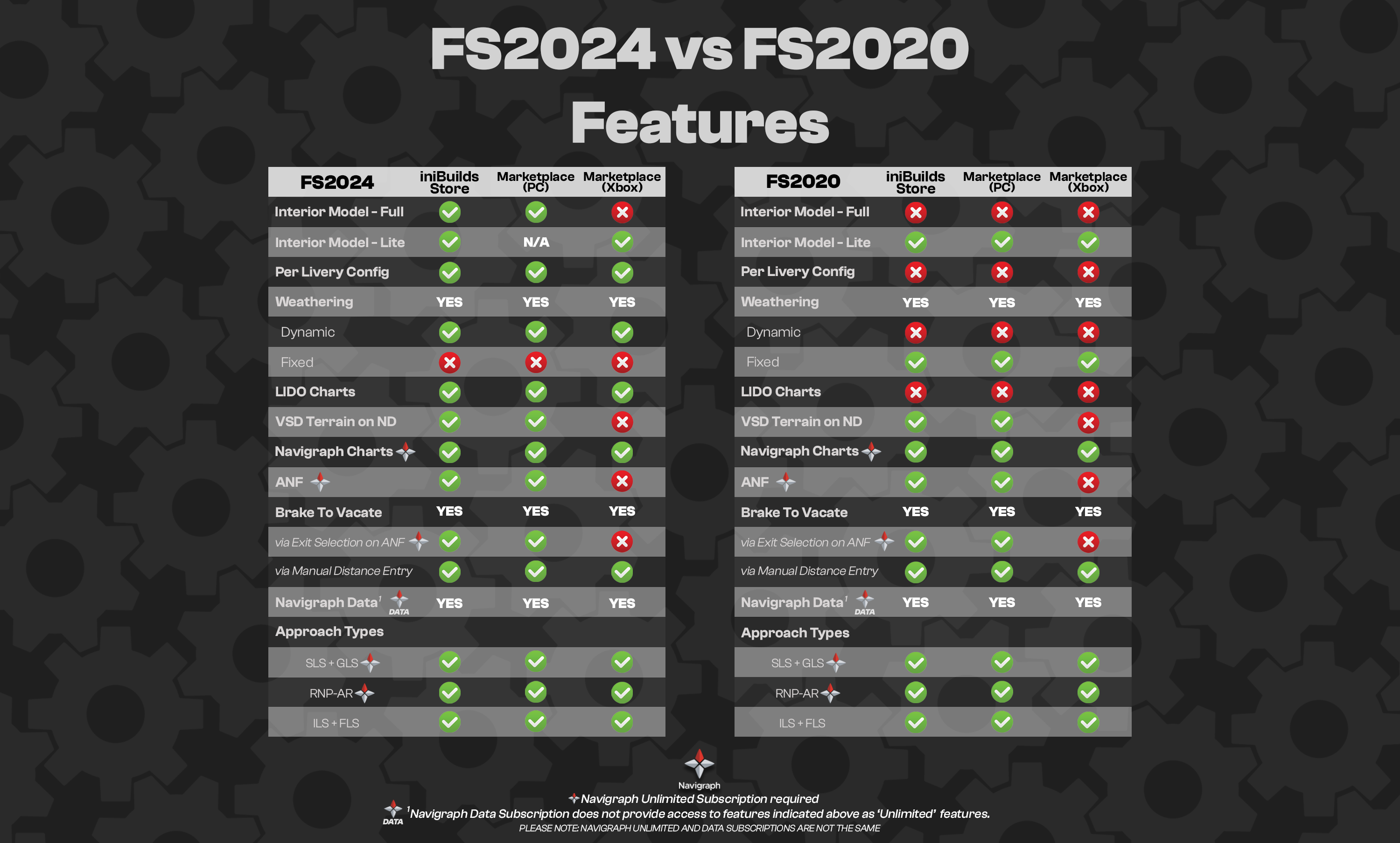 • Runway Overrun Prevention System / Runway Overrun Warning [ROPS/ROWS]* Manual Distance Entry BTV does not require Navigraph subscription | ANF only available on PC versions.