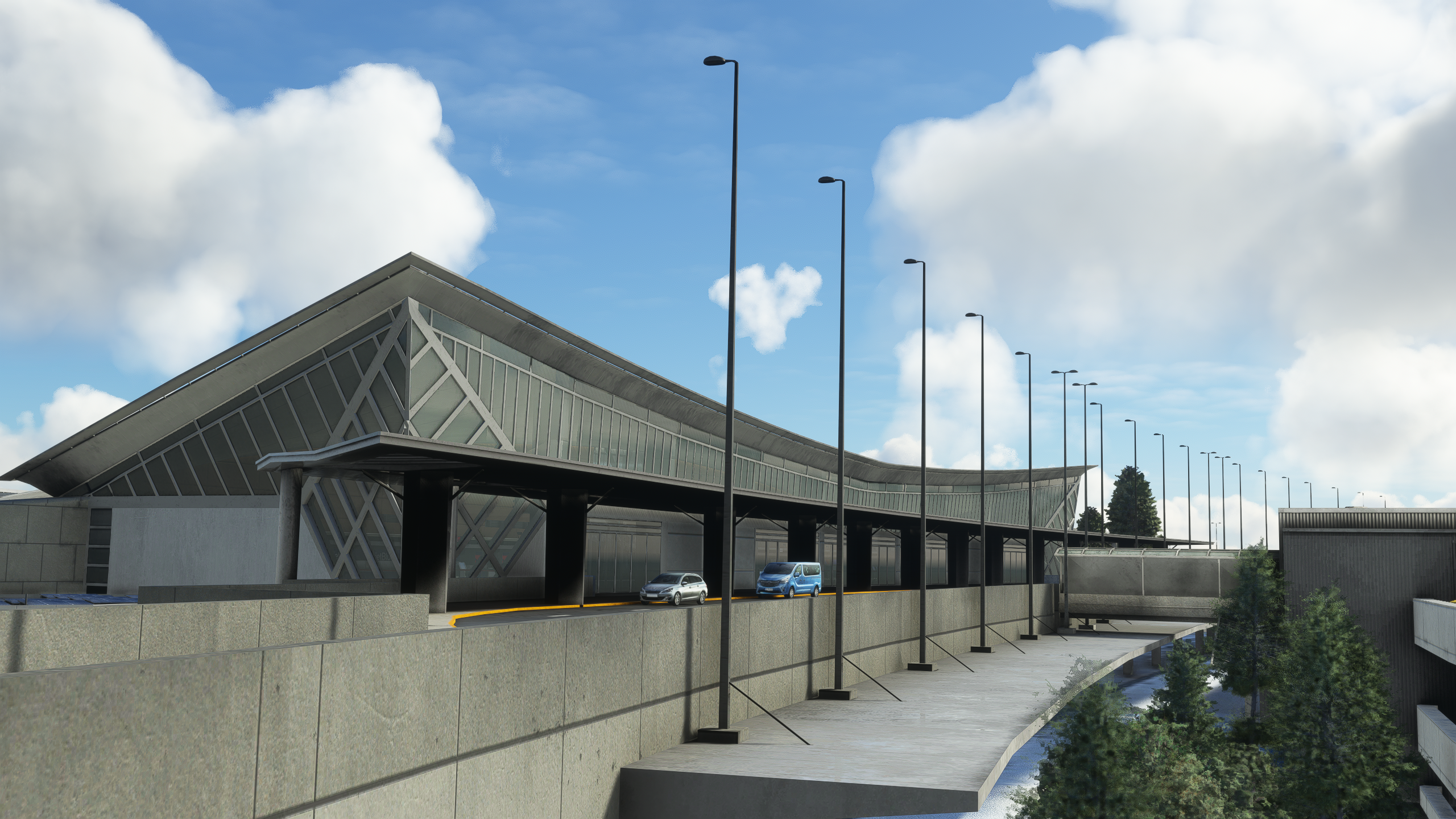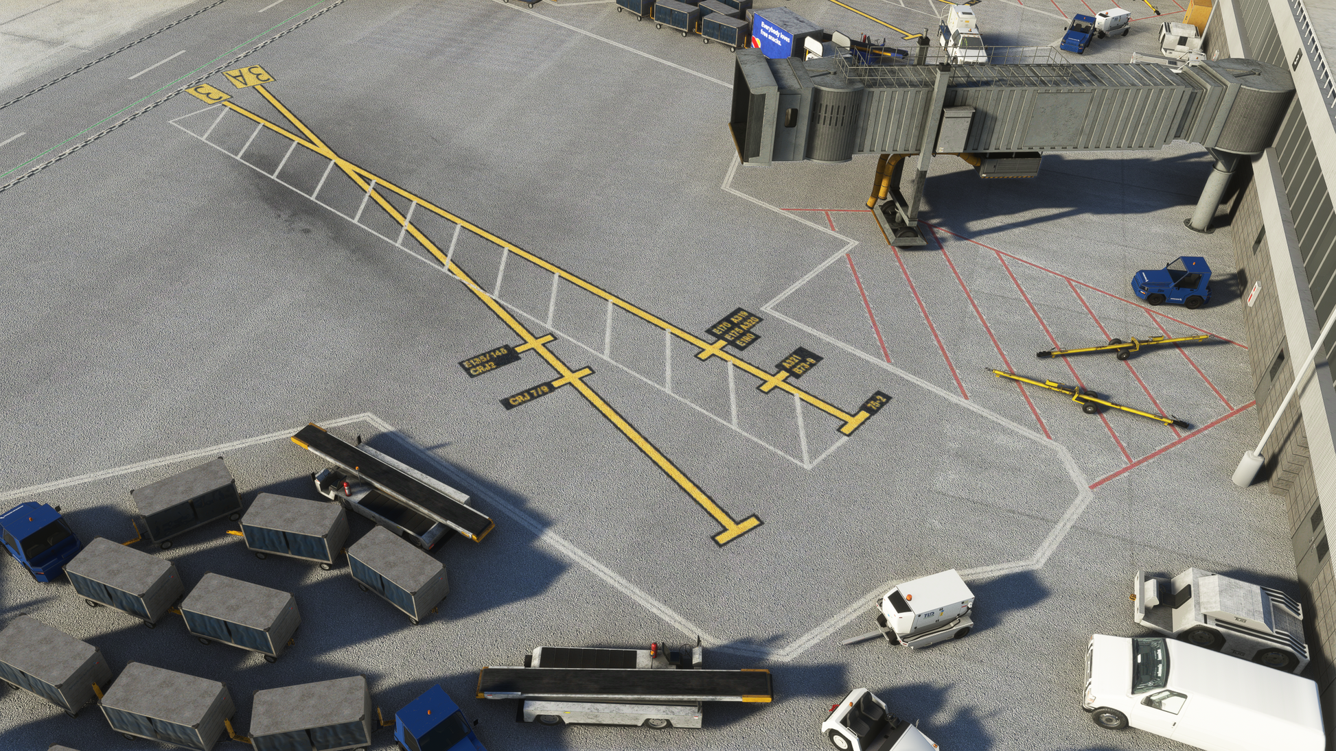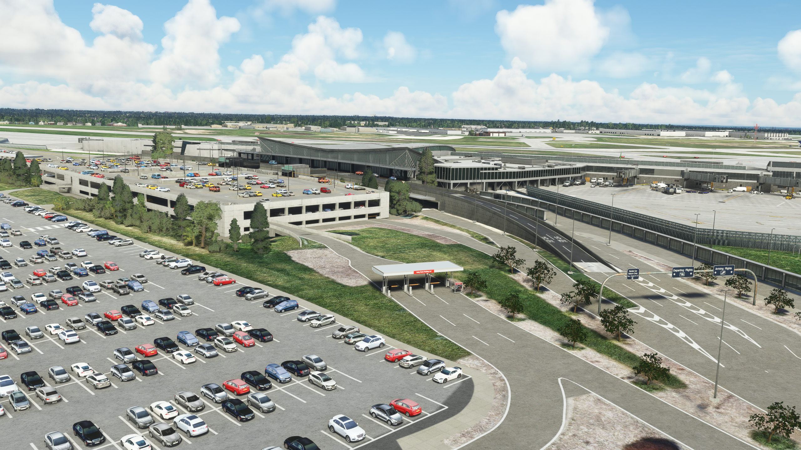 - True-to-life airport land side recreation with custom ground decals, signposts, vegetation, parking barriers and more