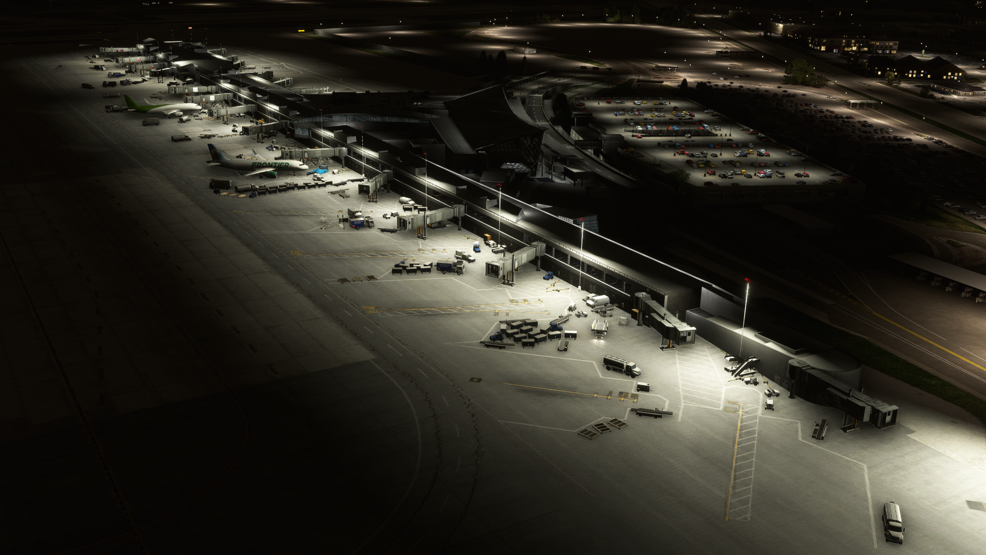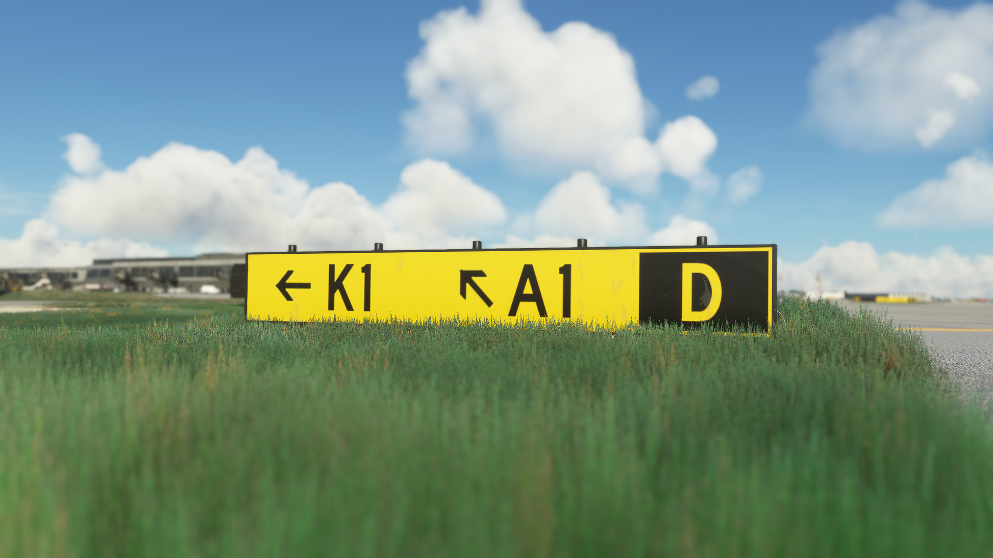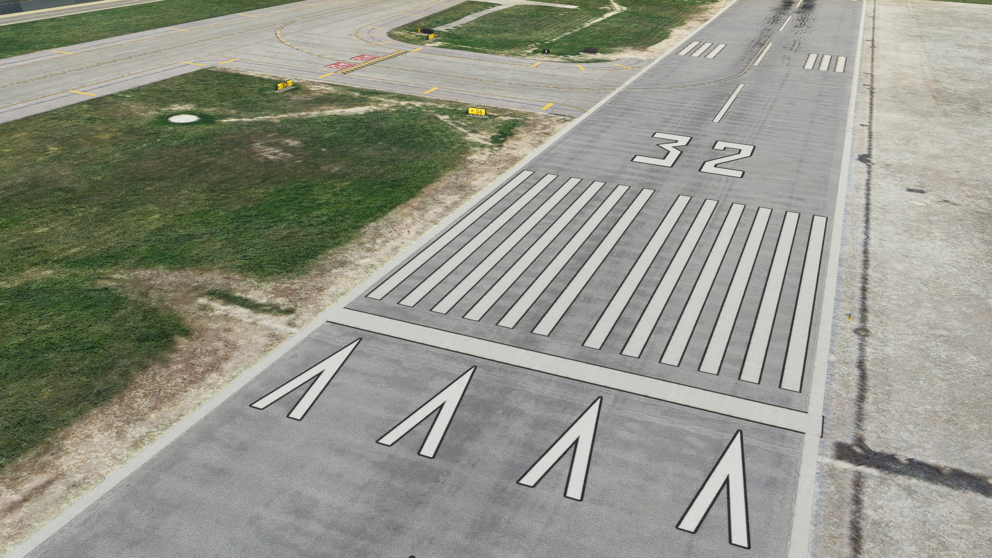 - Hand-made ground polygons with crisp, bespoke texture sets (Runways, aprons, paths, roads)