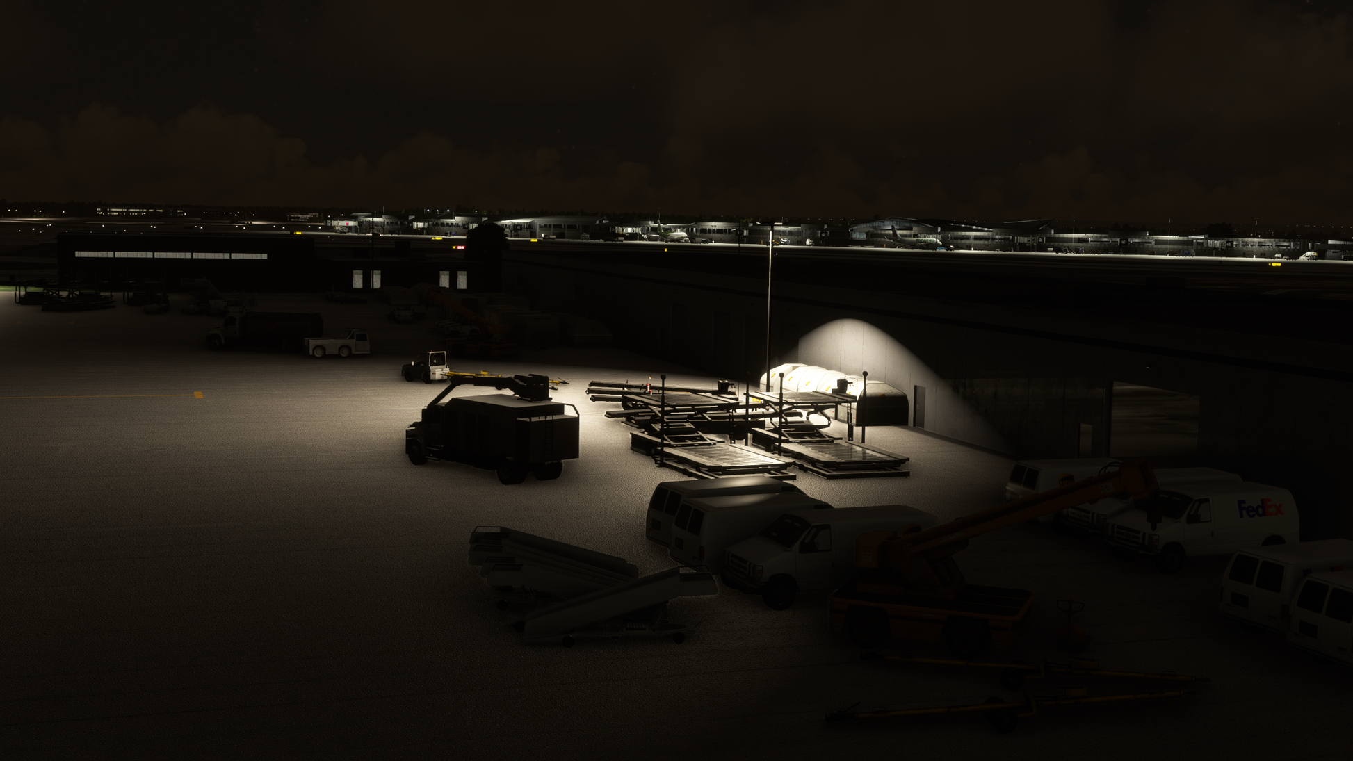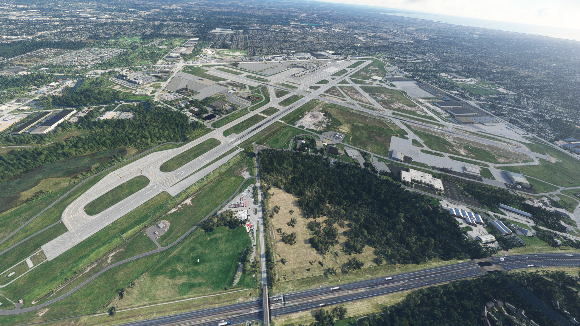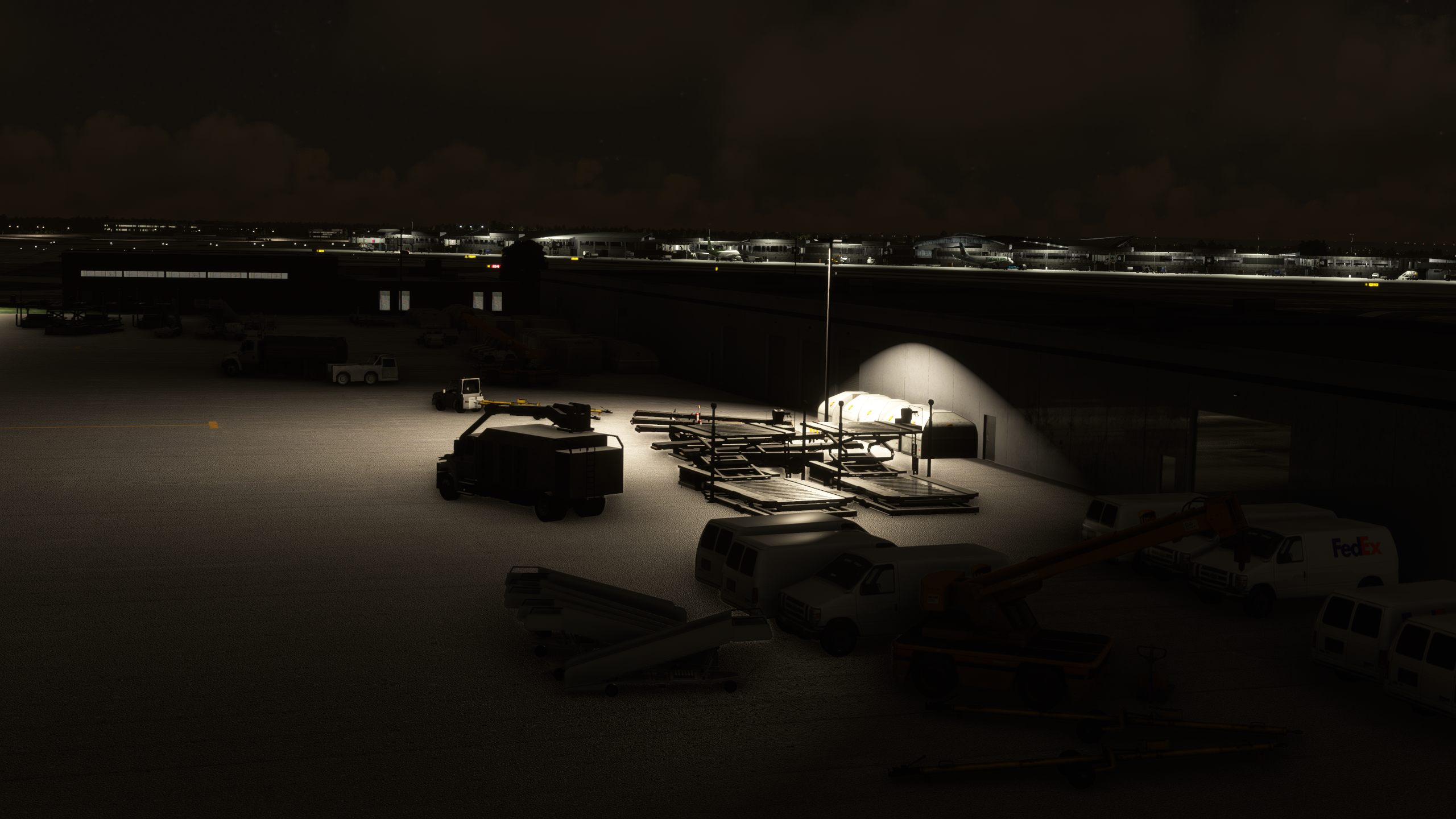 - Hand-made ground polygons with crisp, bespoke texture sets (Runways, aprons, paths, roads)
