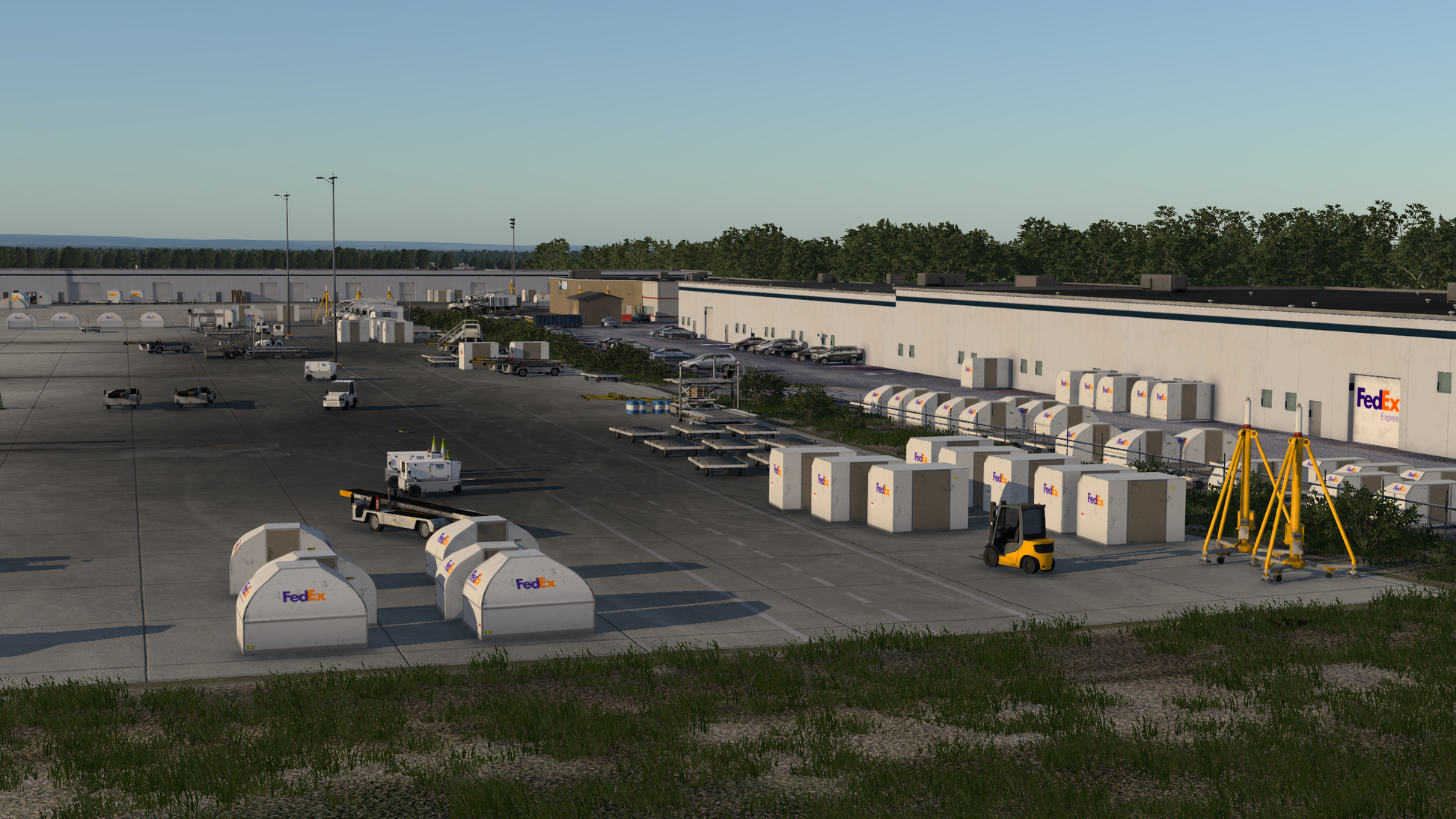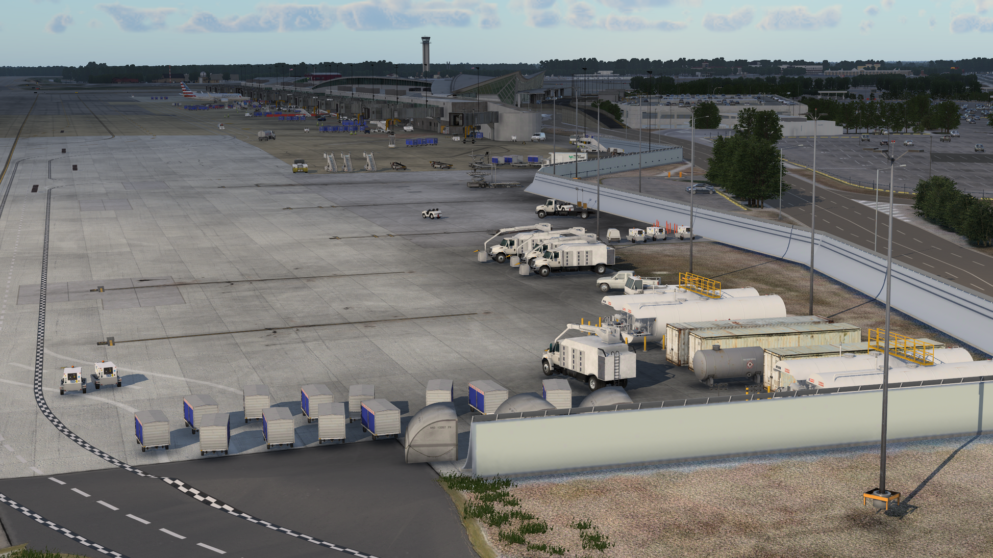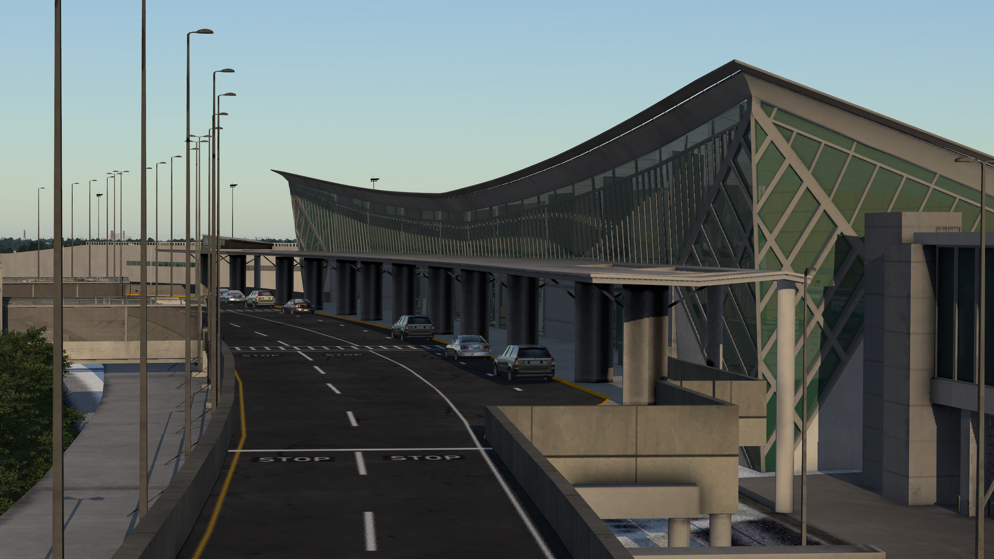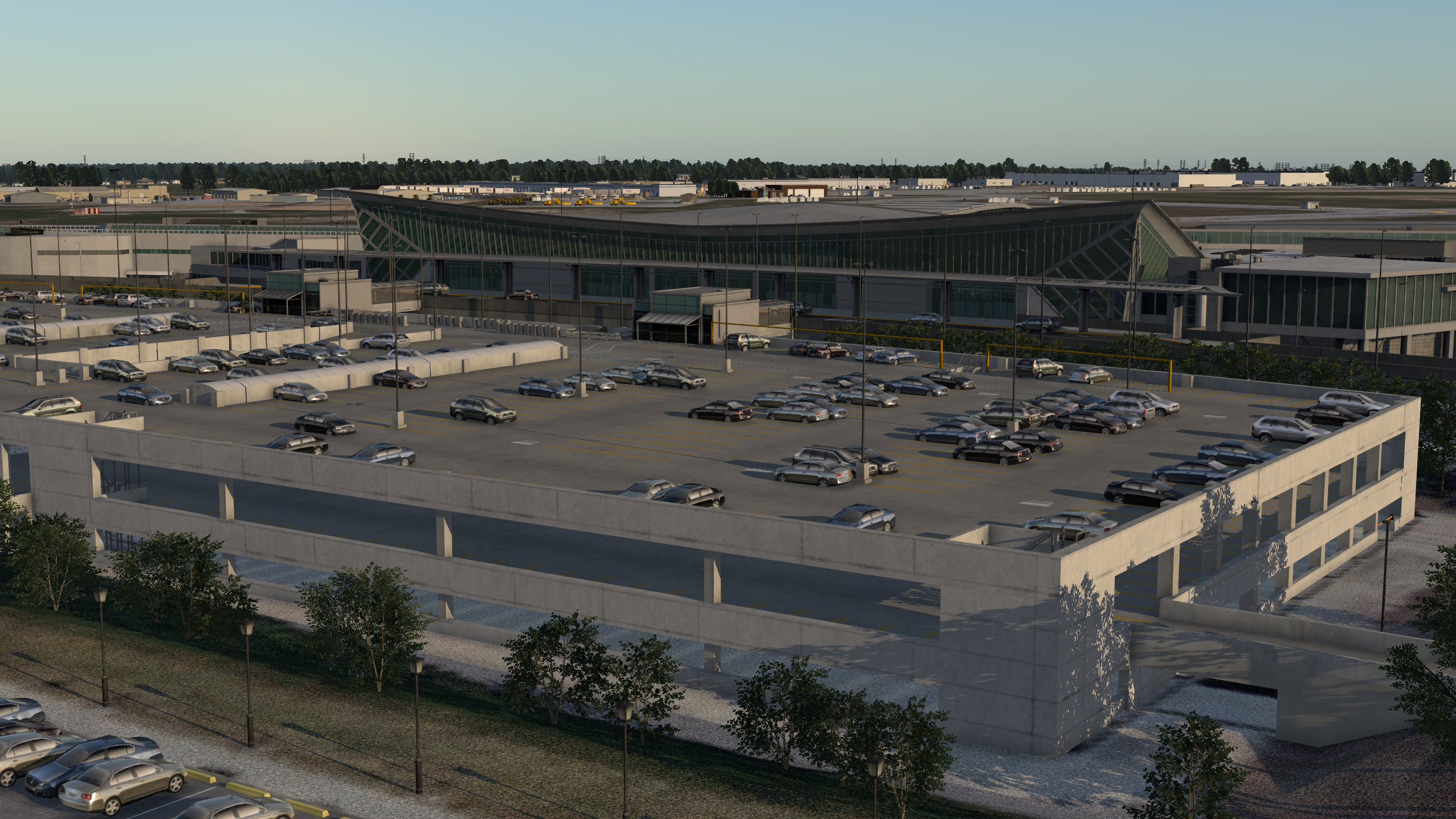 - True-to-life airport land side recreation with custom ground decals, signposts, vegetation, parking barriers and more