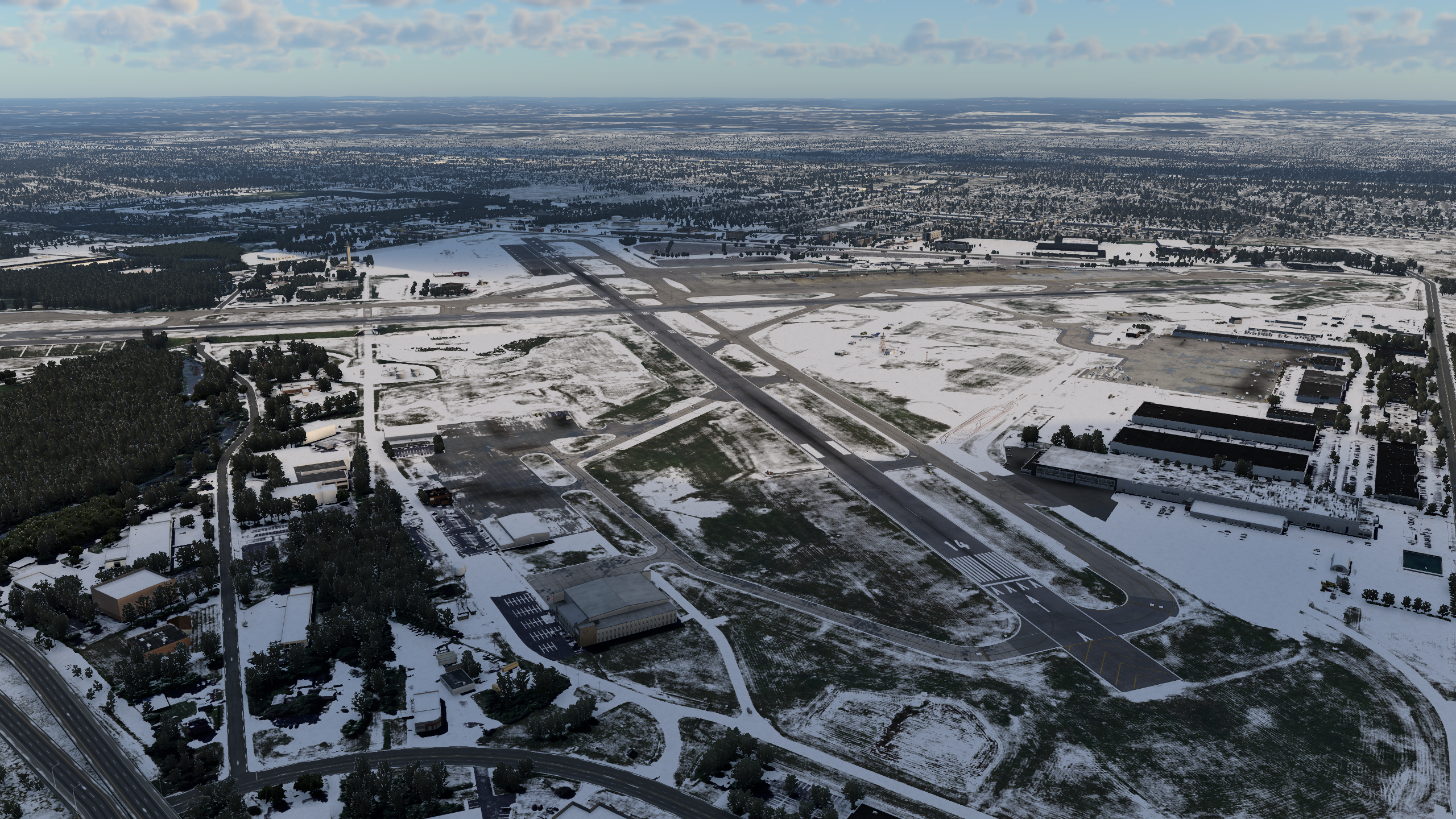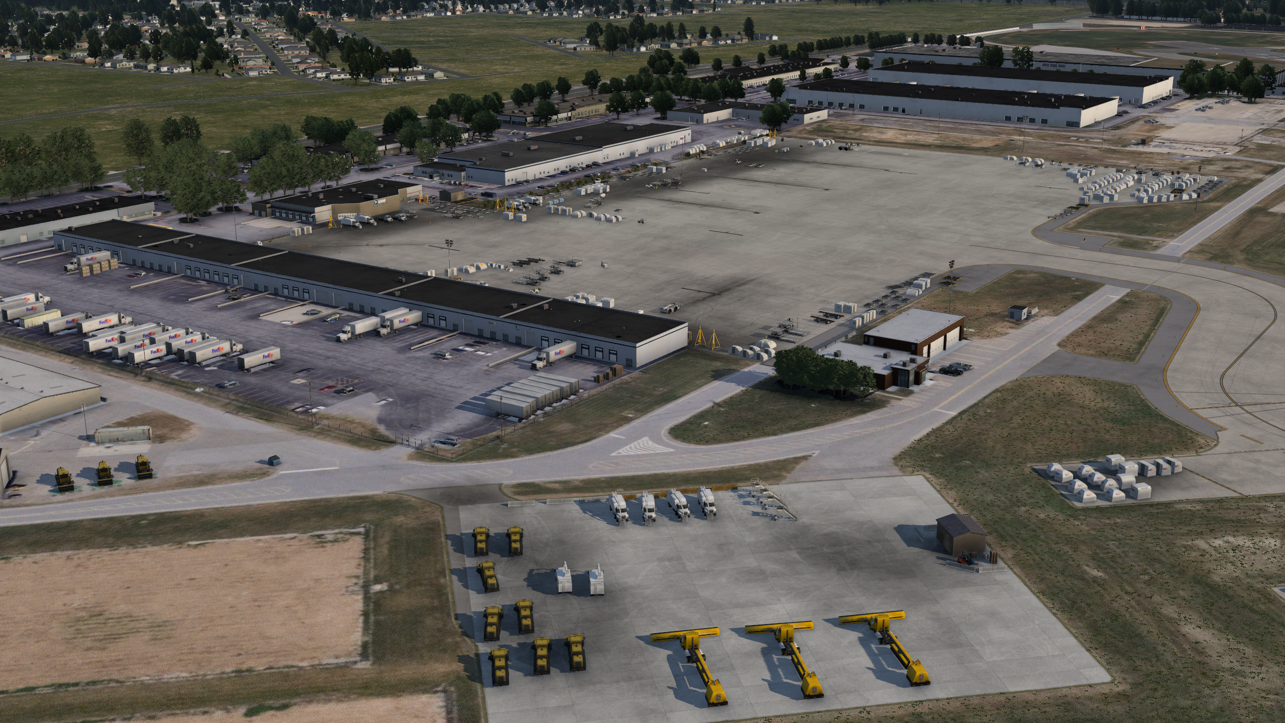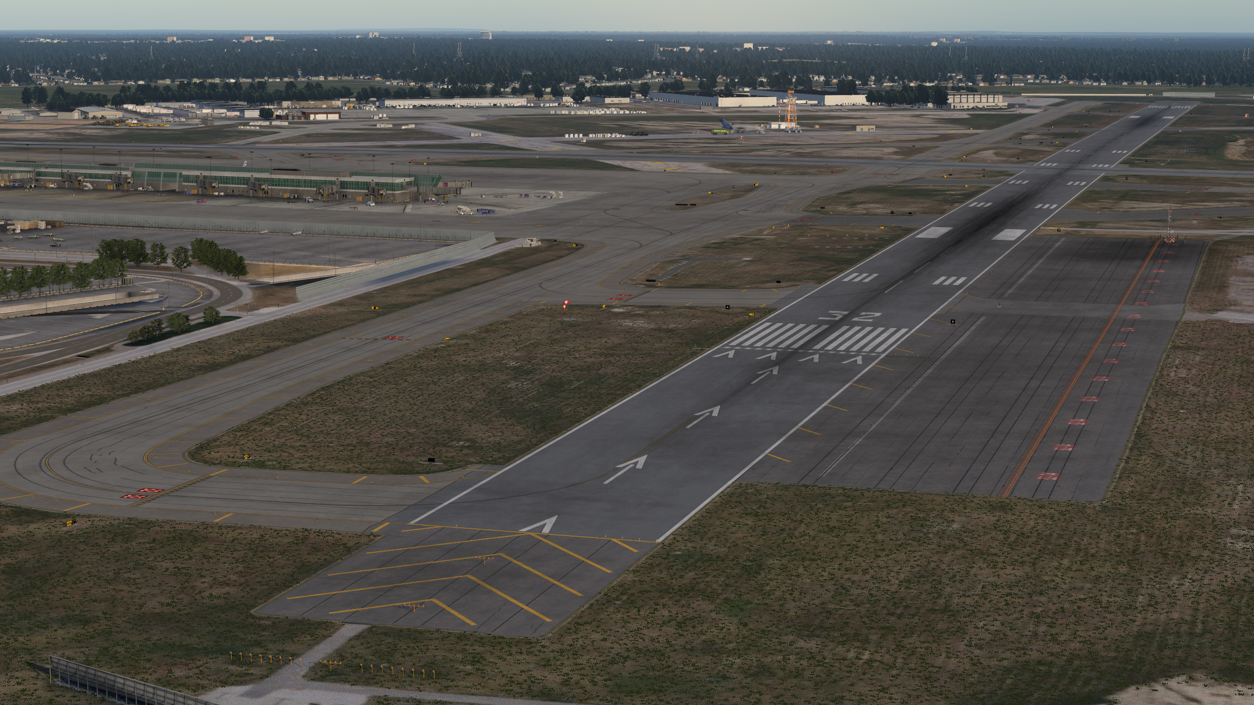 - Hand-made ground polygons with crisp, bespoke texture sets (Runways, aprons, paths, roads)