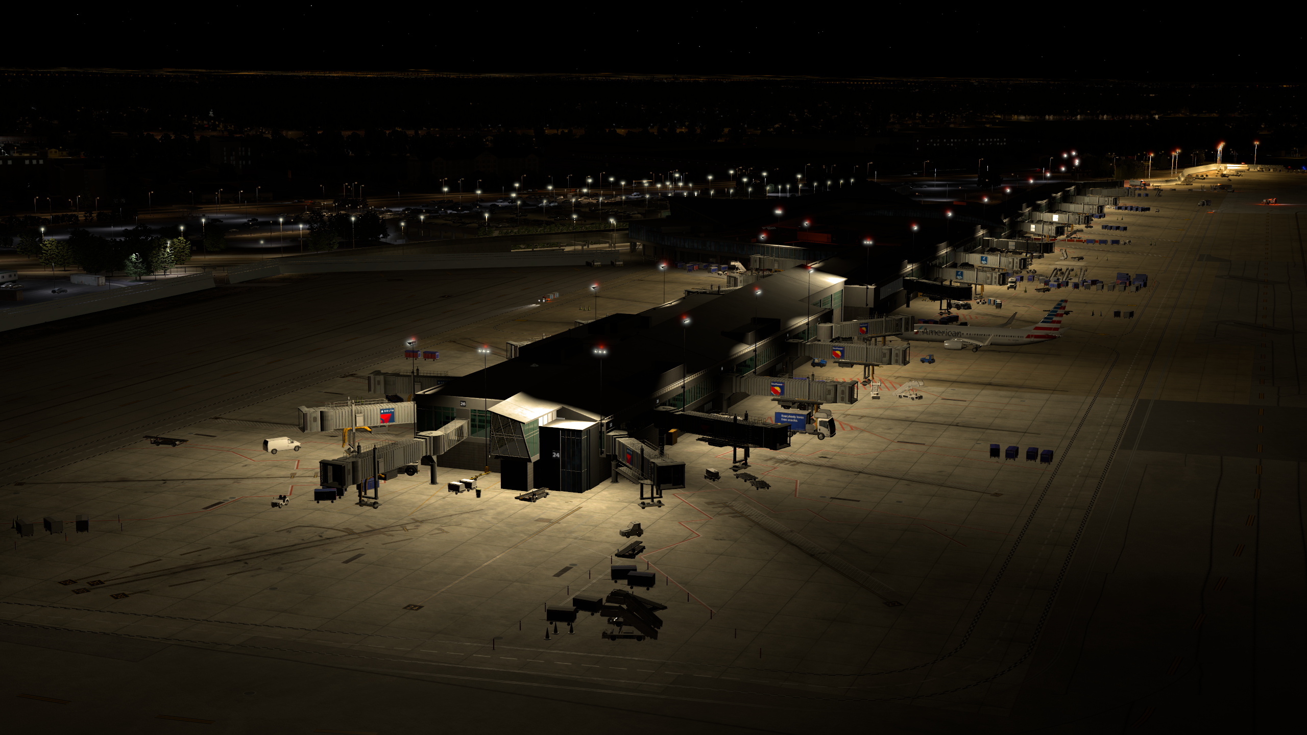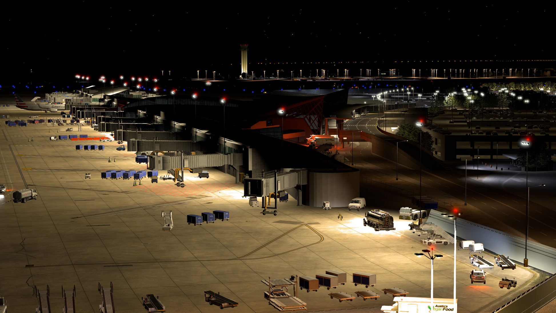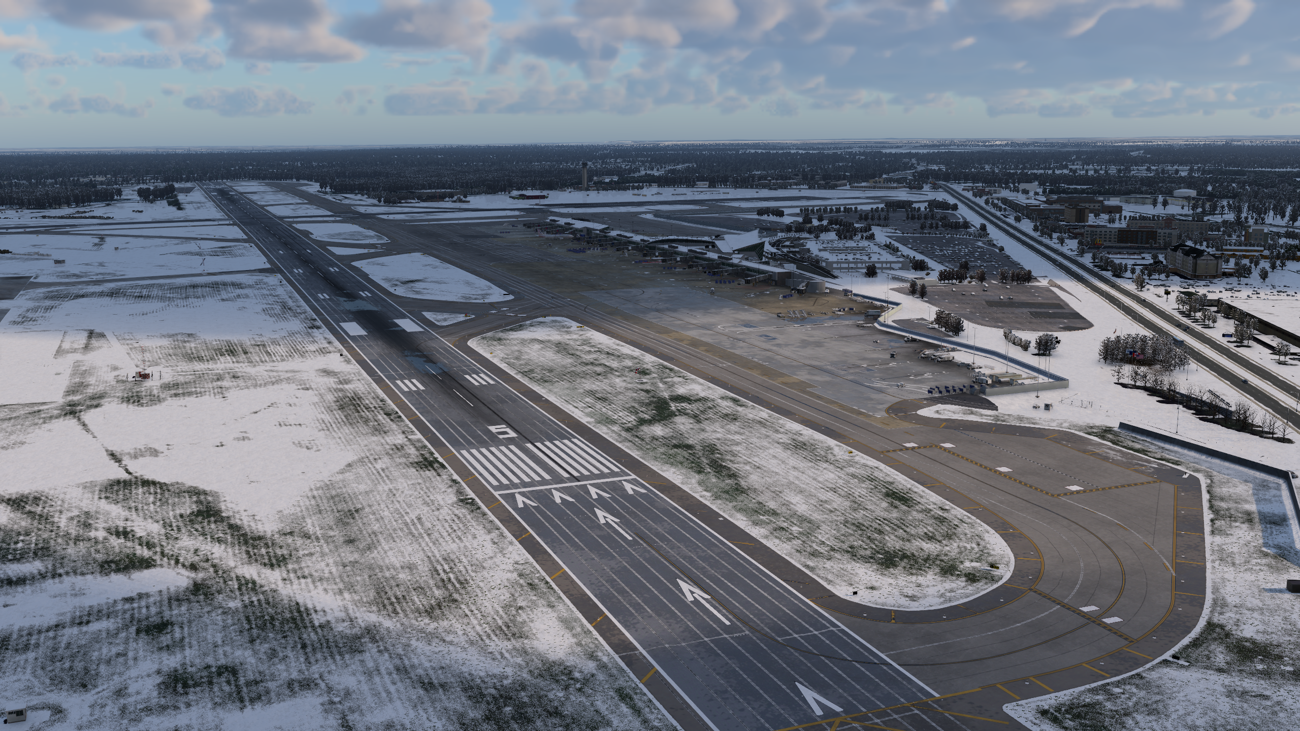 - Hand-made ground polygons with crisp, bespoke texture sets (Runways, aprons, paths, roads)