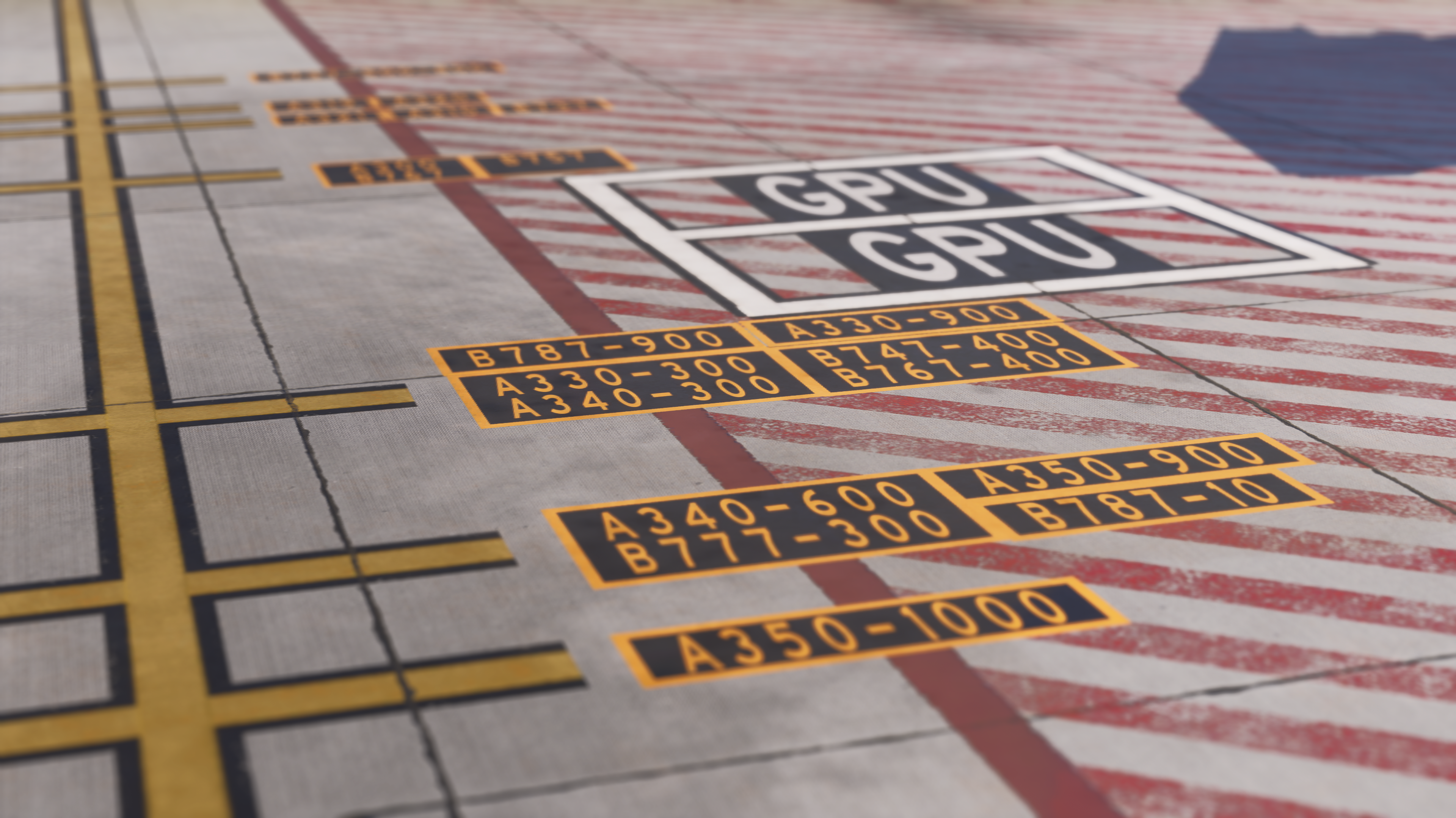 - Hand-made ground textures with crisp, bespoke texture sets for runways, aprons, paths, and roads