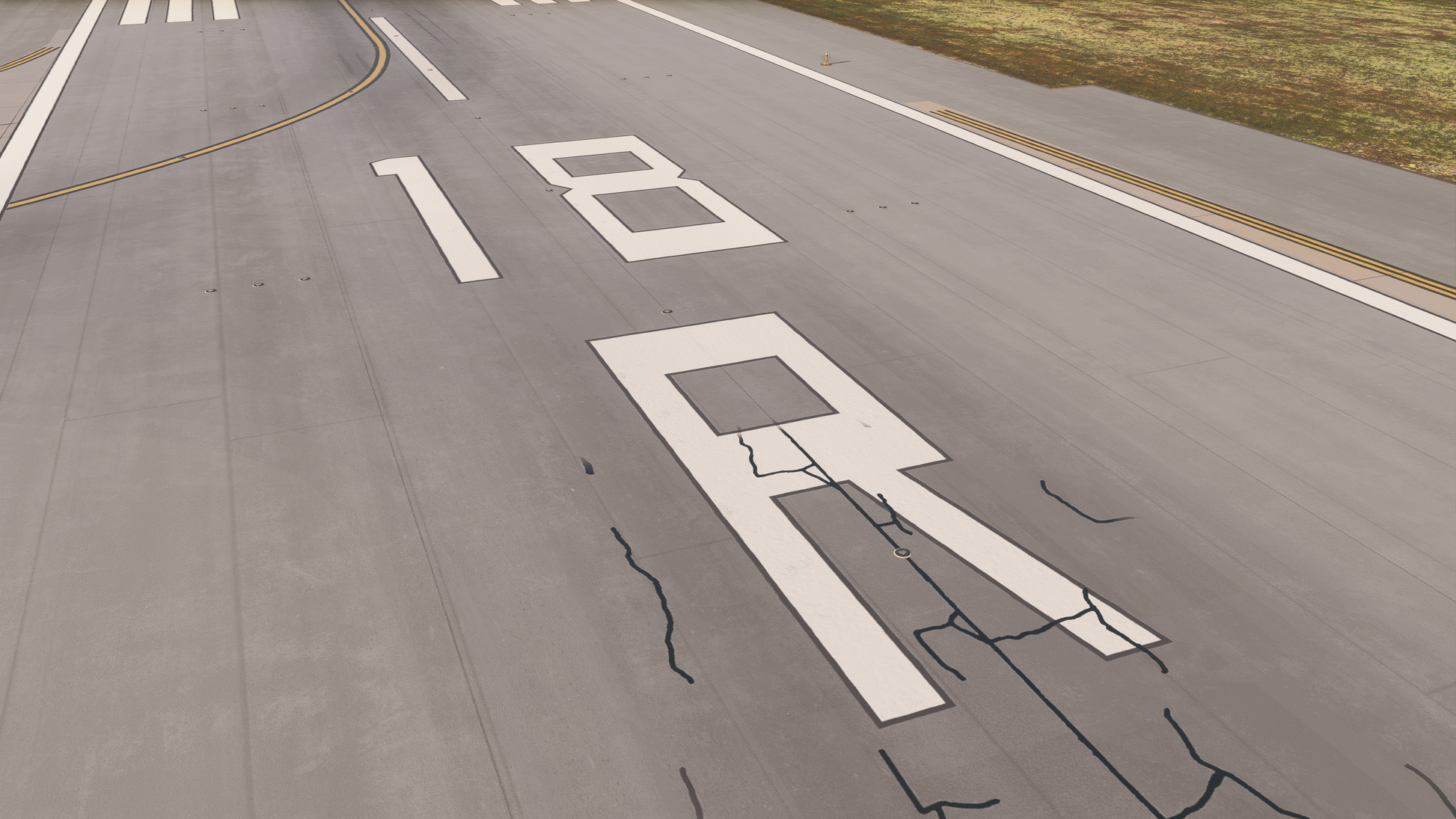 - Hand-made ground textures with crisp, bespoke texture sets for runways, aprons, paths, and roads
