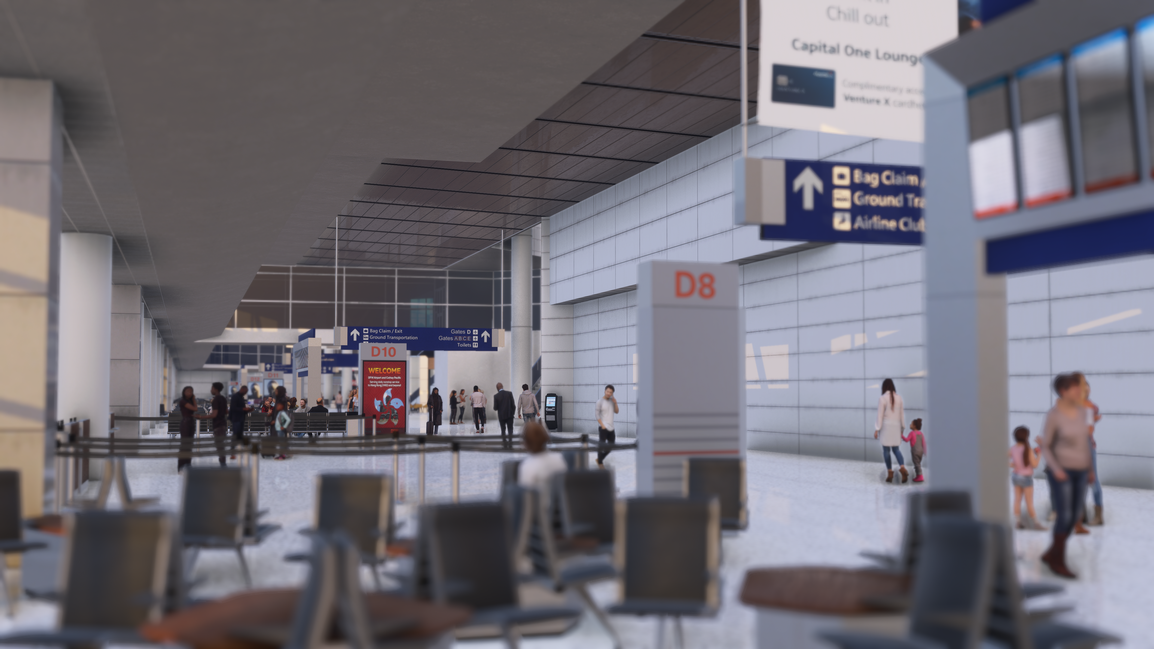 - True-to-life airport landside recreation with custom ground decals, signposts, vegetation, parking barriers, and more