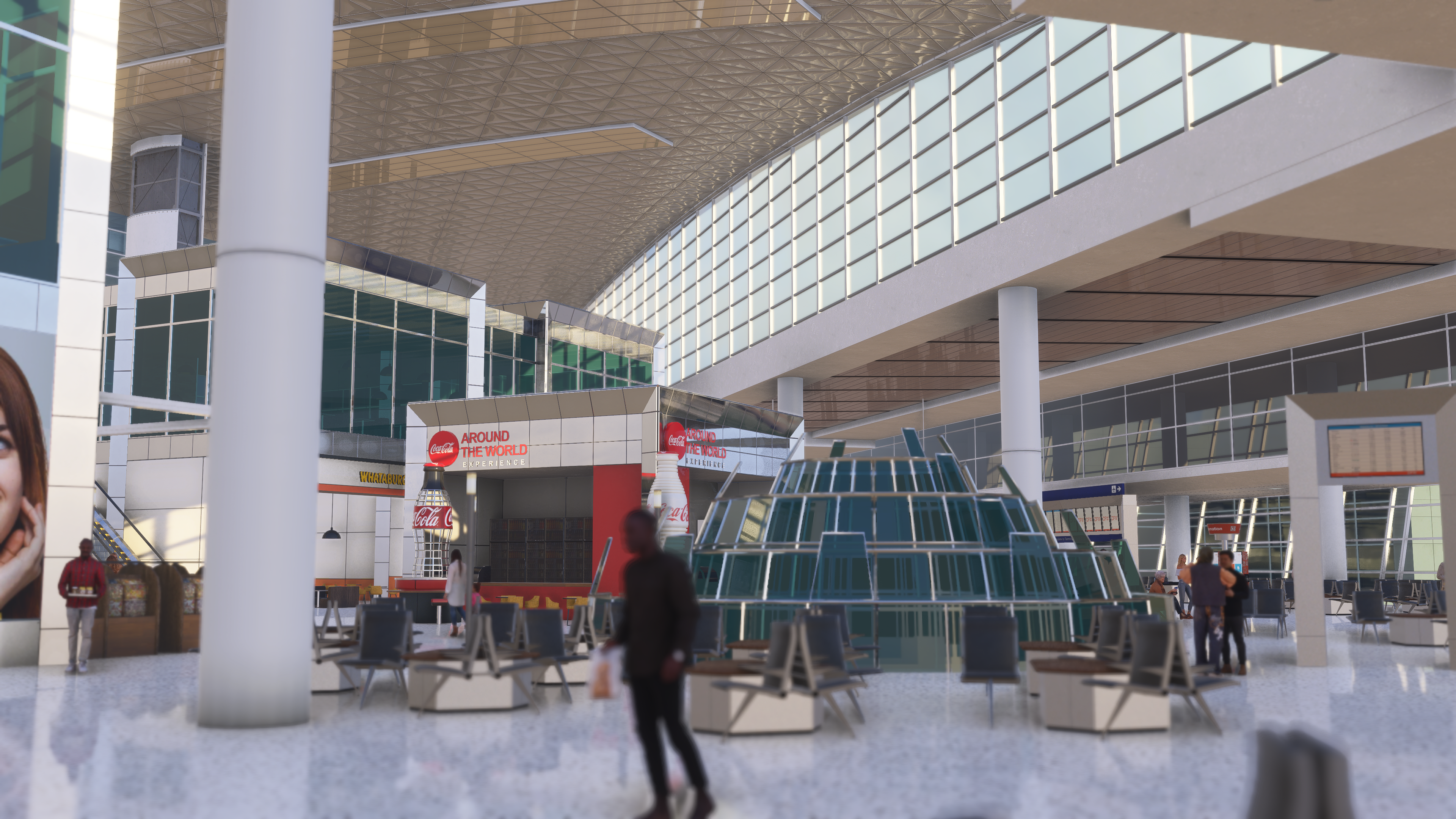 - Fully modelled and animated Skylink Air Train system connecting all terminals