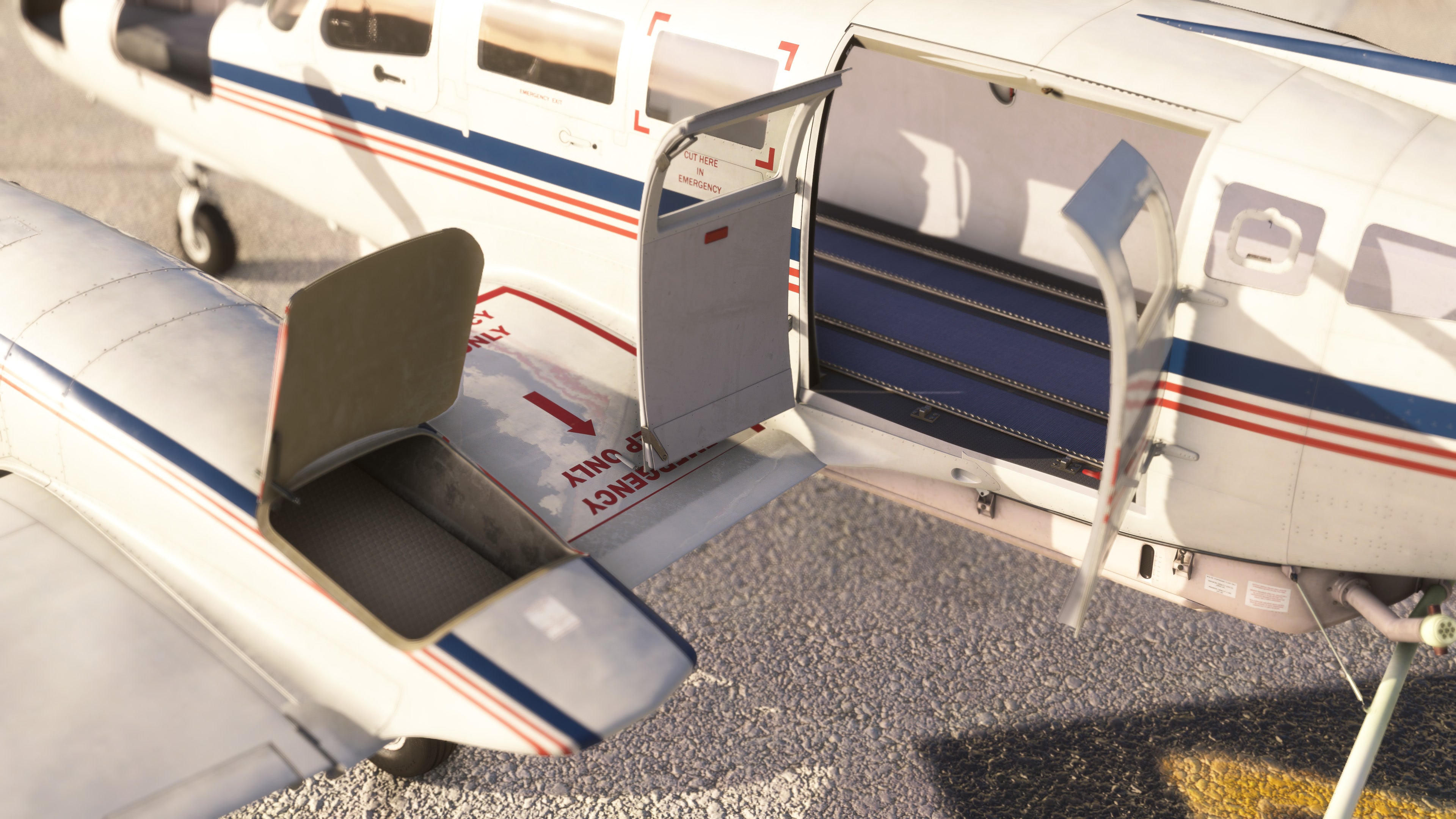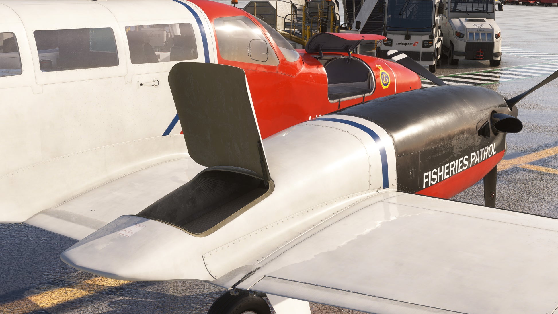- Exterior realism including a high-fidelity model based on 3D scans, custom fowler flaps, exhaust effects, propeller blur and more!