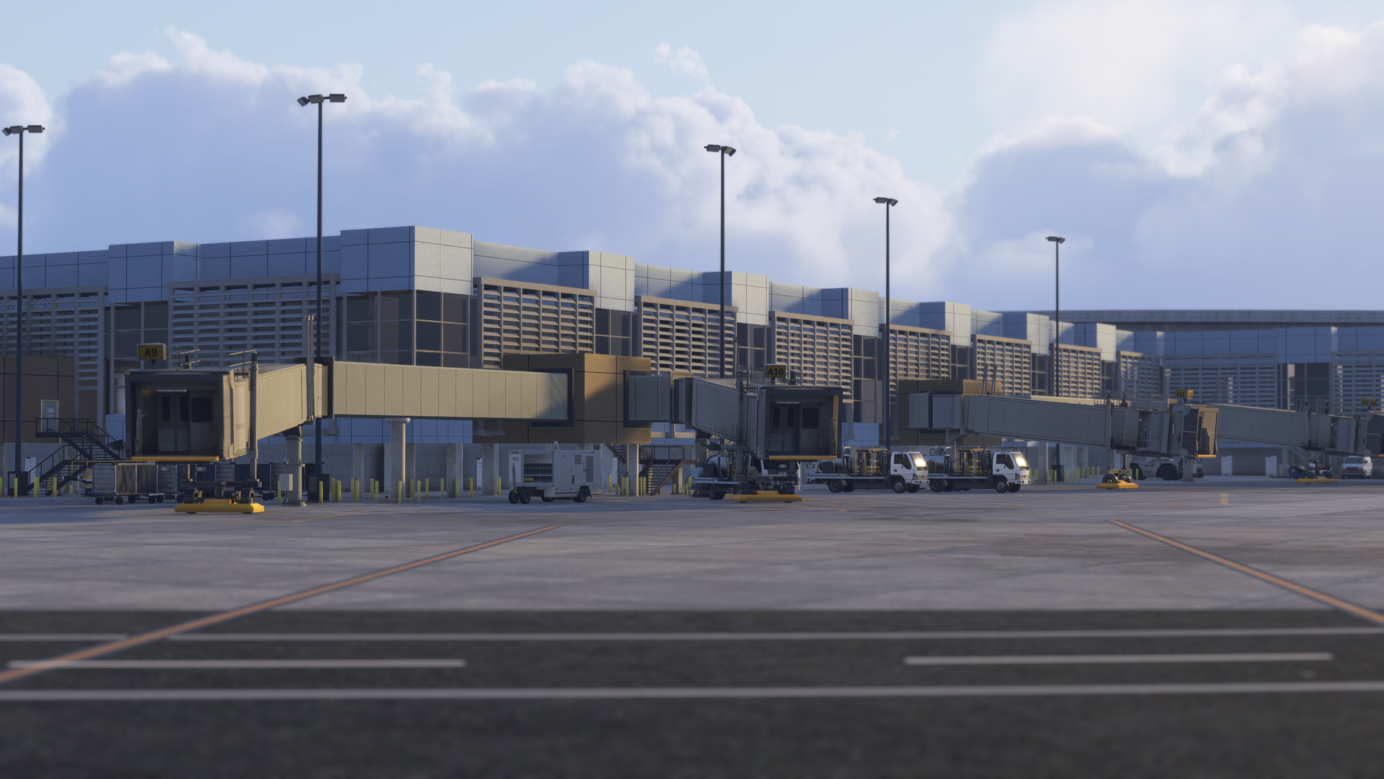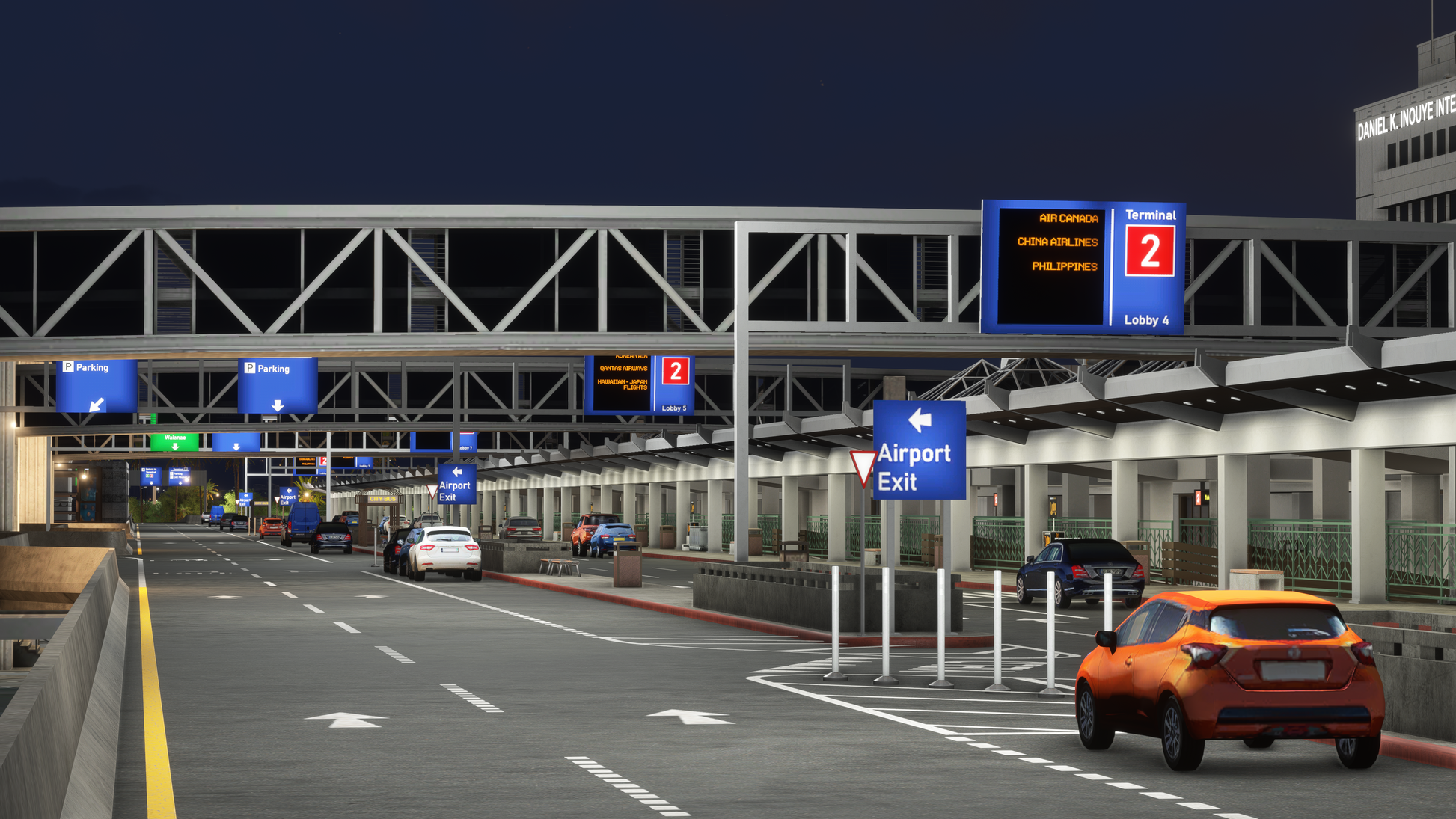- True-to-life airport landside recreation with custom ground decals, signposts, vegetation, parking barriers and more
