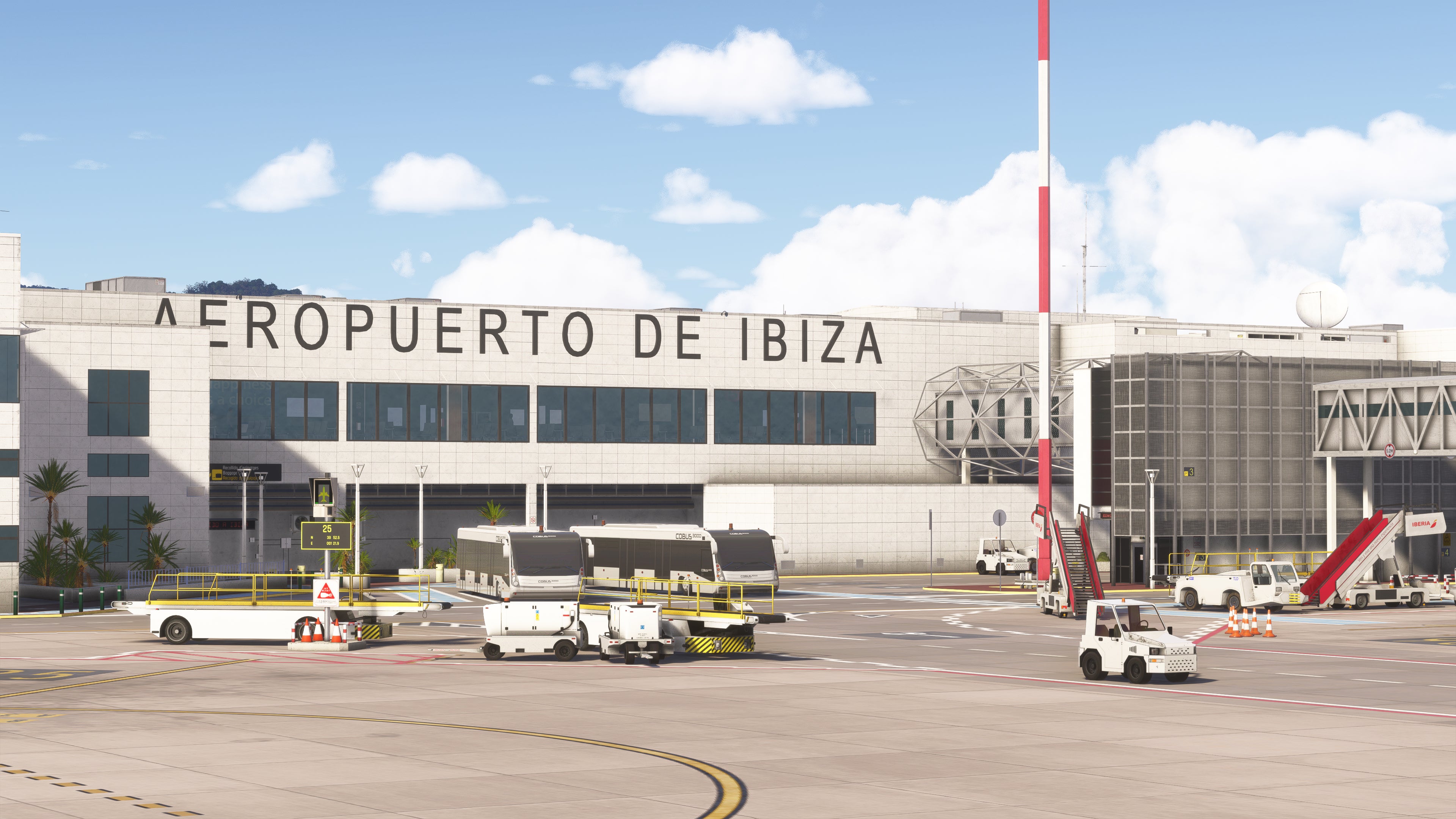 With this enhanced version, you'll explore carefully detailed and optimized terminal interior, complete with unique decals, advertisements, and signage specific to Ibiza Airport. The scenery also boasts custom, accurate night lighting throughout the landside area, apron, and surrounding regions, ensuring an immersive experience whether you're arriving at sunrise or landing under the stars!
