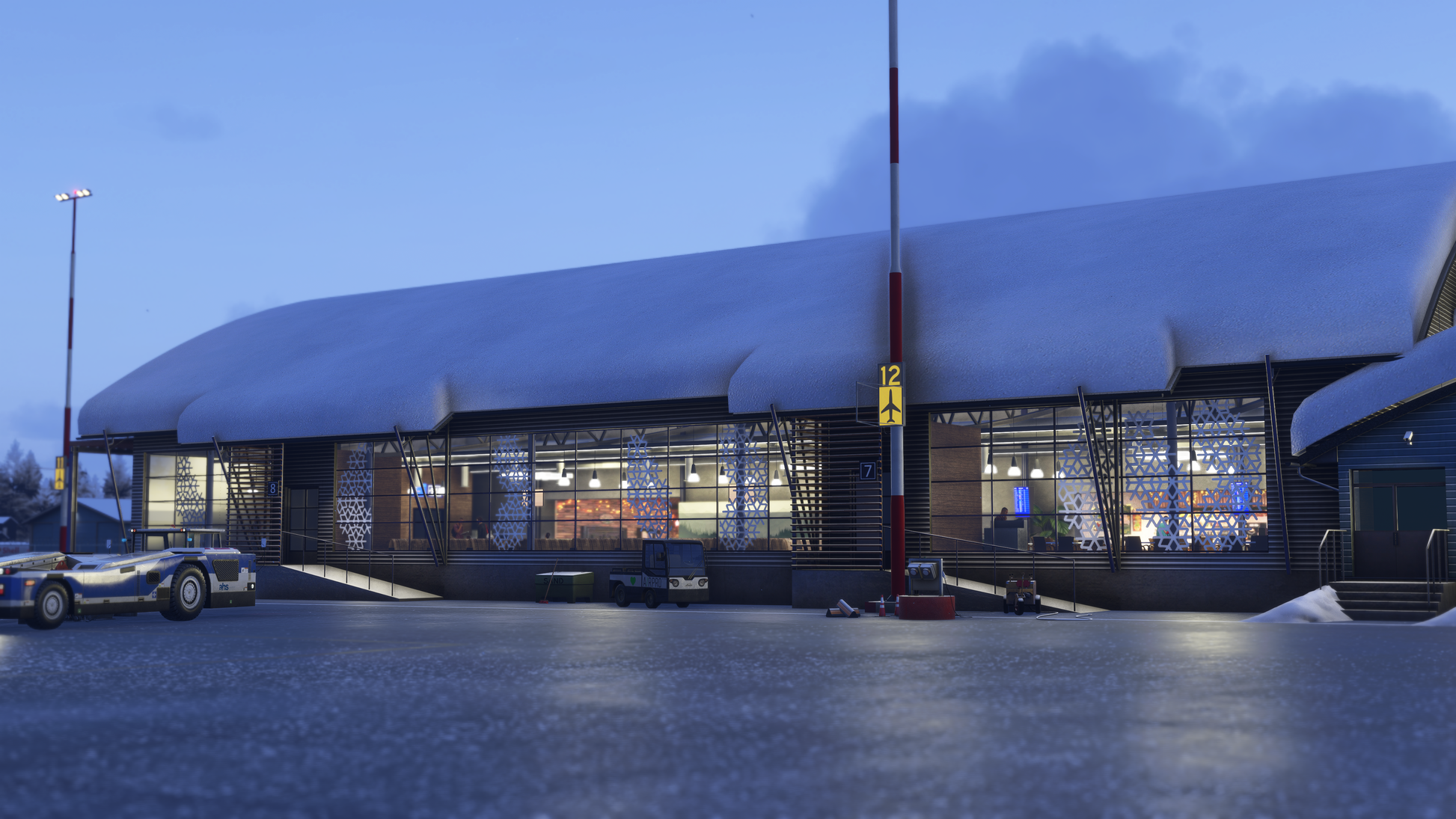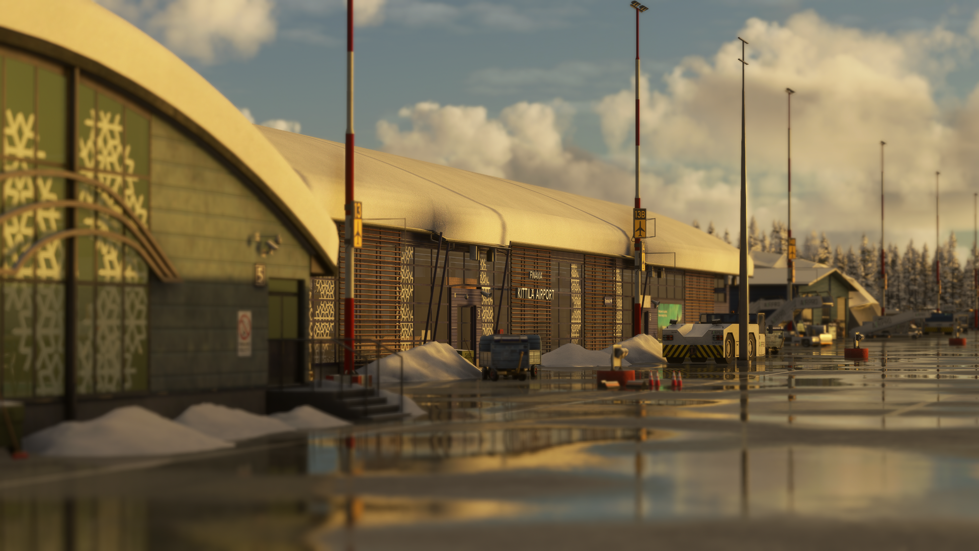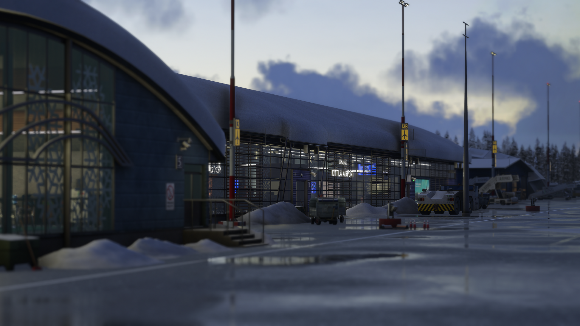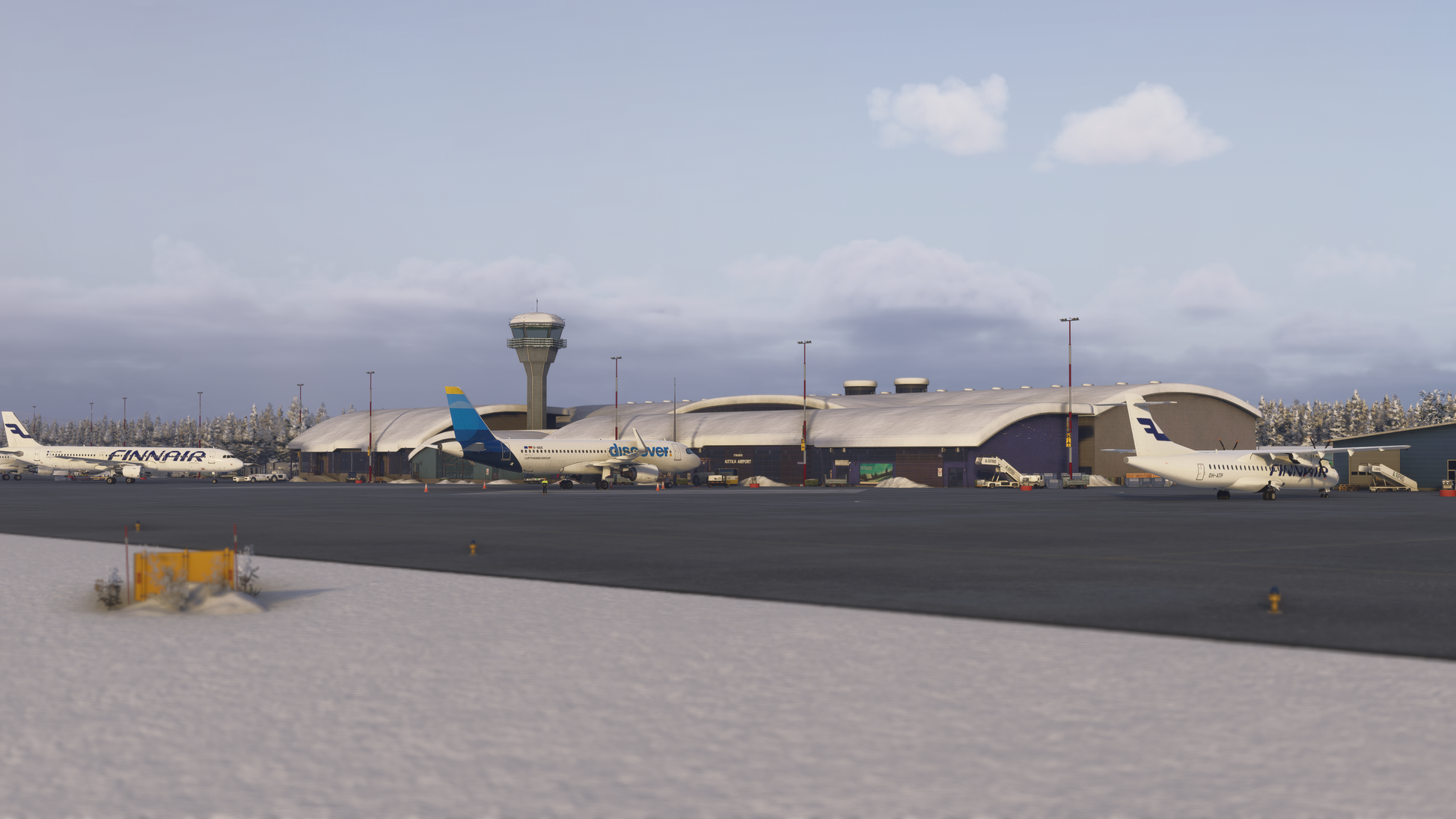 This handcrafted scenery delivers an authentic and highly detailed recreation of Kittilä Airport and its surrounding Arctic environment. From the modern terminal and apron layout to the distinctive Lapland atmosphere shaped by snow, ice, and polar lighting, every element has been carefully designed to provide a deeply immersive experience true to real-world operations.