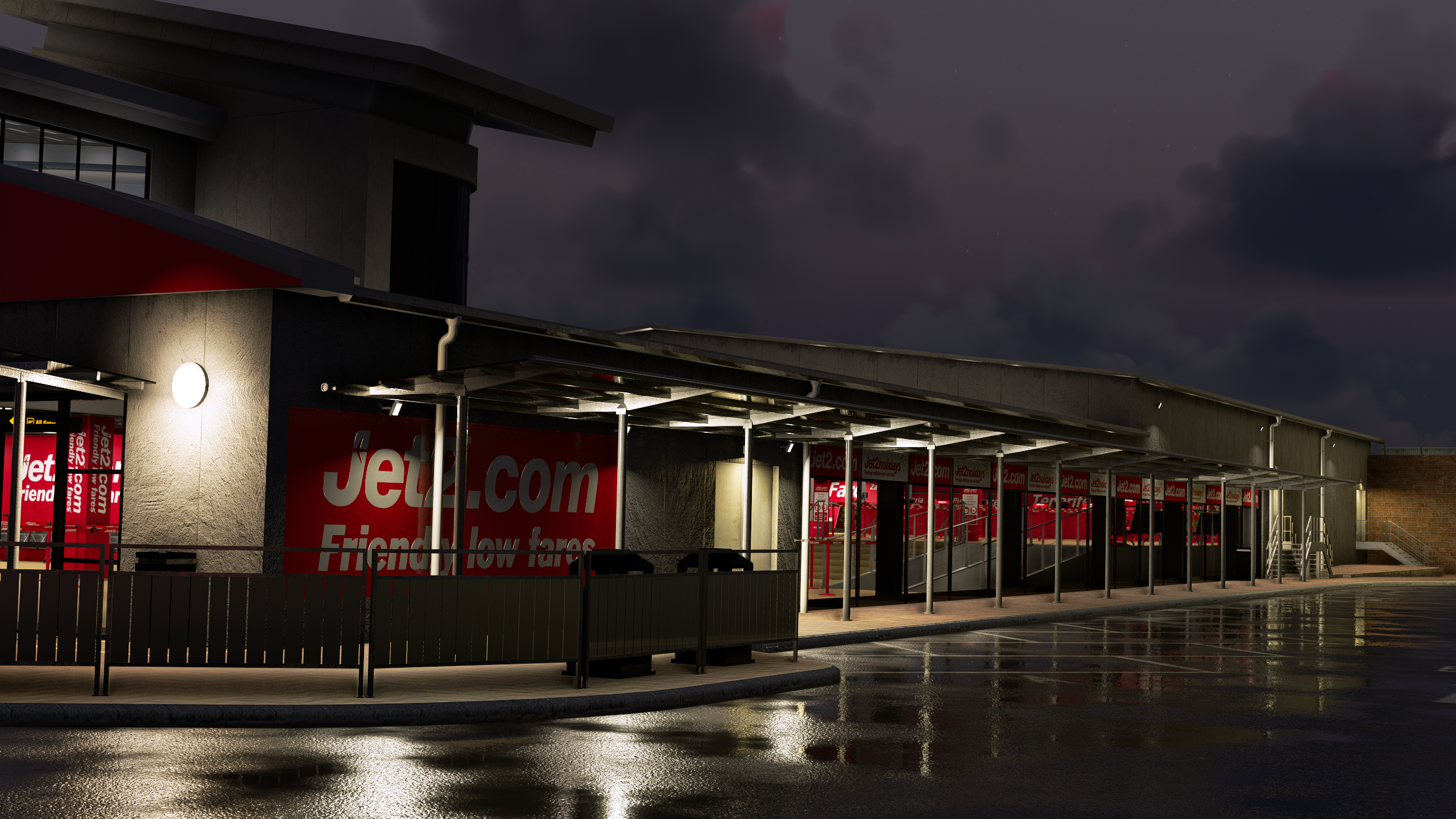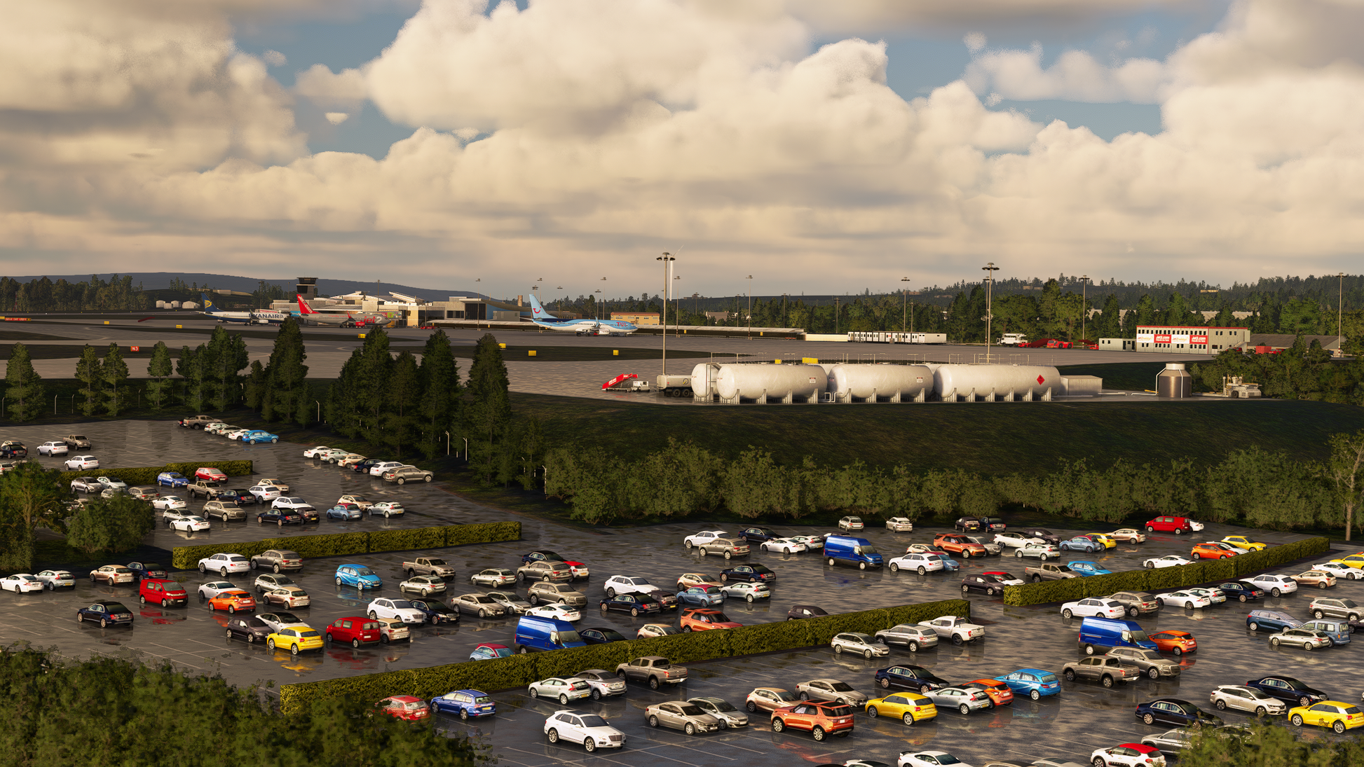 - True-to-life airport landside recreation with custom ground decals, signposts, vegetation, parking barriers and more