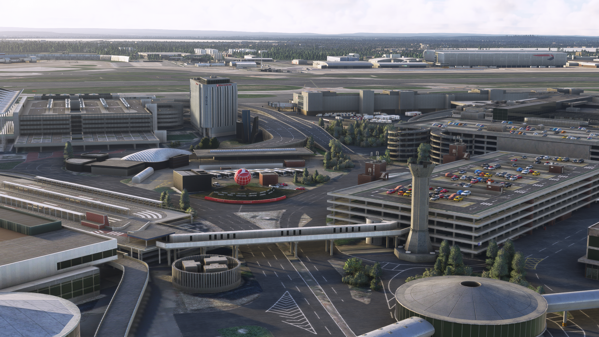 - 10,000+ custom iniScene car models scattered throughout parking lots outside of the airport boundary.