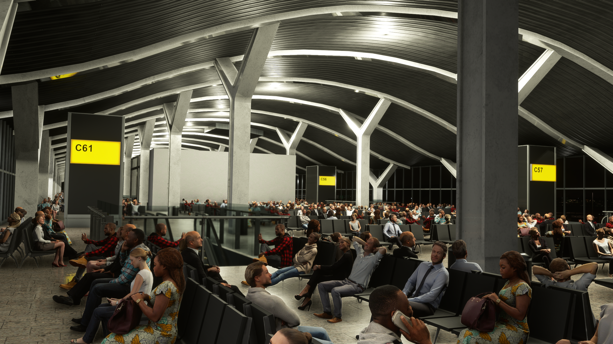 - Over 2,500 individually placed accurately colour toned airport lights scattered around the terminals.