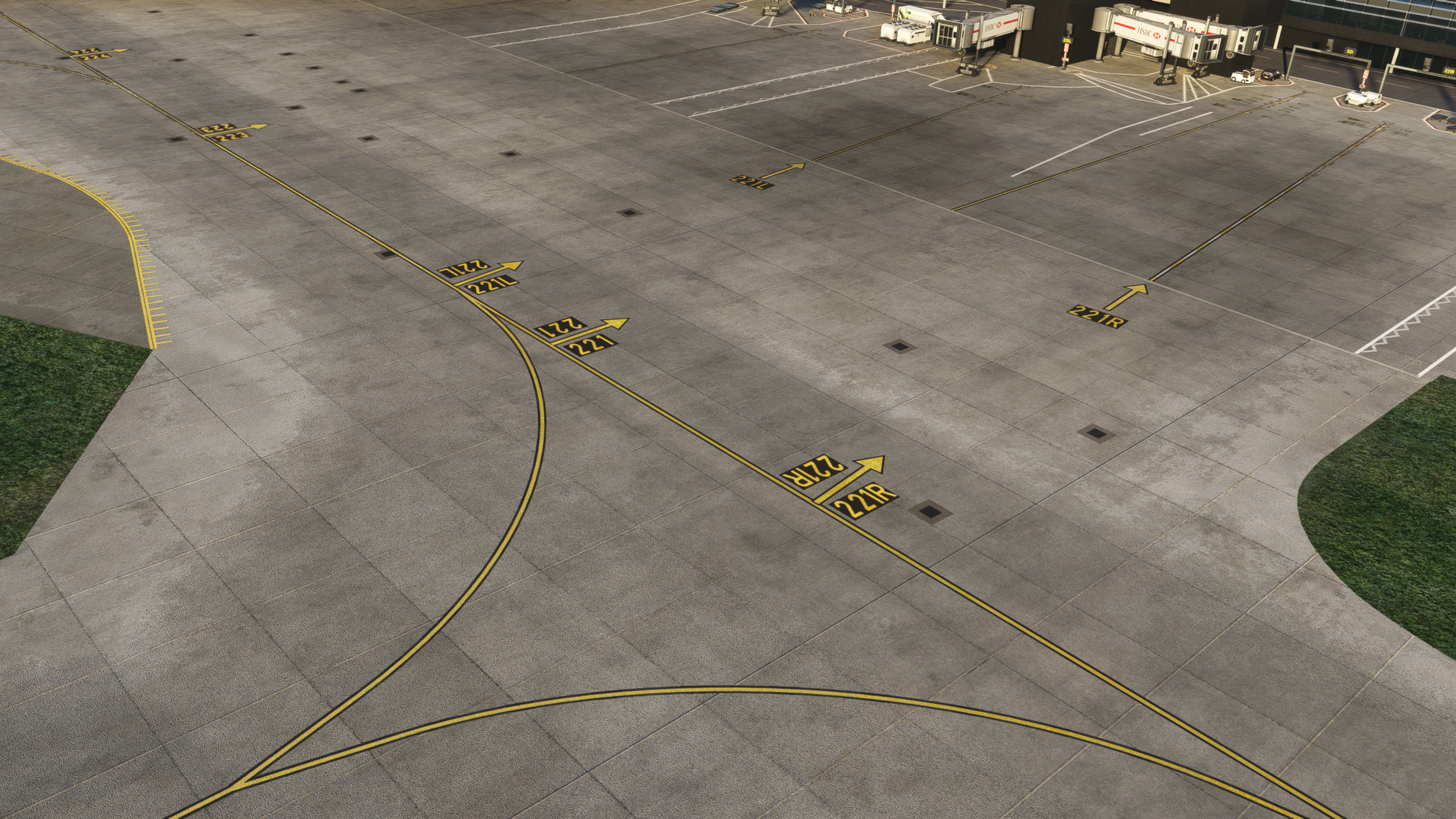 - Main airport landsides with ground markings and lighting faithfully re-created.