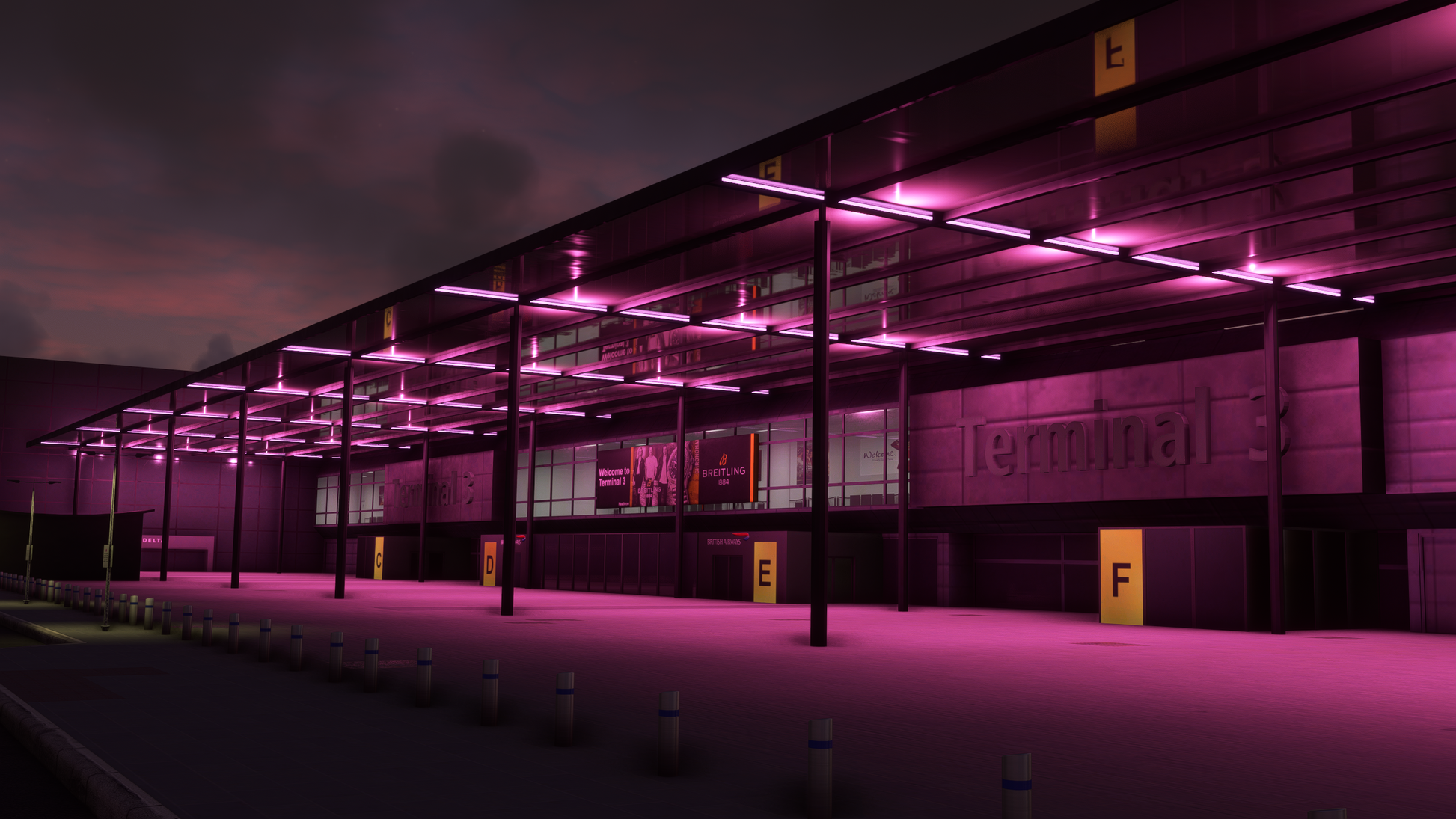 Heathrow's impressive area covers over 12 sq/km of area in the simulator. To compliment that, it features custom taxi signs, realistic terminals, custom ground service equipment and plenty of points of interest and surrounding buildings to provide a redefined level of realism plus many more features.