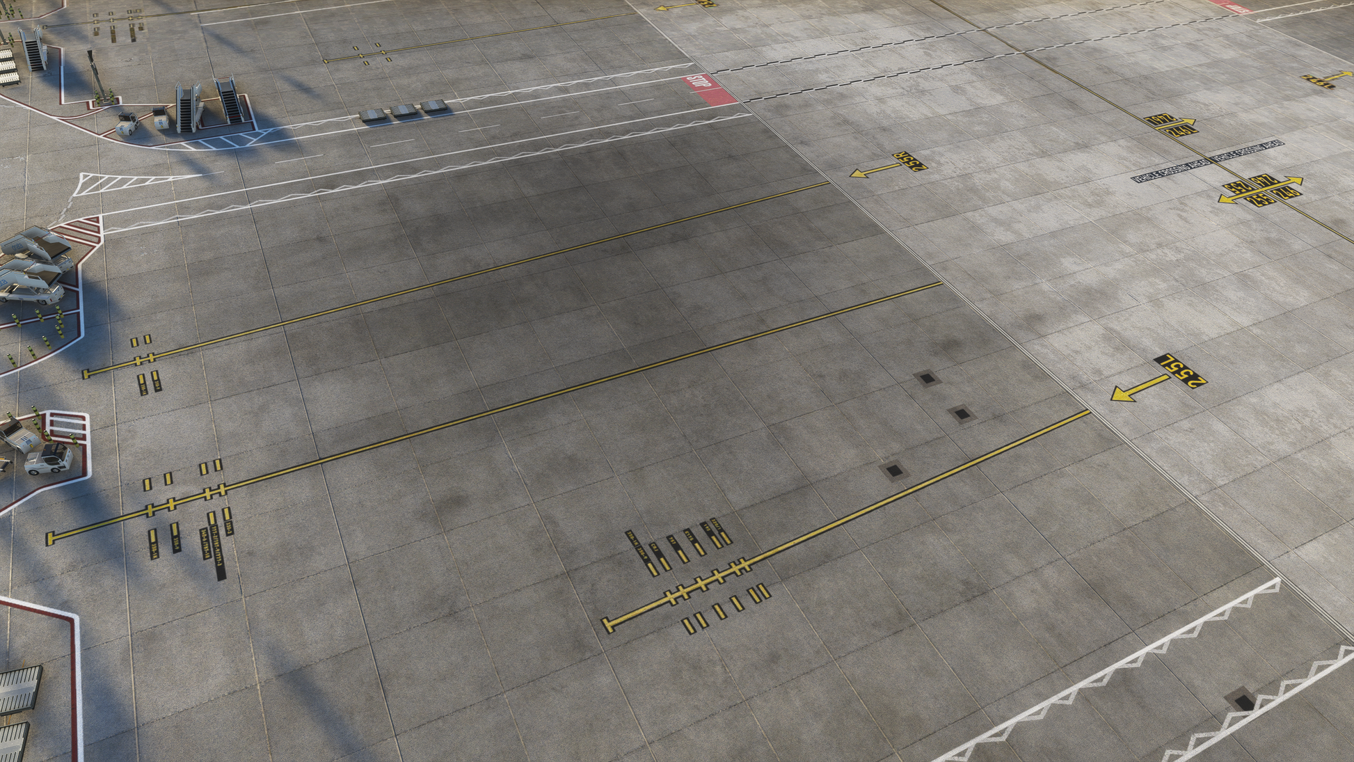 - Hand-made ground polygons featuring custom decals, dirt, taxi lines and ground markings.