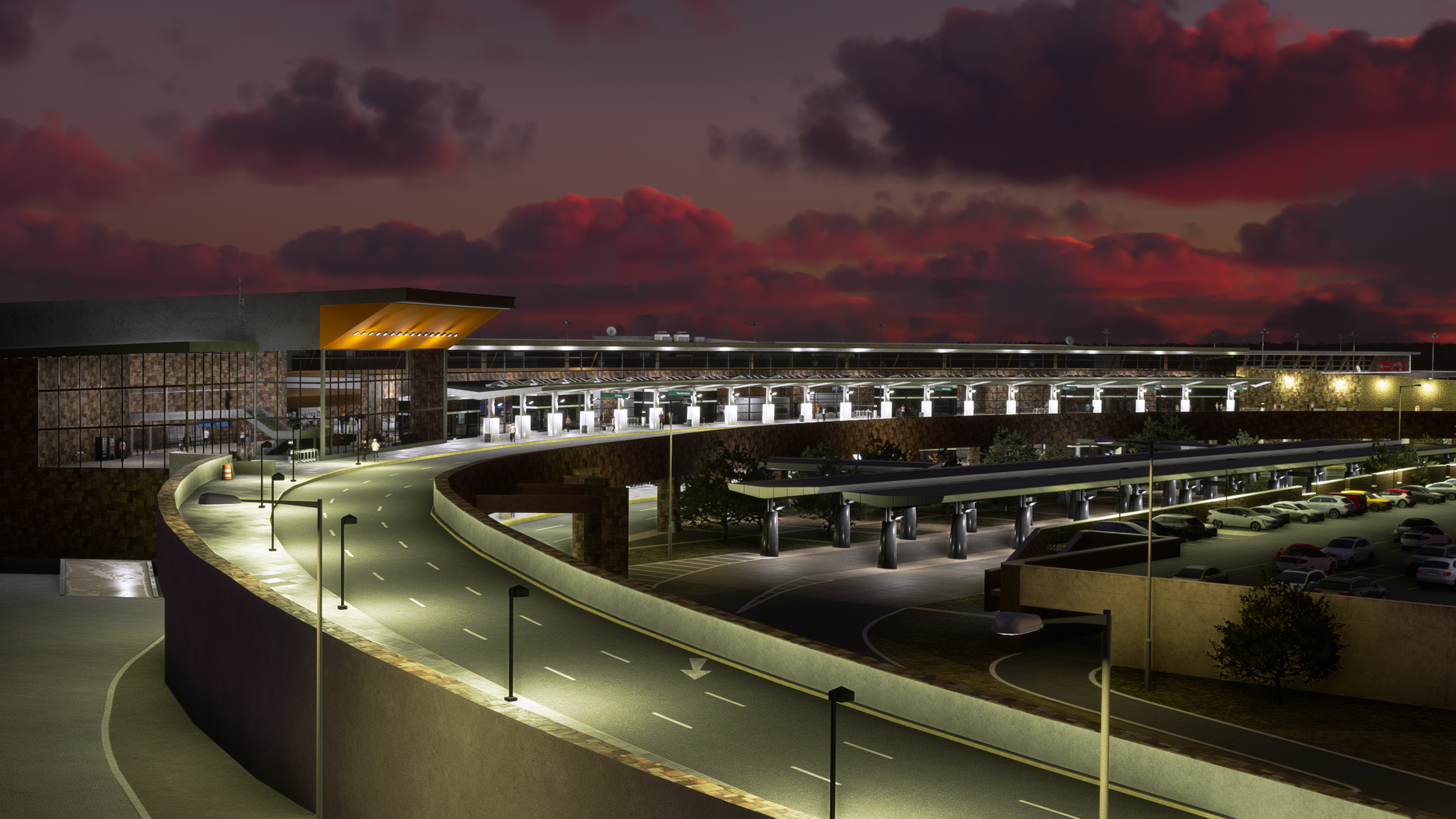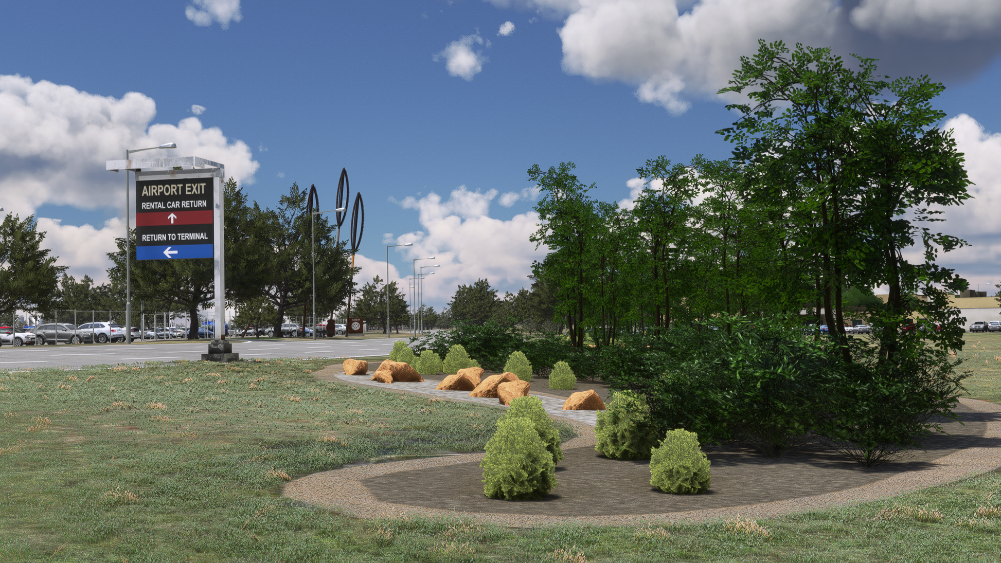 - True-to-life airport landside recreation with custom ground decals, signposts, vegetation, parking barriers and more