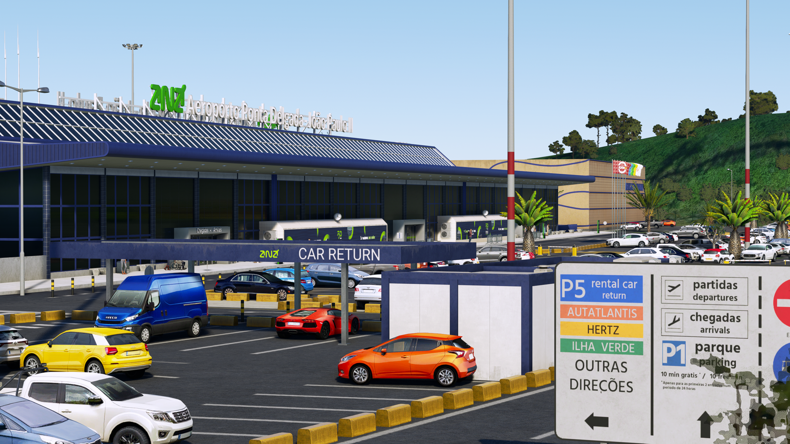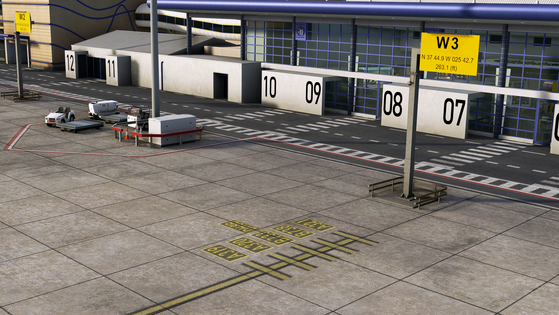 - True-to-life airport landside recreation with custom ground decals, signposts, vegetation, parking barriers and more