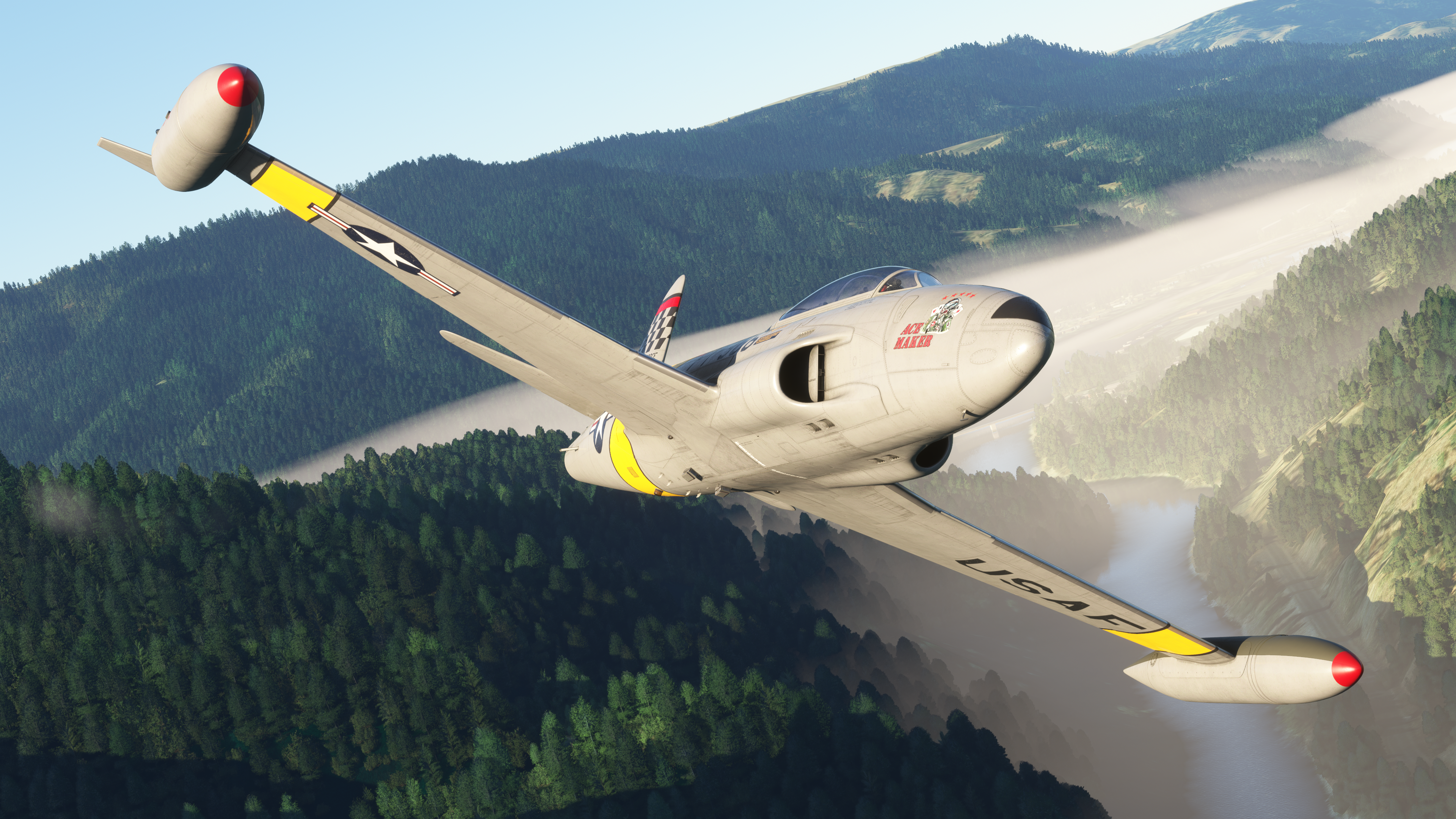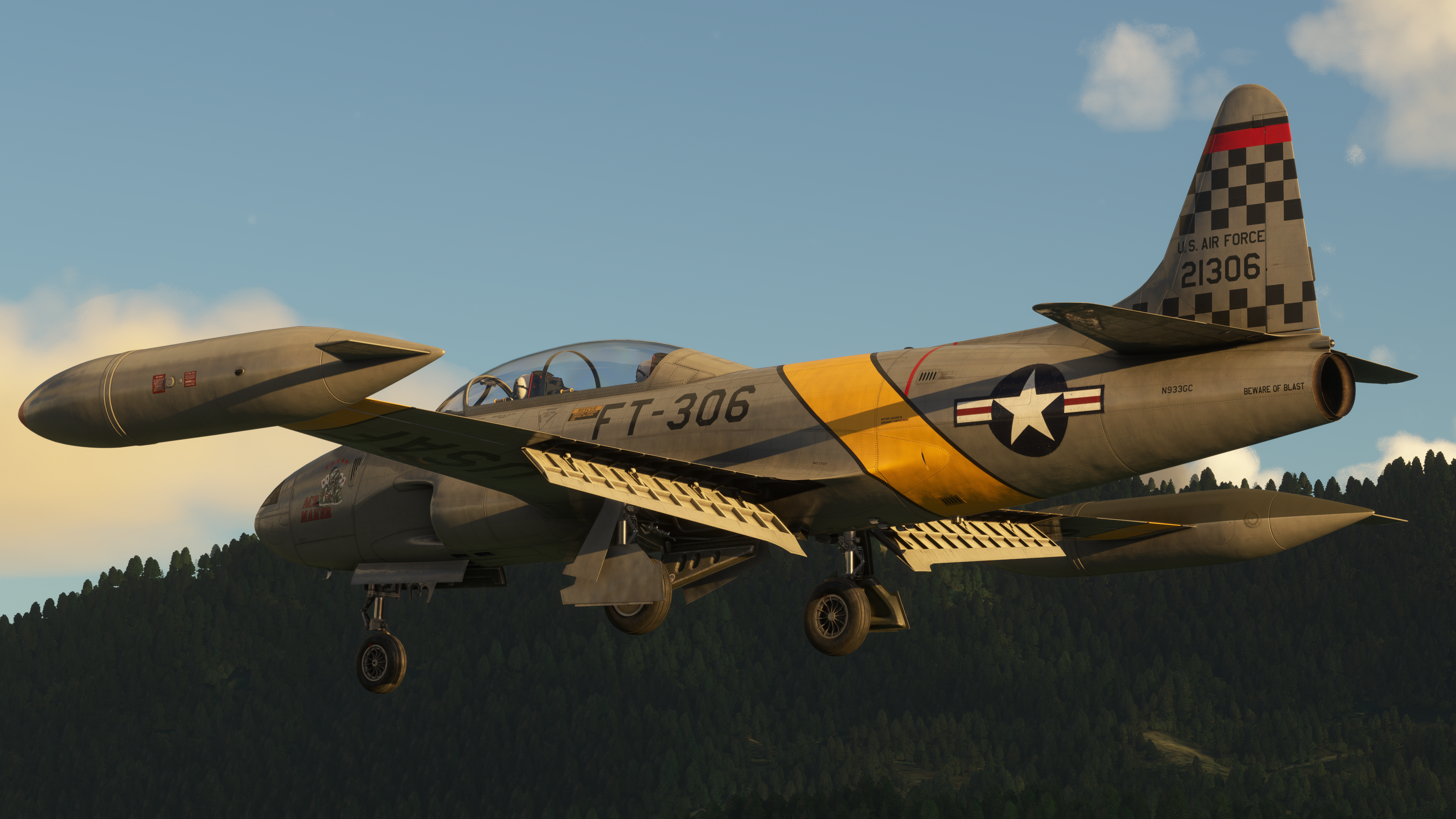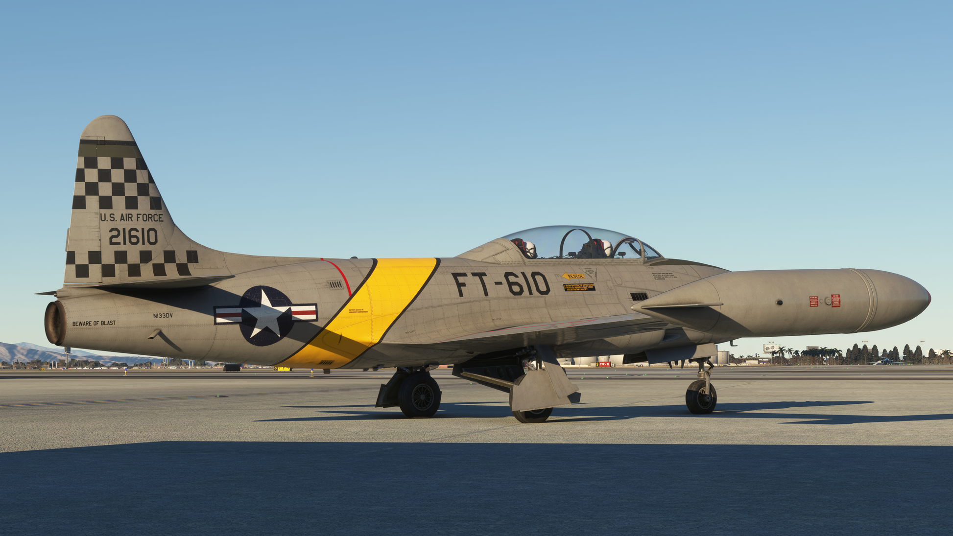 Zip up your G-suit, grab your helmet and strap into the T-33 Jet Trainer! Developed as a collaboration between iniBuilds and SimWorks Studios, the T-33 is a versatile, turbojet training aircraft, used by over 20 different air forces globally. As the first Skunk works project it initially entered service in 1945 as the P-80 Shooting Star, America’s first jet fighter and the 2 seat variant debuted in I948 as the TF-80c then it was re designated the T-33. It served in a variety of roles, from initial jet training platform to advanced IFF trainer to drone director, target towing, aggressors and even flew combat in the Korean conflict!