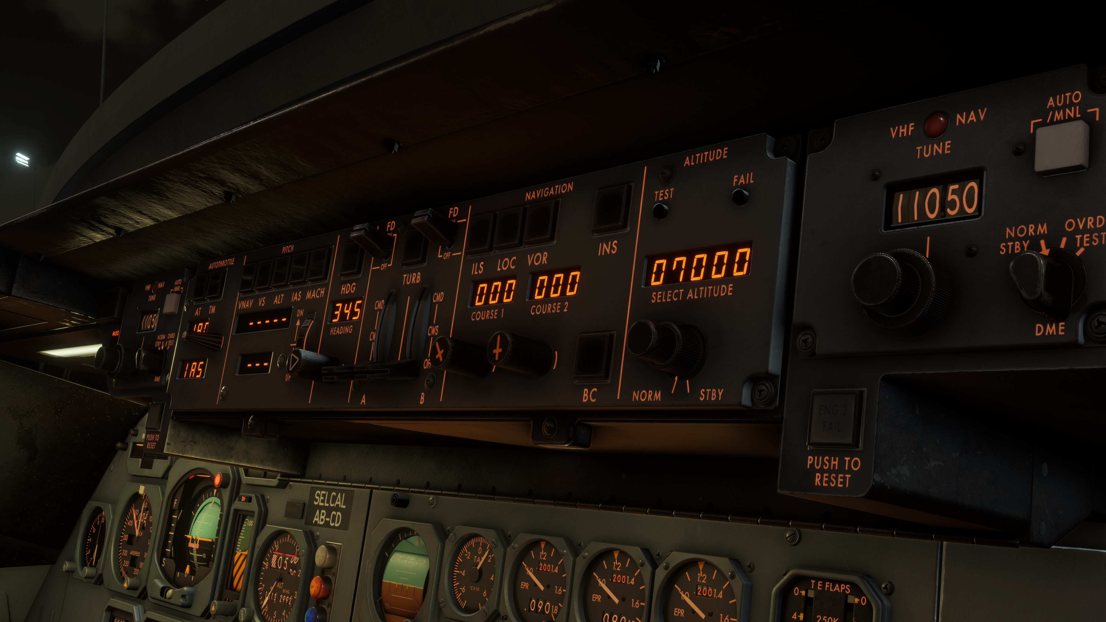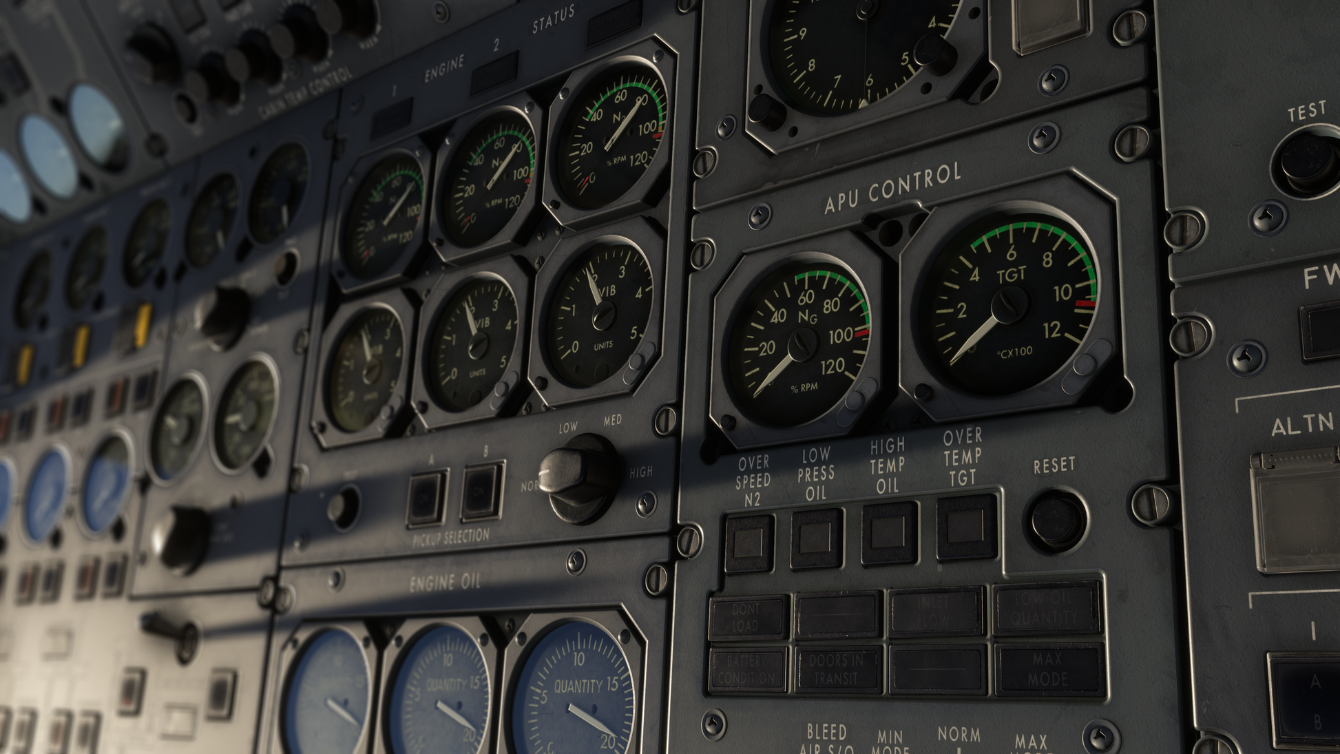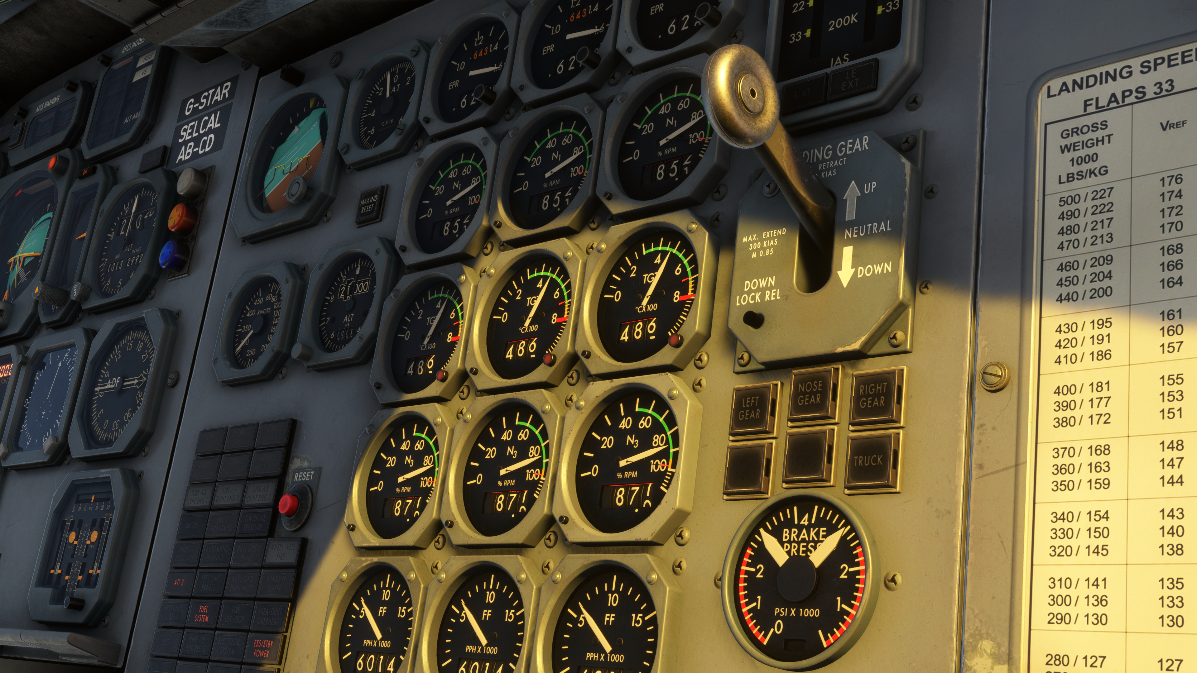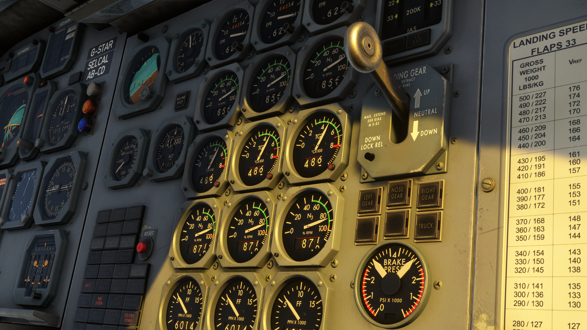 - Fully dynamic cockpit lighting suite, including panel, flood, pedestal, and Flight Engineer station lighting.