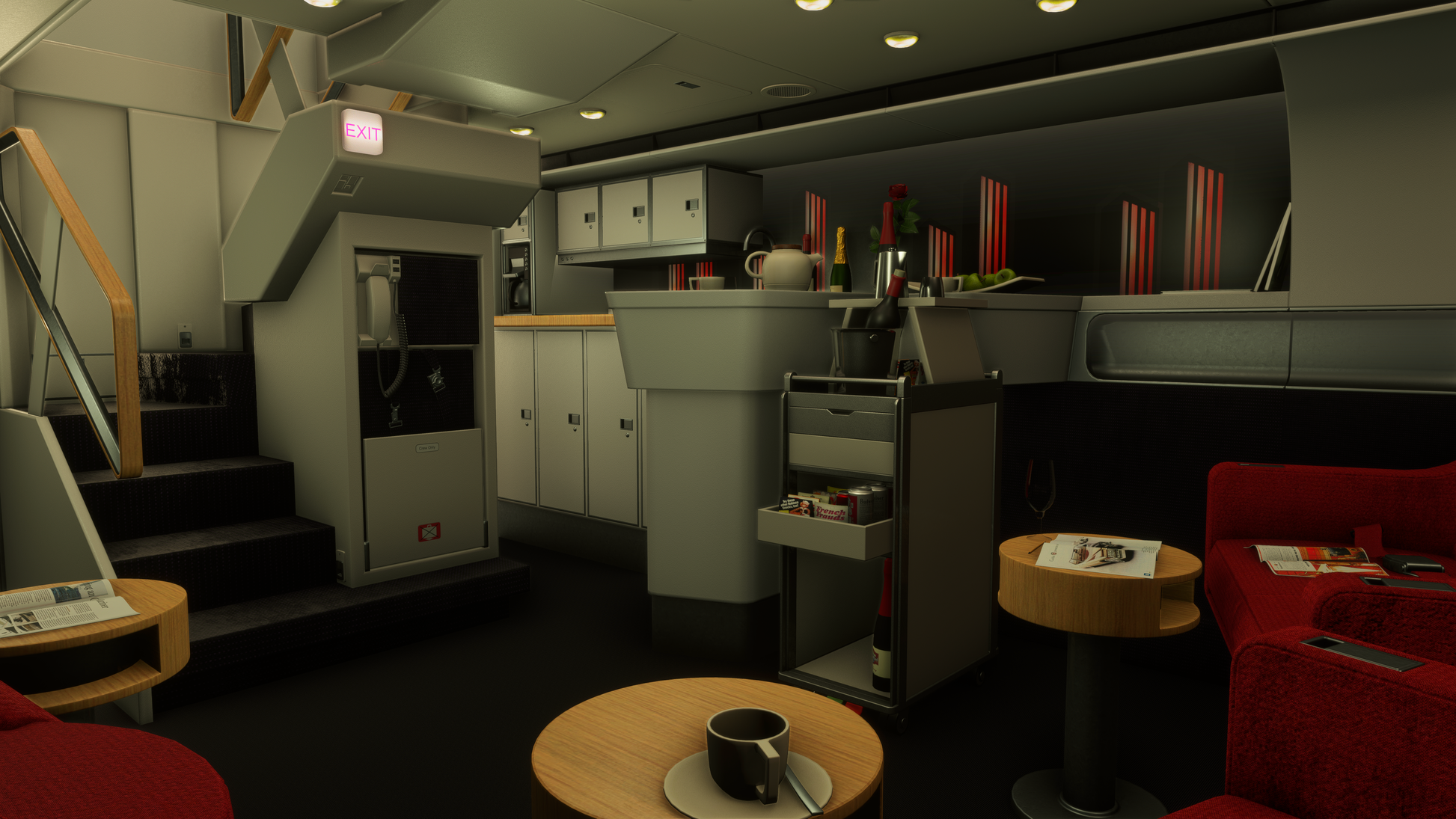 - Integrated Virtual Flight Engineer, First Office and Flight Attendant voice callouts for realistic crew coordination.