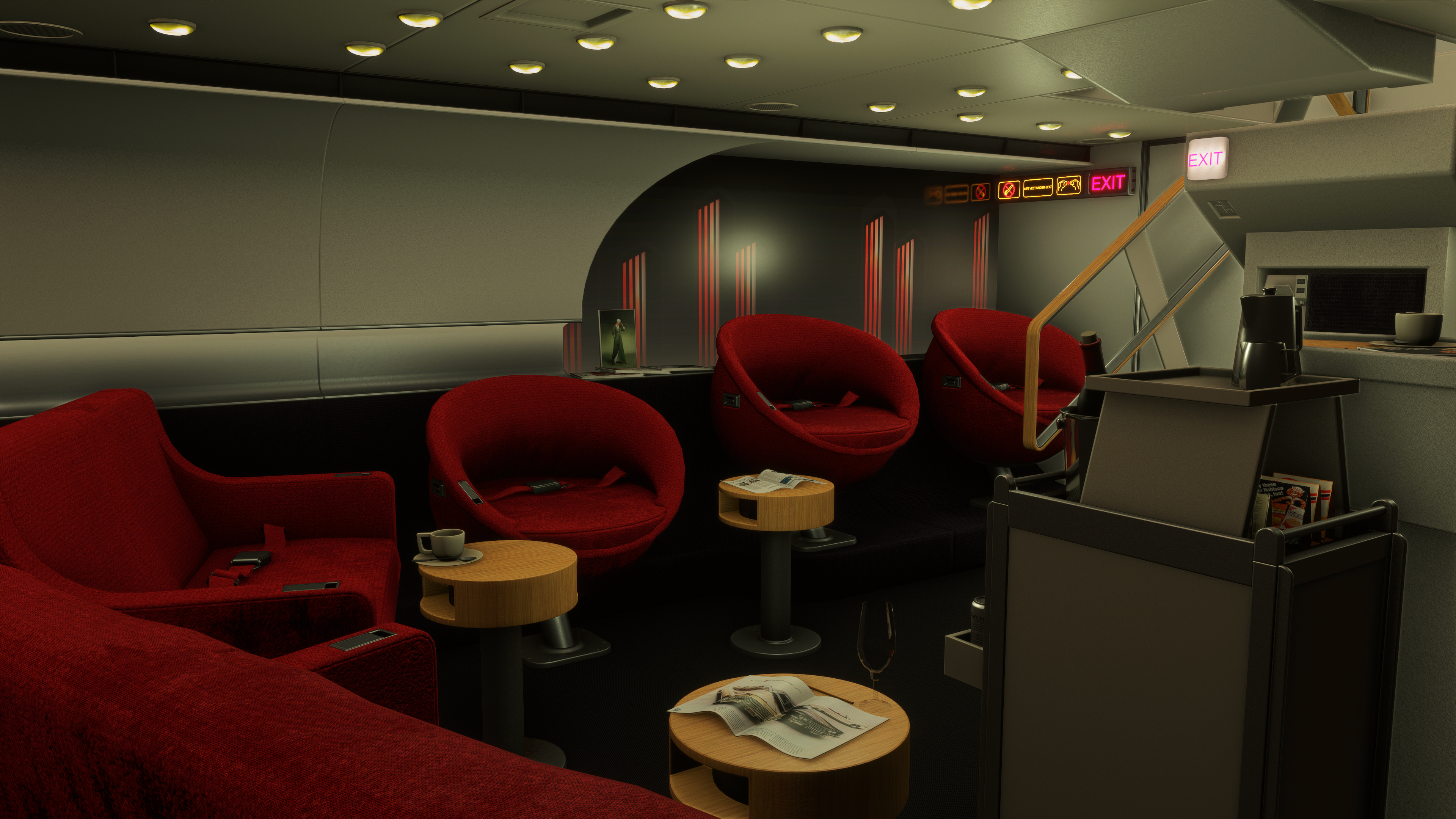 - Immersive cabin environment audio, reflecting phase of flight and aircraft state.