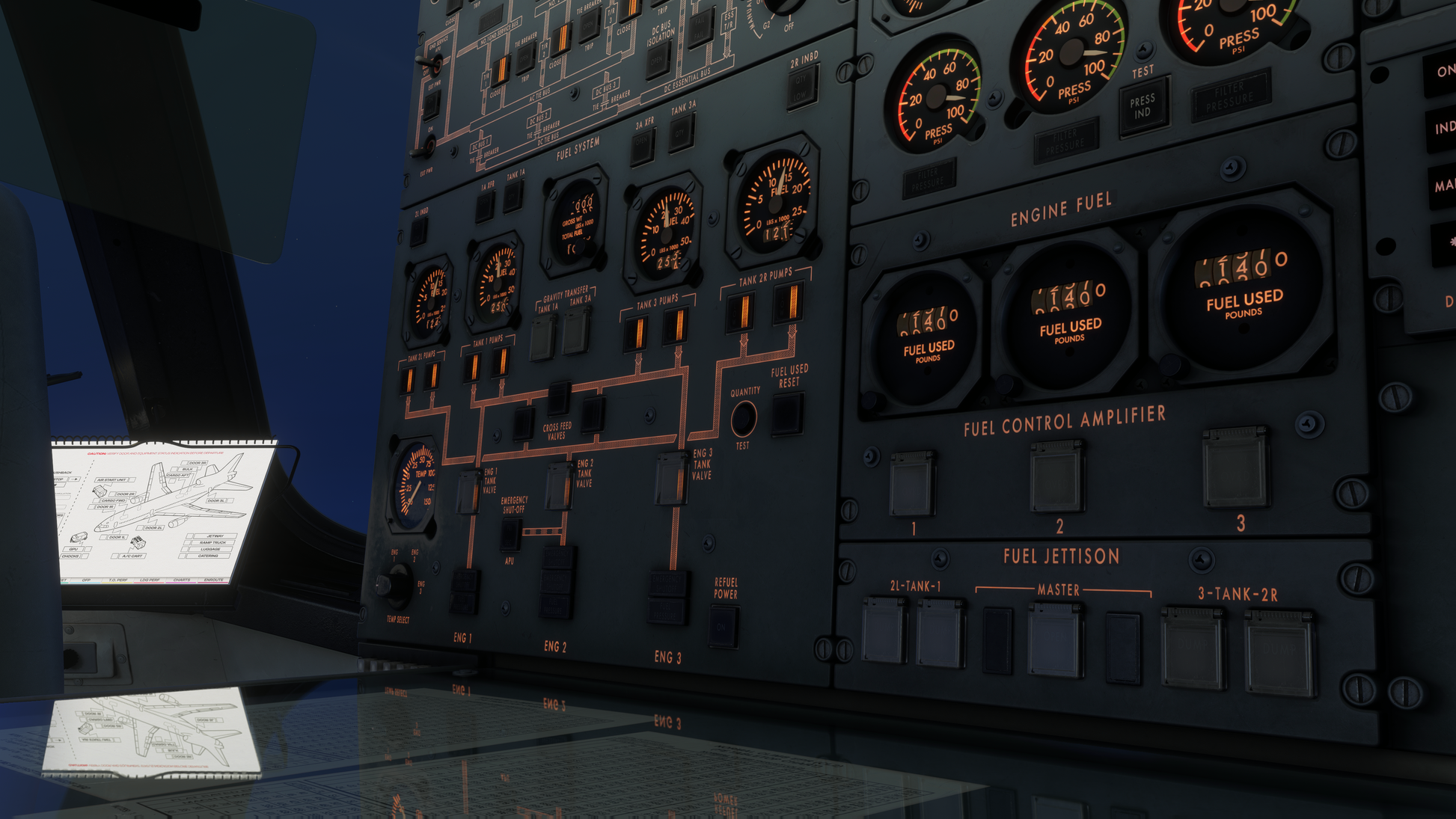 - Fully interactive Flight Engineer station with real-world procedures and system monitoring.