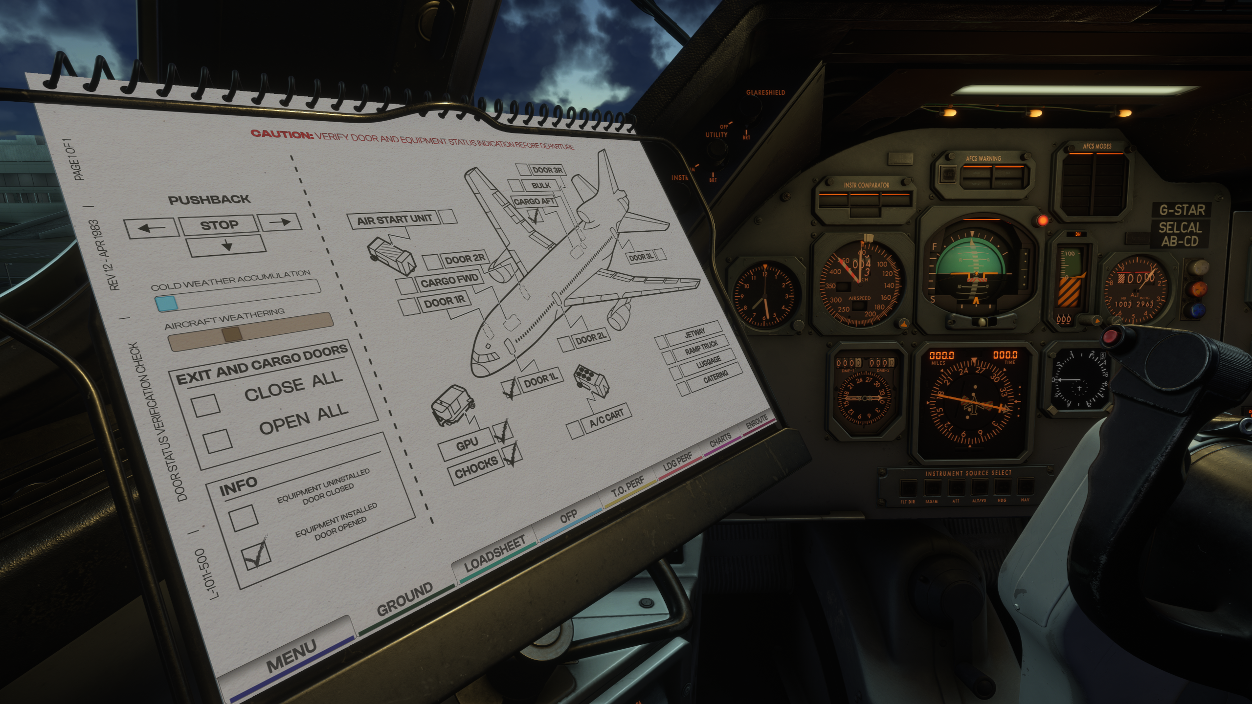 Navigation is equally true to its era, with a fully simulated triple INS setup and Performance Management System, enabling a range of workflows from traditional INS-only navigation to hybrid GPS-assisted operations. The aircraft is further supported by the Paper Flight Bag (PFB), offering powerful tools such as the Virtual Flight Engineer Autocomplete system, giving users the option to instantly configure complex systems or manage them manually for a more hands-on experience.