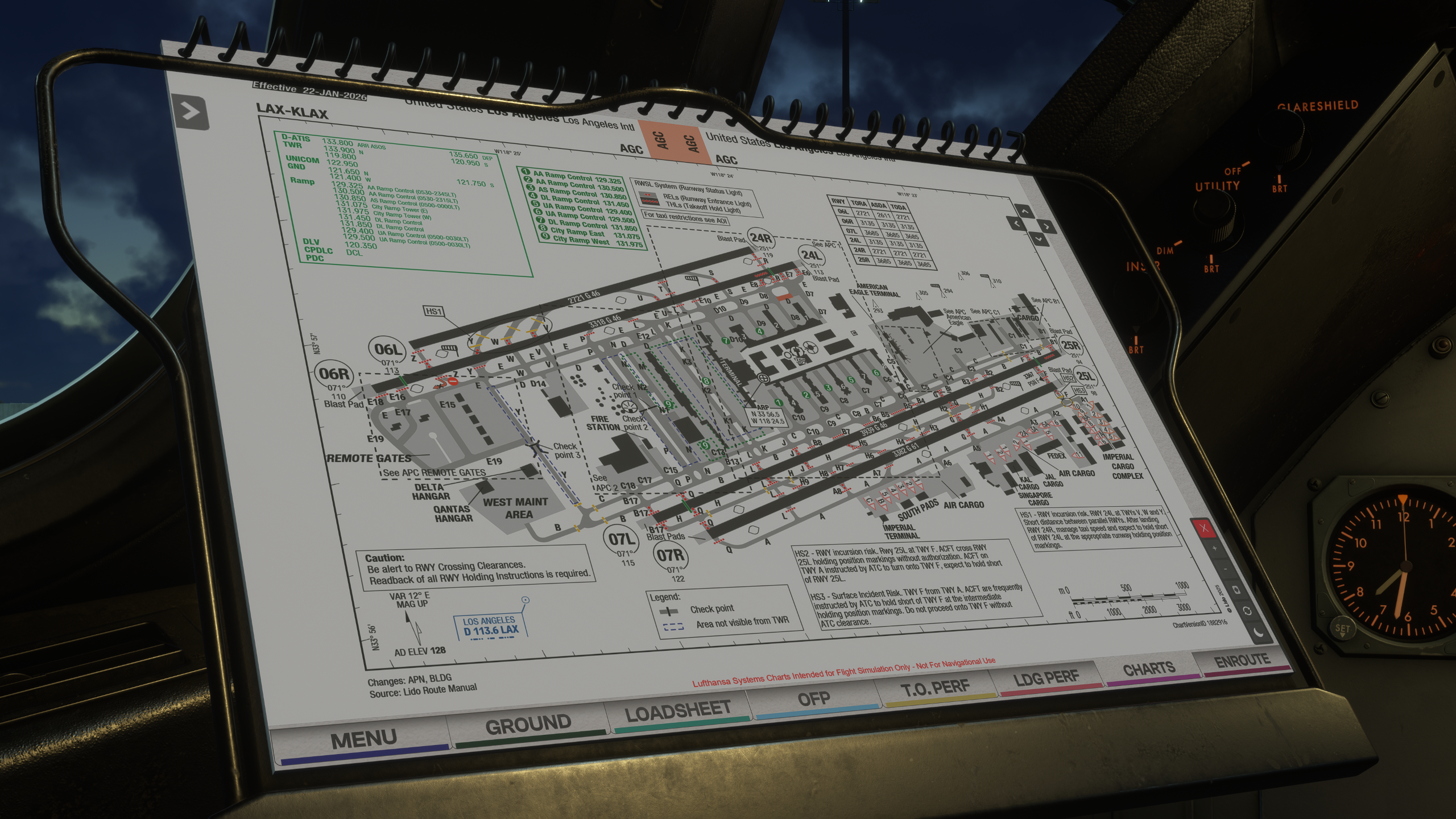 - Integrated chart system supporting LIDO & Navigraph with pinning and search.