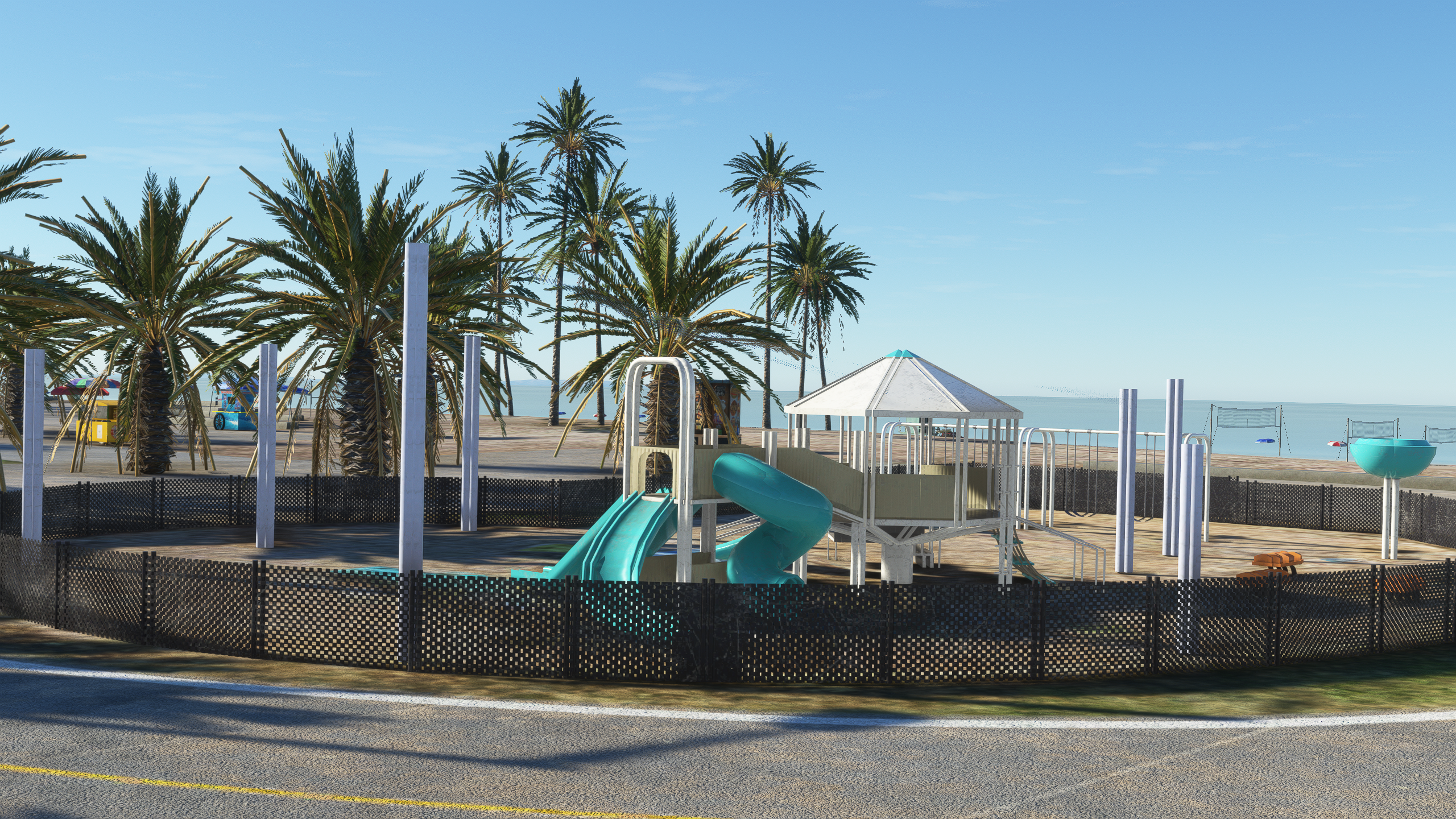 The pack features iconic landmarks such as the Santa Monica Pier, Venice Beach Skatepark, Venice Fishing Pier, and more. Discover small details like animated palm trees, lifeguard towers, tennis courts, playgrounds and much more with the fictional runway spawning point, KLVB.