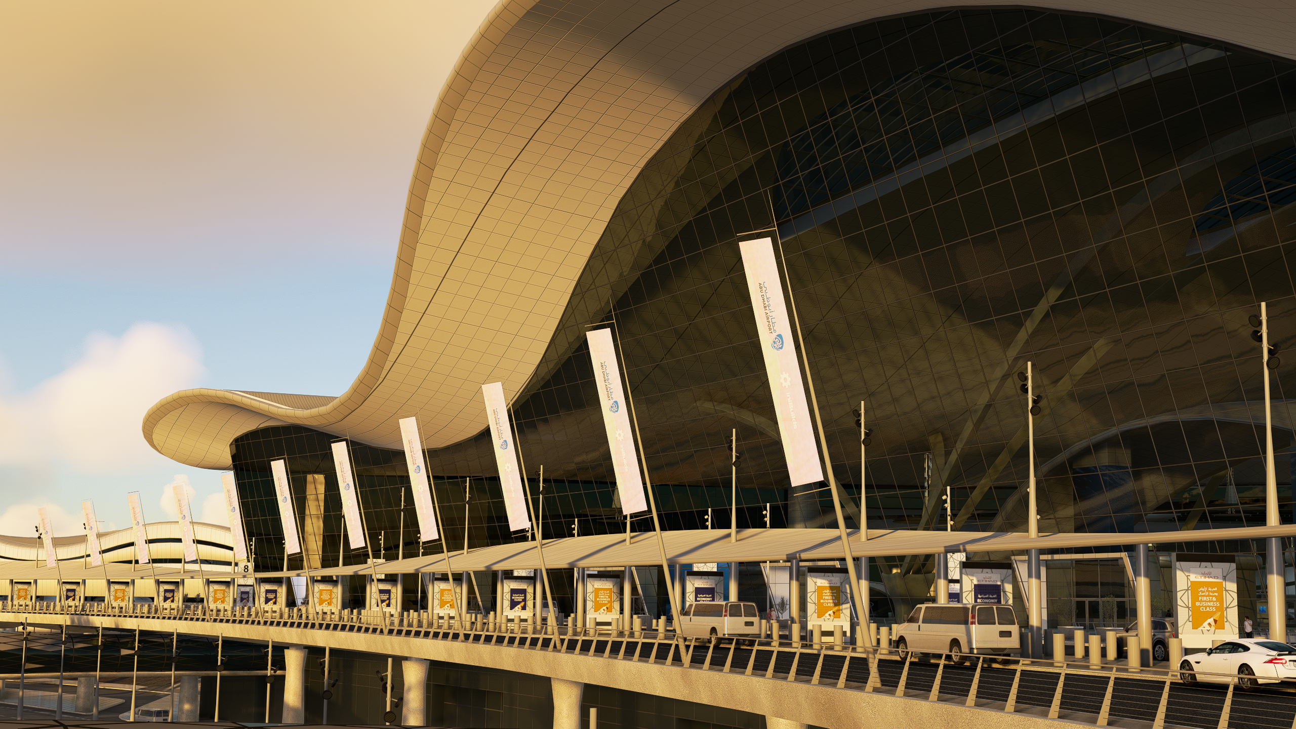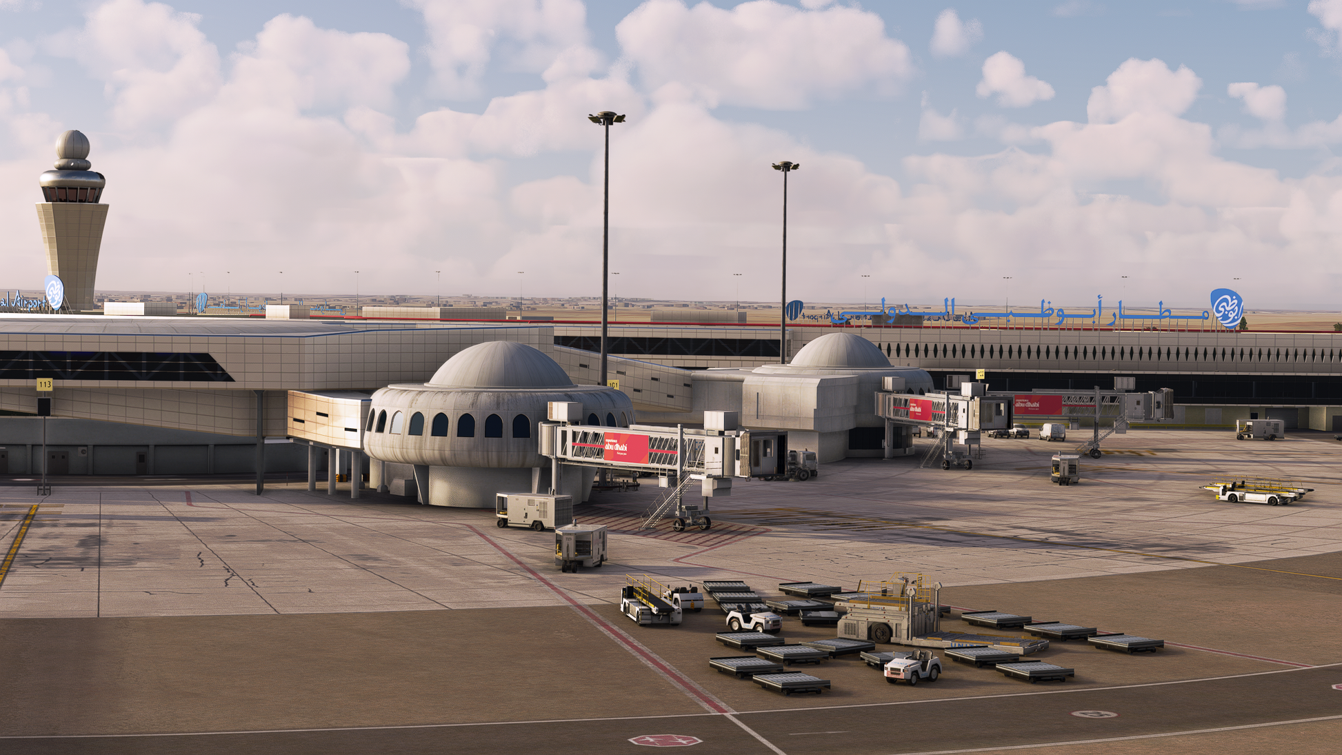 Explore the seamless integration of modern architecture and traditional Arabian hospitality as you navigate through the airport's expansive airside and landside areas. With full GSX compatibility and a host of unique features.