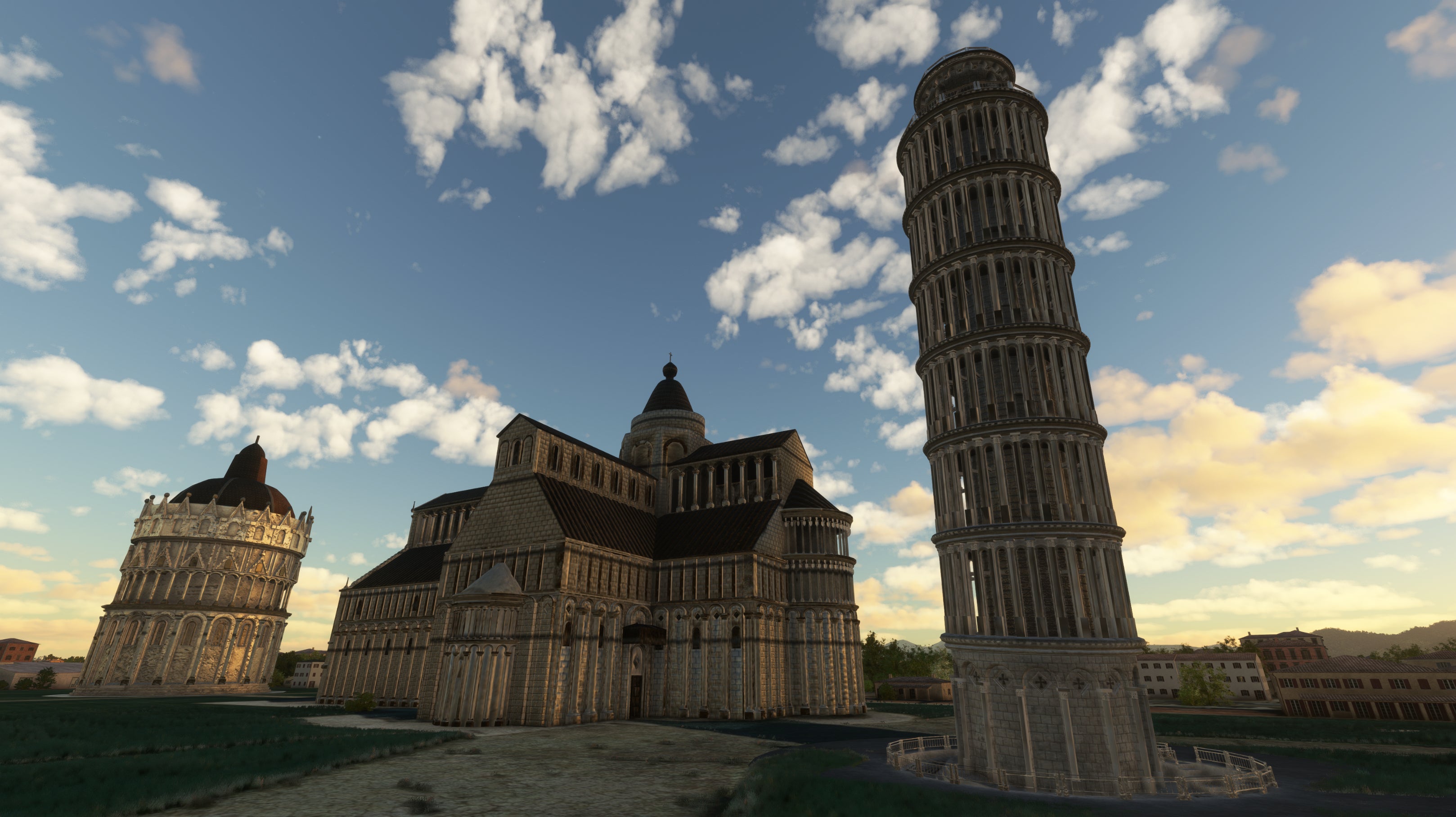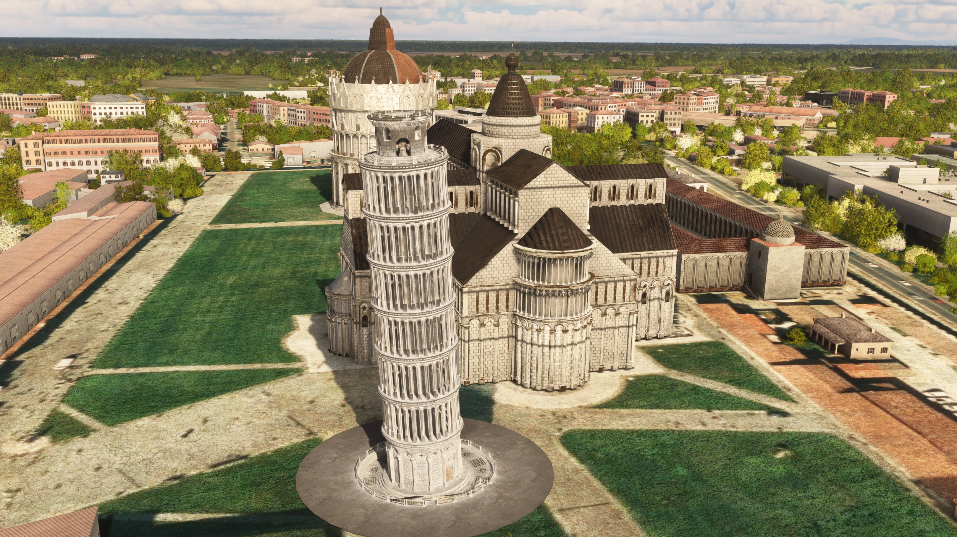 Discover the architectural elegance and timeless beauty of Pisa with this handcrafted landmark pack for Microsoft Flight Simulator. This add-on transforms the cityscape of Pisa, Italy, with detailed 3D recreations of its most iconic historic and modern structures. From its world-renowned medieval monuments in the Piazza dei Miracoli to cultural centers, palaces, and rail hubs, every element has been designed to reflect the city's unique atmosphere.