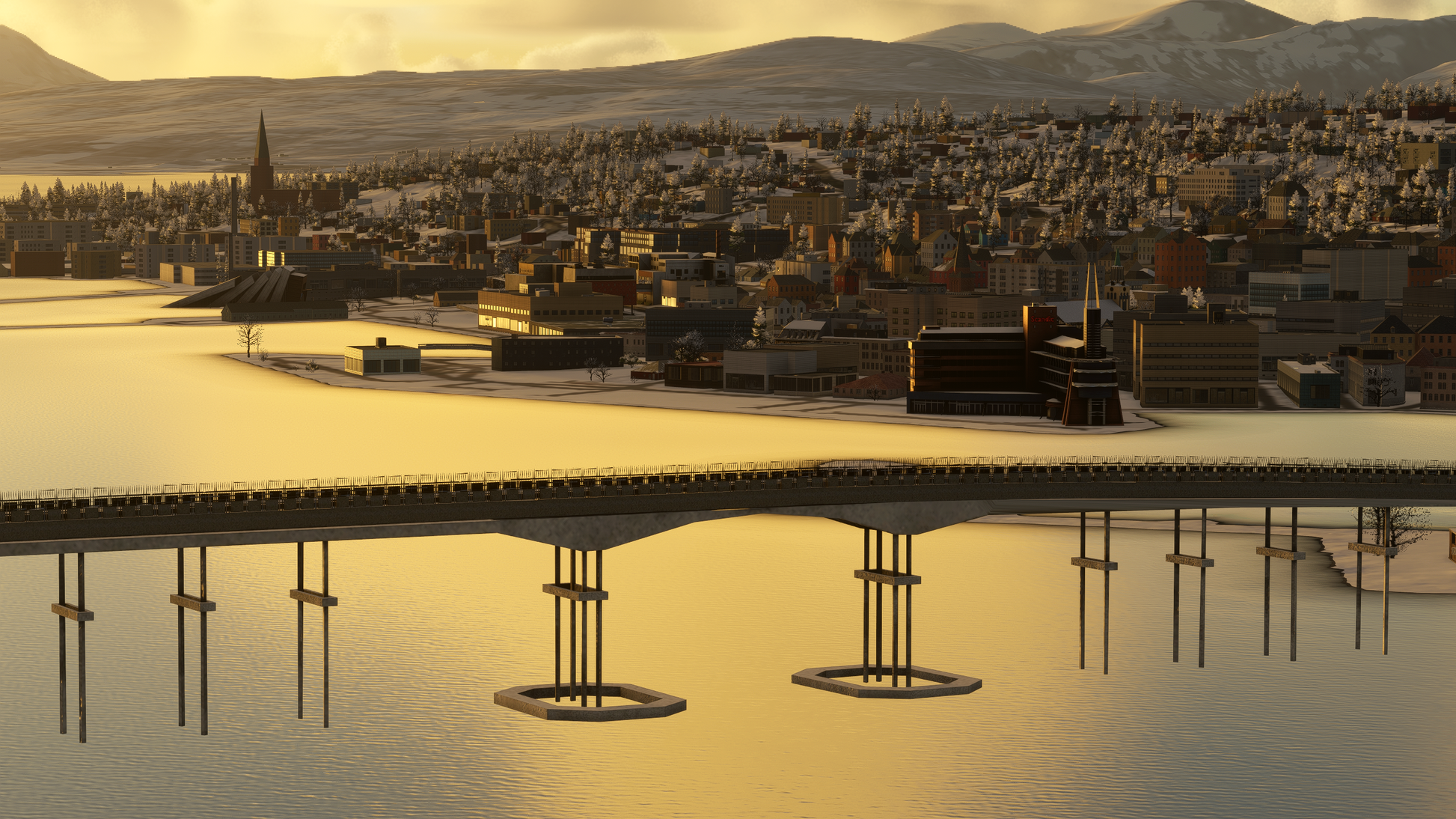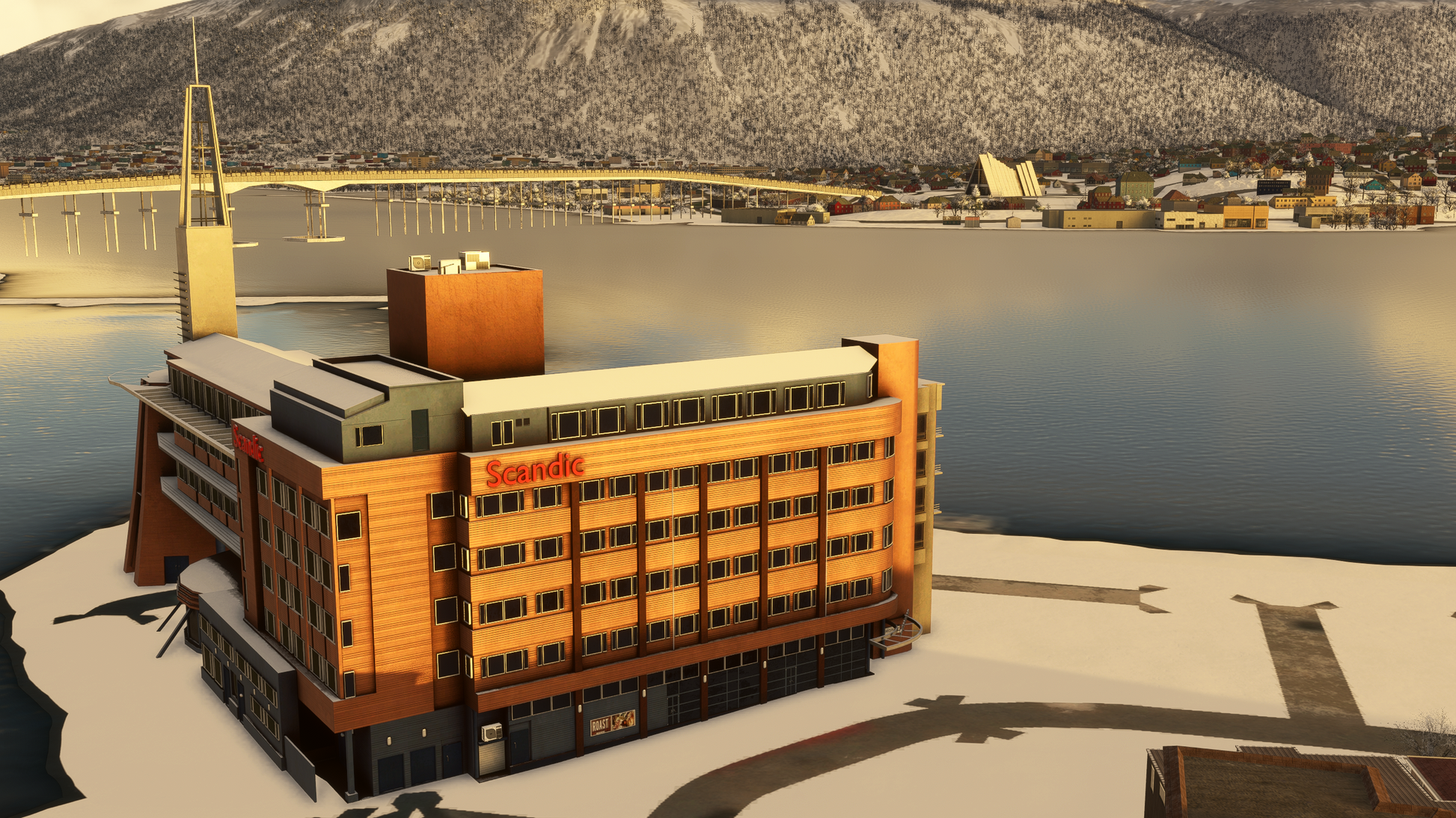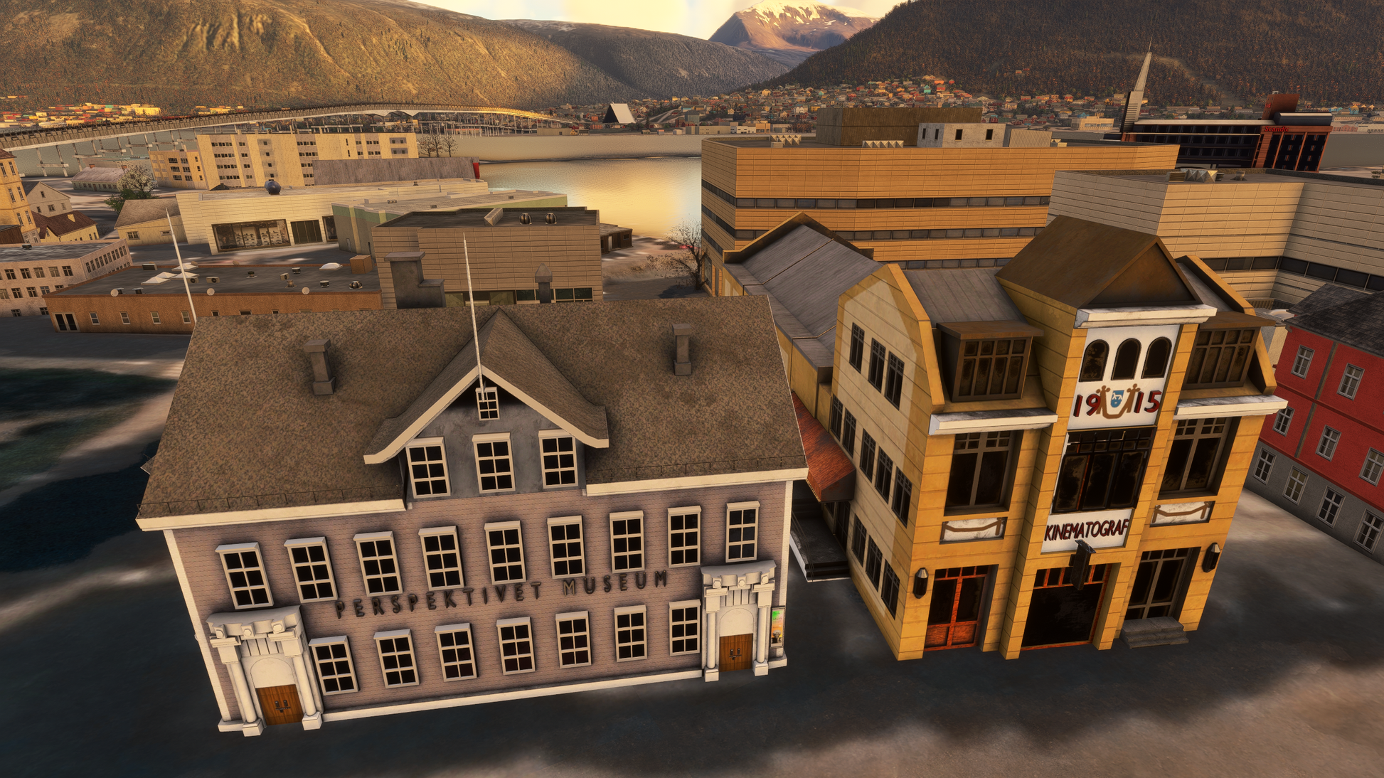 Tromsø City Landmarks for Microsoft Flight Simulator Explore the Arctic capital of Norway like never before. This handcrafted Tromsø City Landmarks pack captures the charm, culture, and iconic architecture of this northern gem. Whether you’re flying in under the midnight sun or shimmering auroras, these custom-built landmarks will elevate your VFR experience across Tromsø.