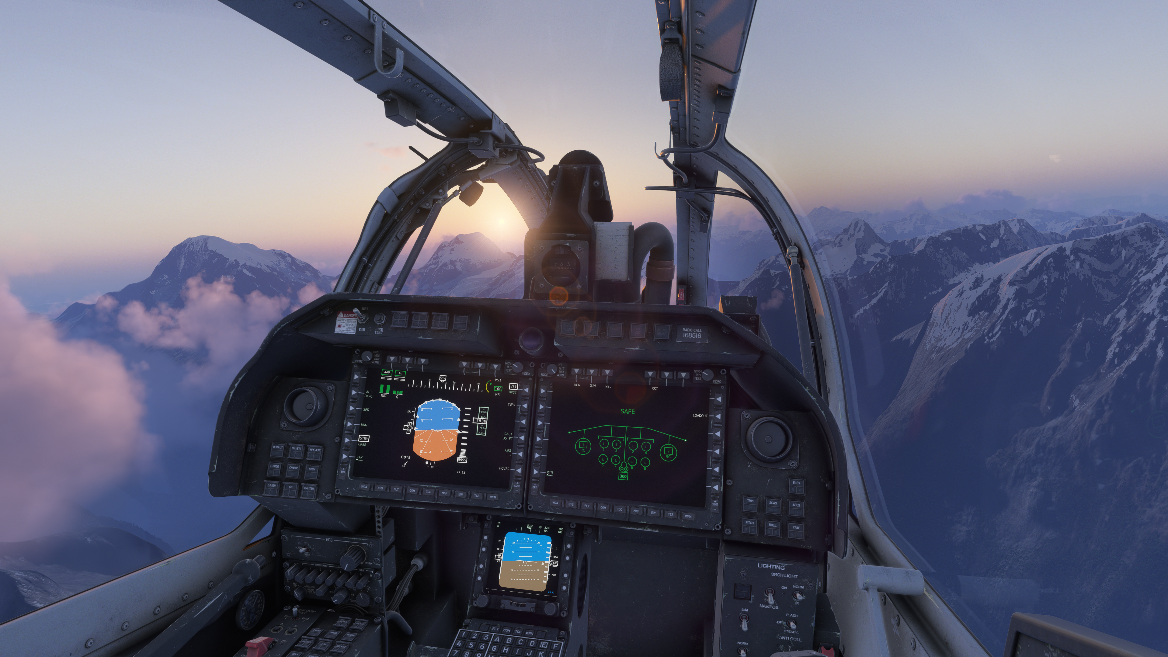 Take control from fully interactable front and rear cockpits, featuring a modern glass cockpit layout with four multifunction displays, a dual-function standby display, and dynamic keyboard input for seamless systems management. A refined flight model with native vortex ring state simulation, advanced stability augmentation, and hands-off hover capability makes the Striker equally rewarding for new pilots and experienced rotorheads.
