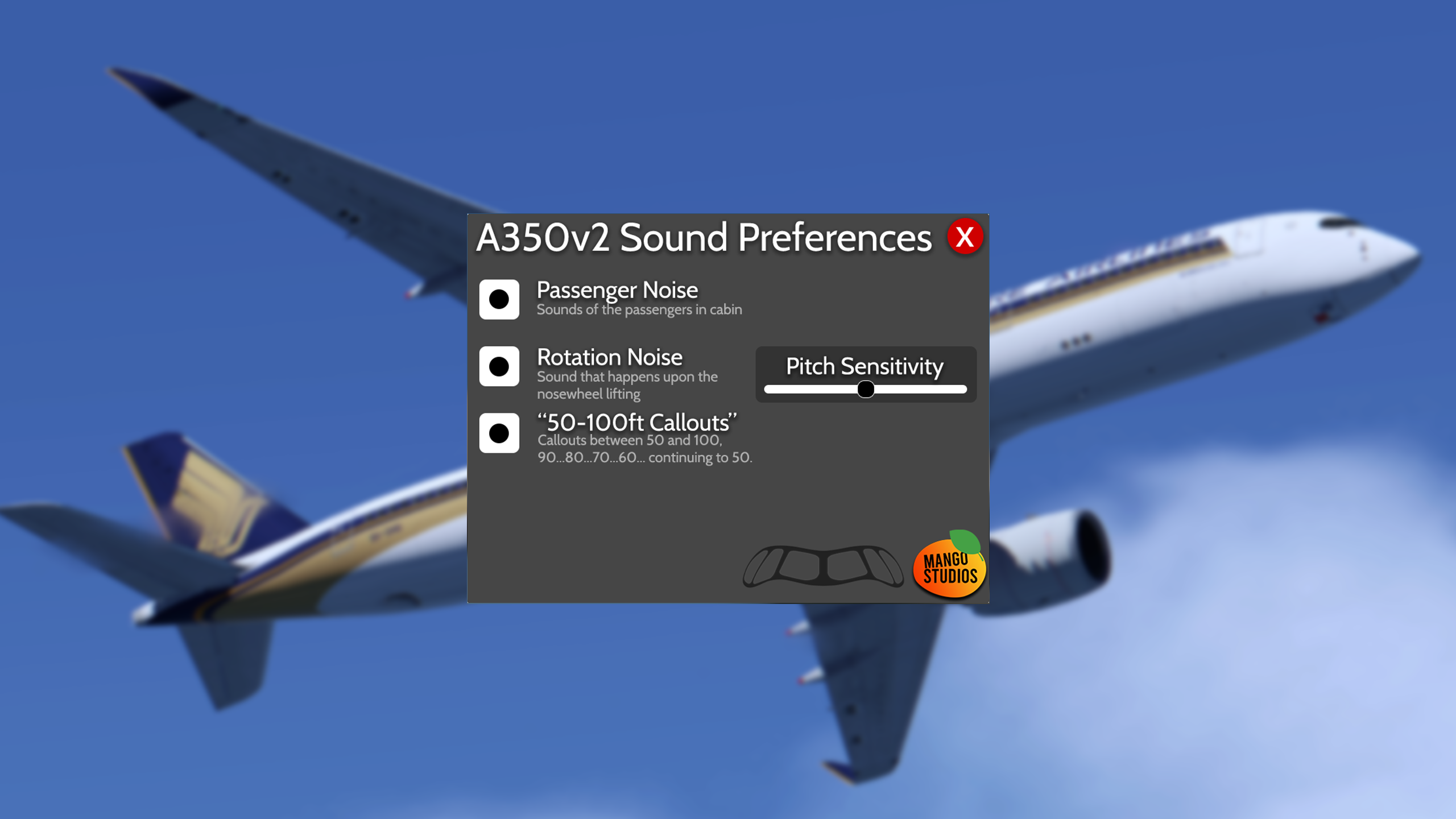 Mango Studios has taken recorded clips off a real plane and implemented them into an immersive 3d sound environment, complete with real cockpit system sounds, g-force effects, engine sounds, and realistic cabin sound space.