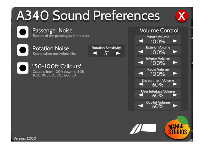 Increase the realism of your JarDesign A340, with our sound pack! This sound pack being of the most popular ones to ever be developed by Mango Studios Sounds is guaranteed to increase the realism and true to life feel inside the cockpit!