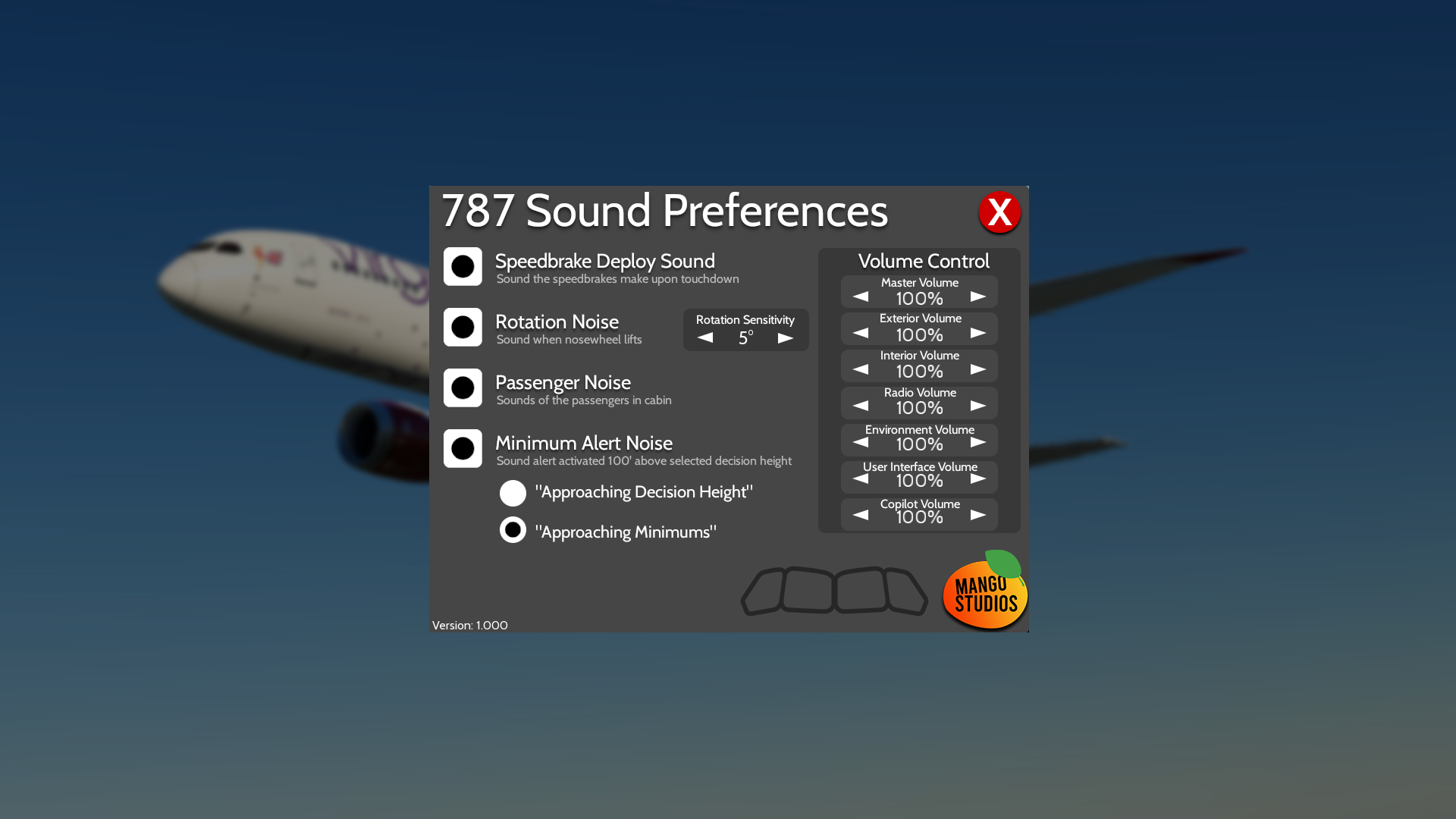 - Realistic nose gear ground rolls, touchdown, extension, and retraction sounds